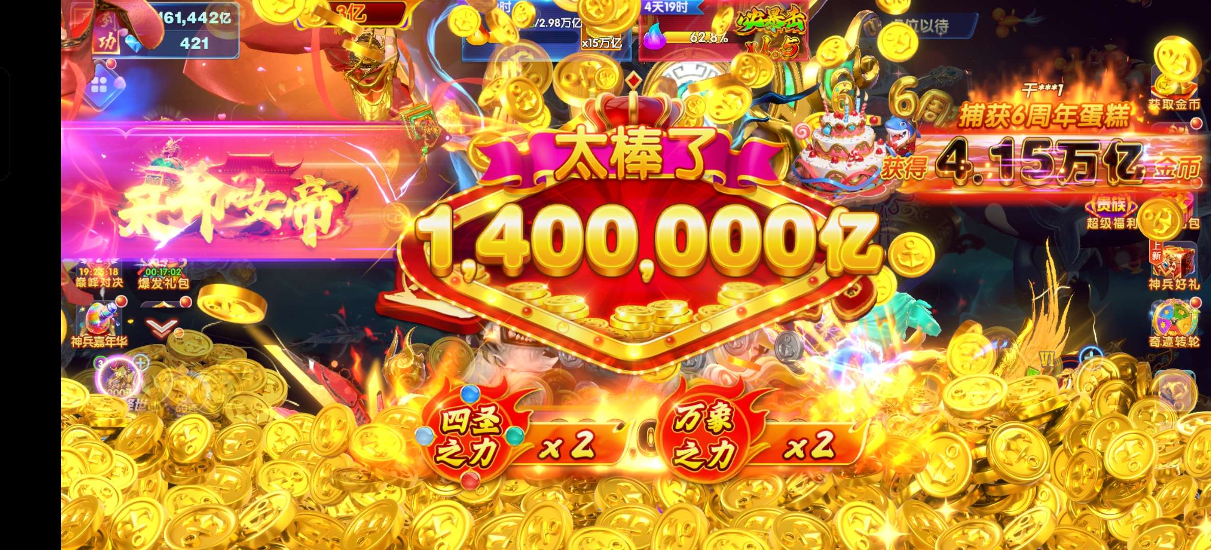 乐乐捕鱼纯玩V16/402万亿非扩大版,除了神话全满羁绊,破产改密,想过手瘾的来。爆率杠杠的10亿炮