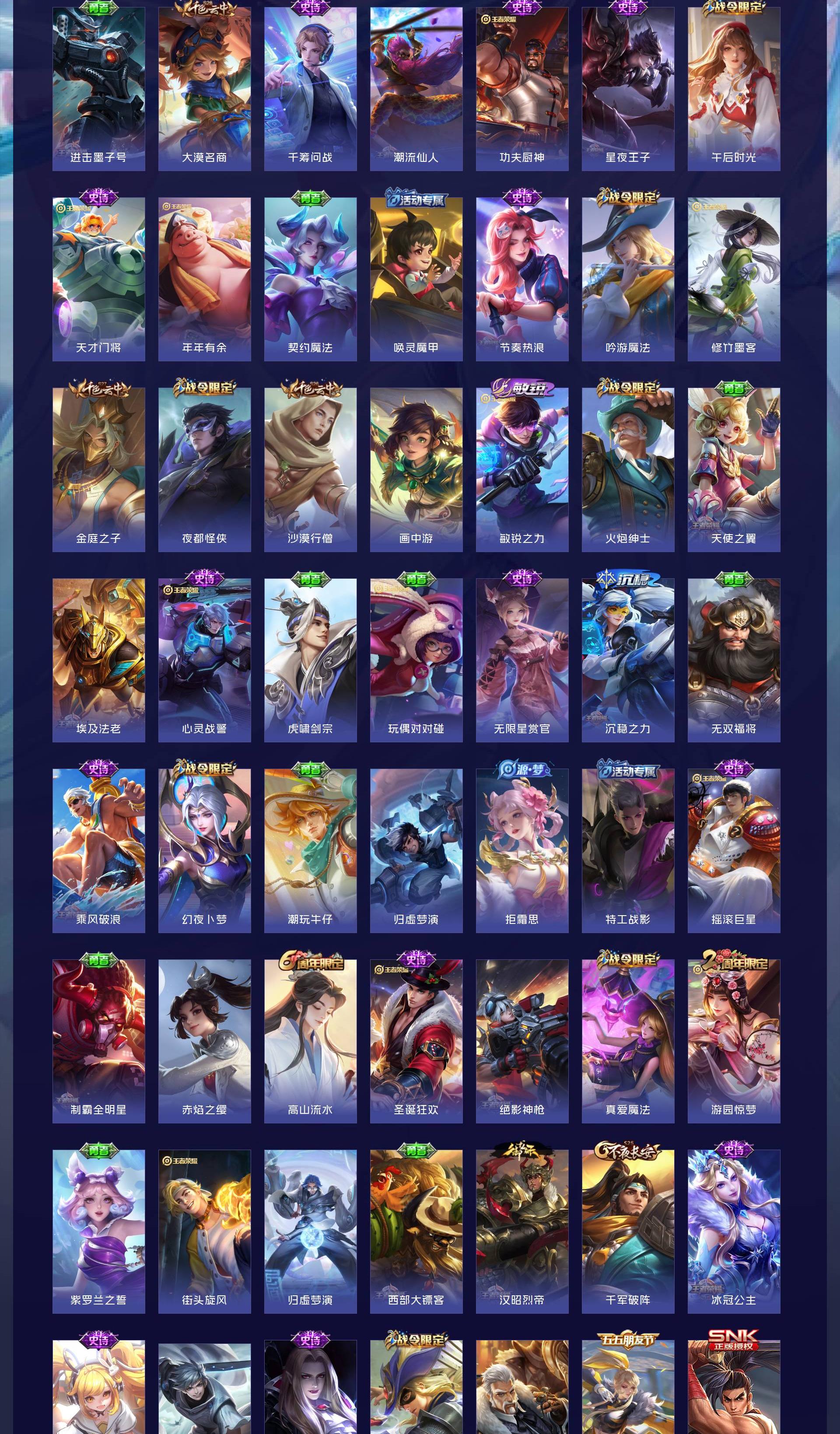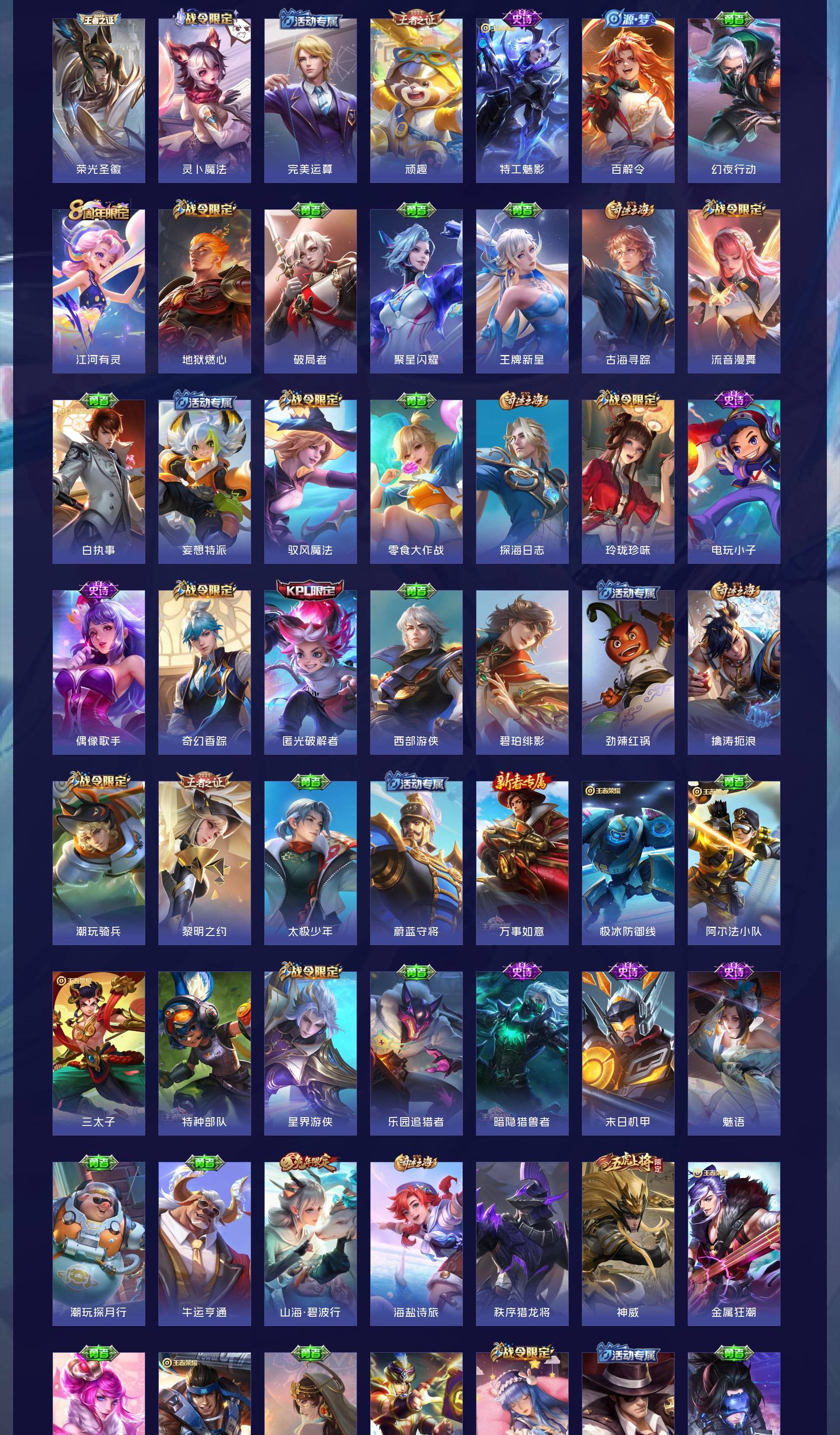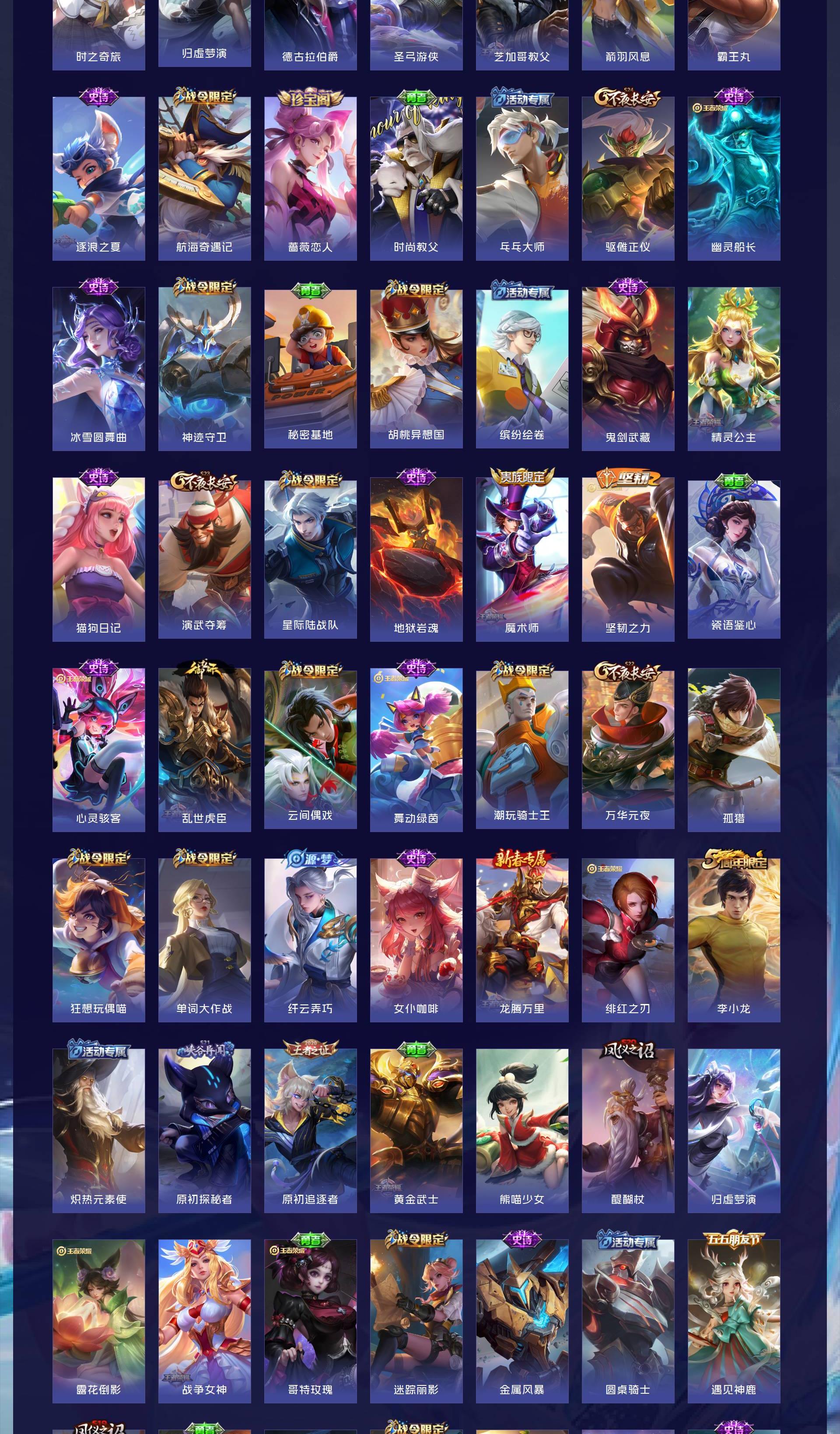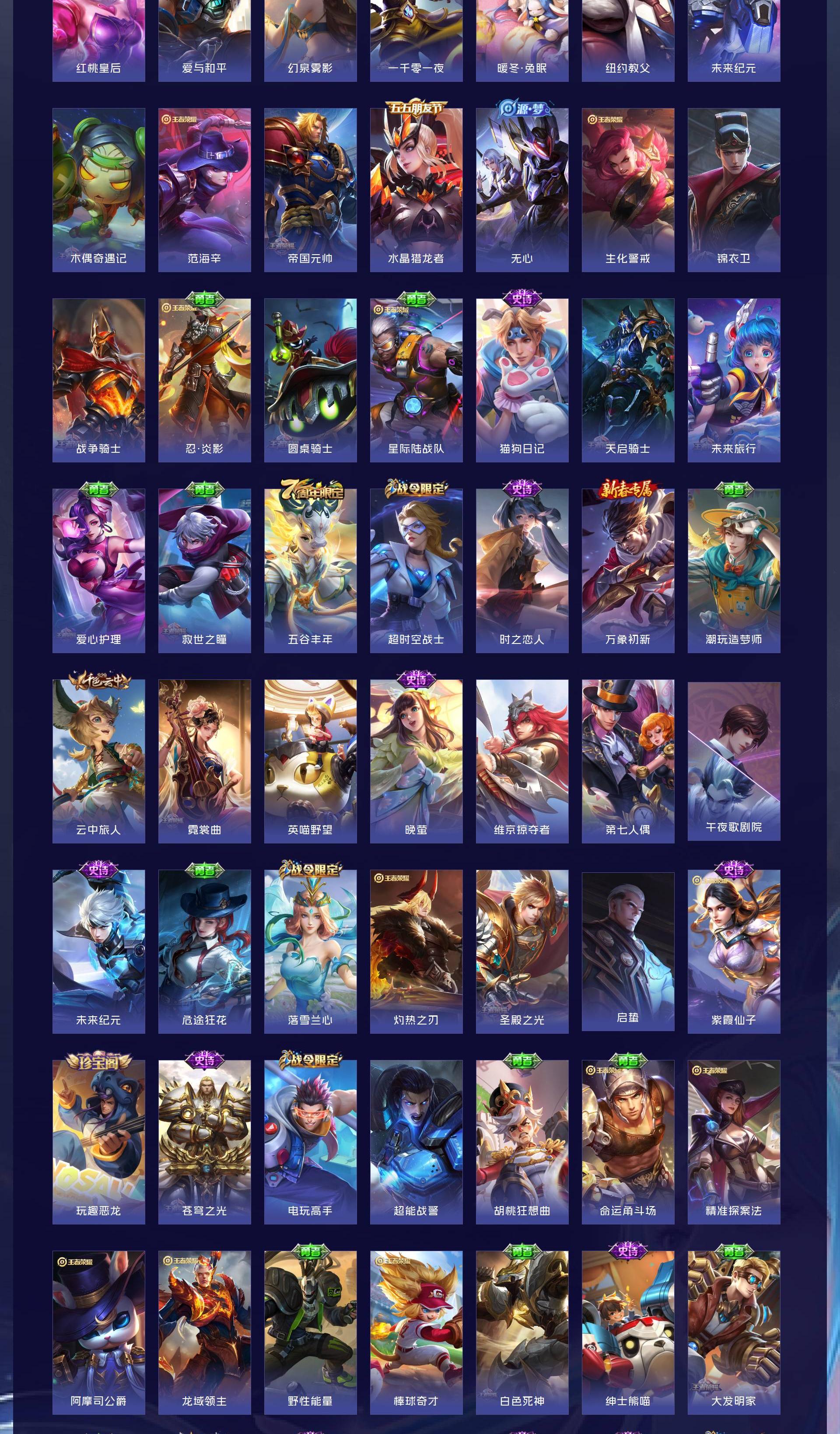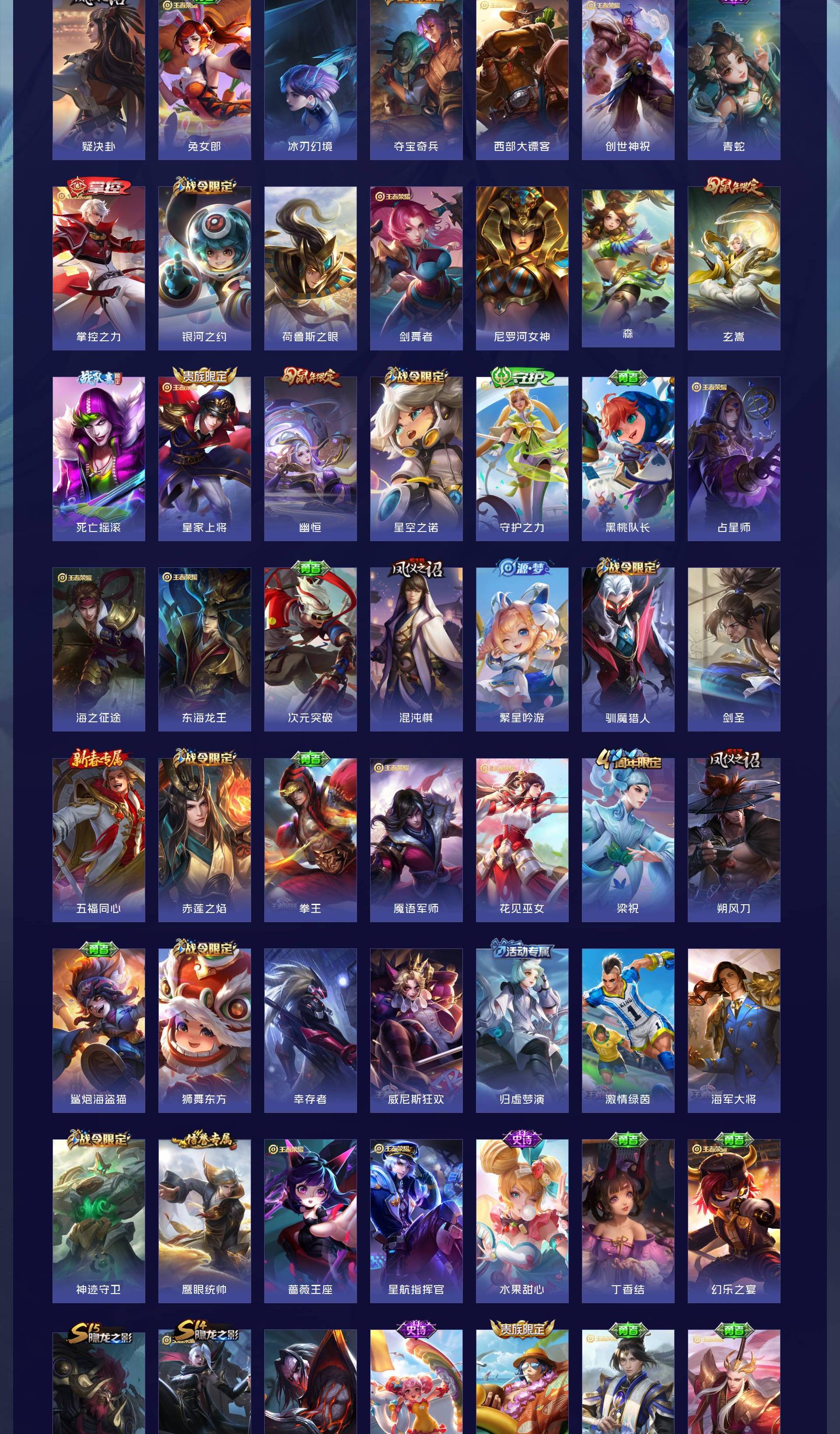 V8 皮肤324 英雄125 至尊星耀 荣耀典藏4 传说16 其他皮肤312