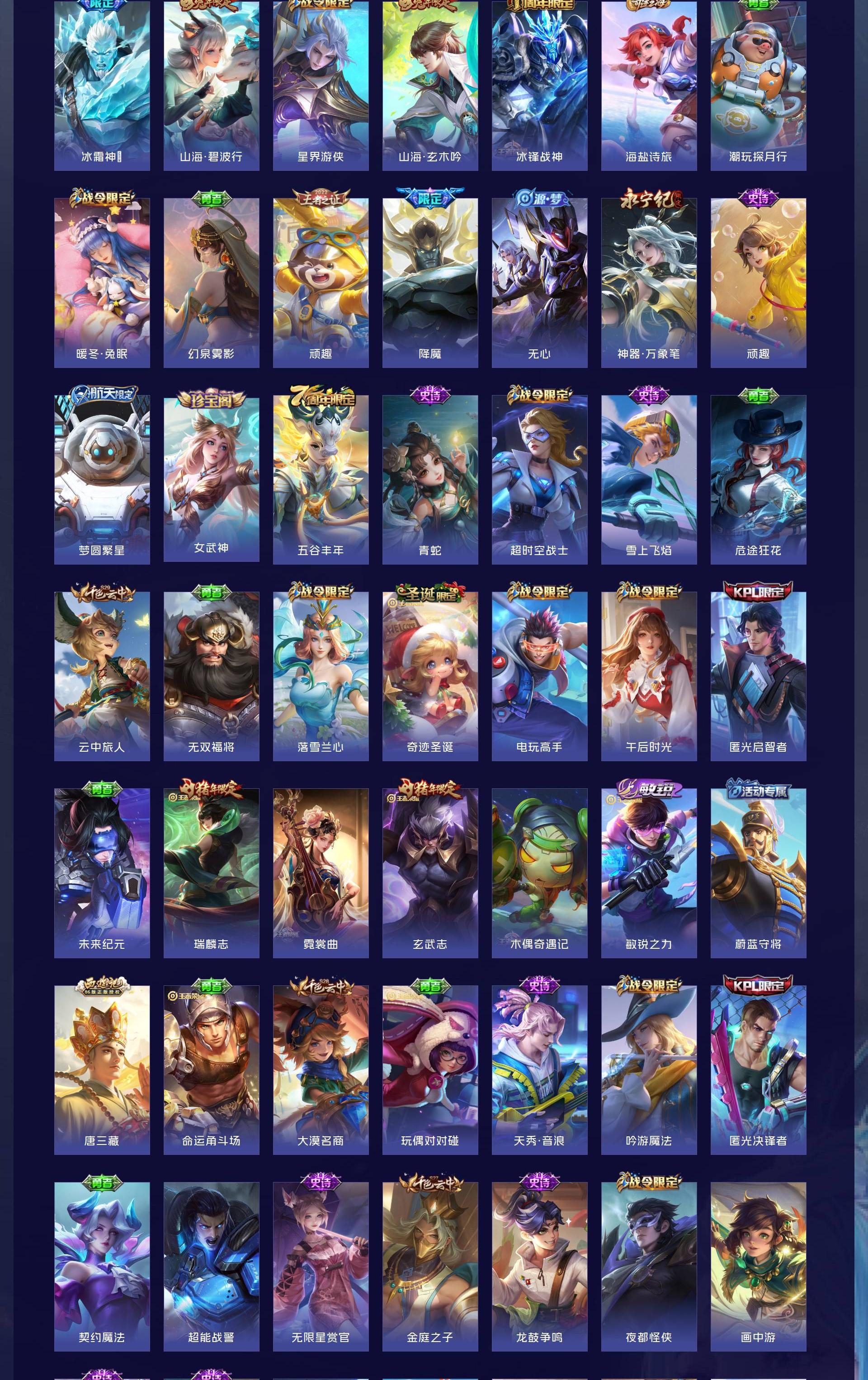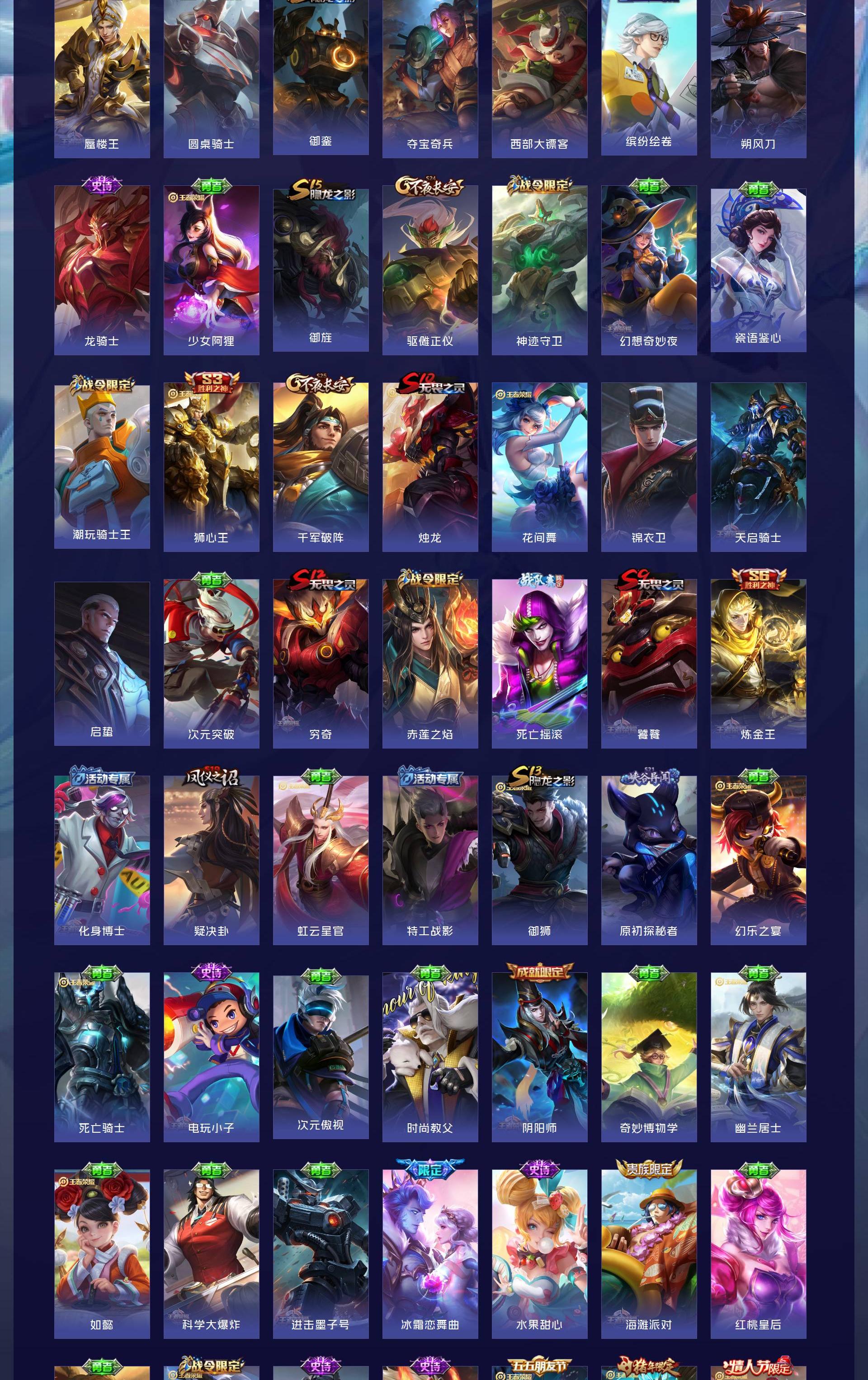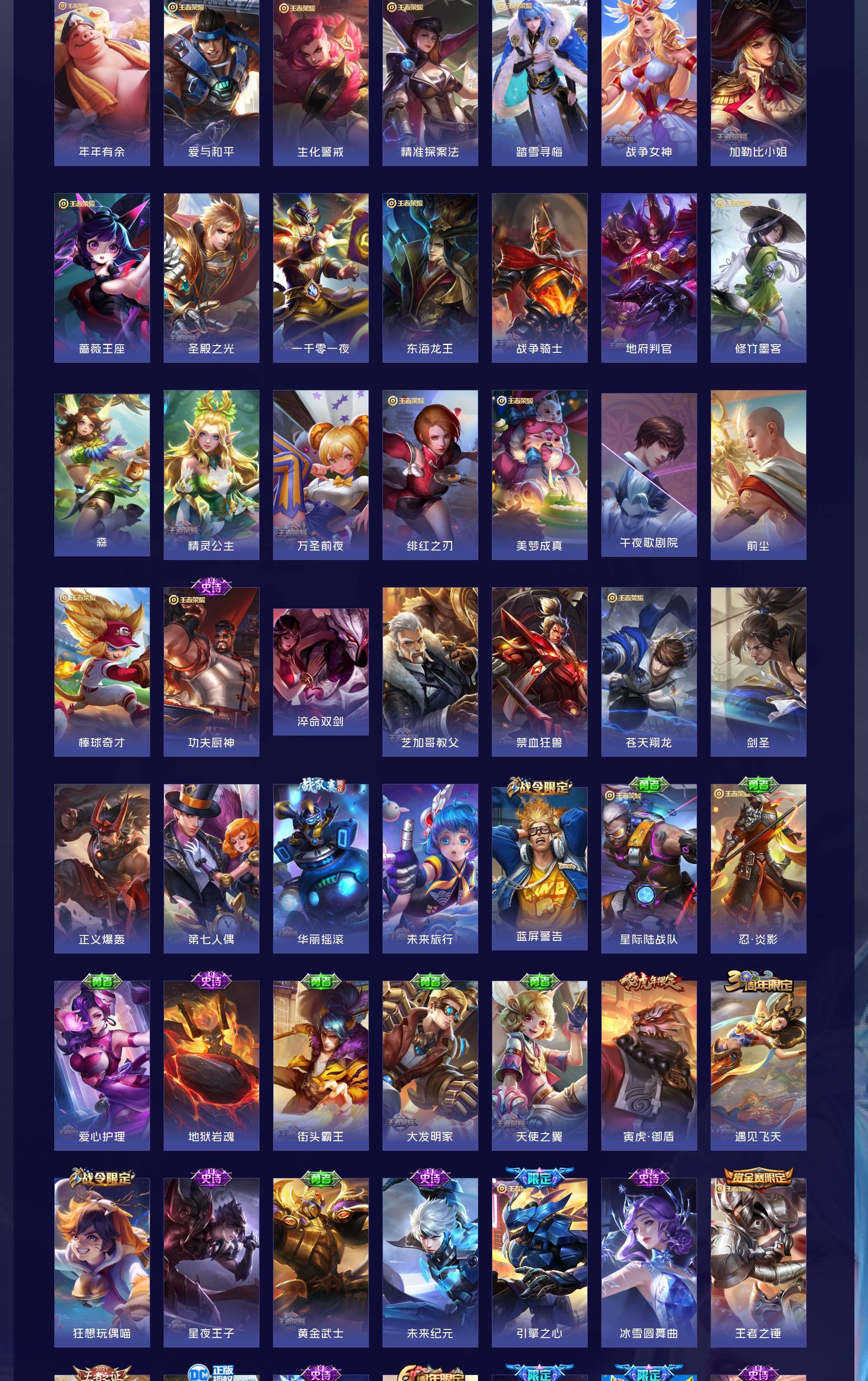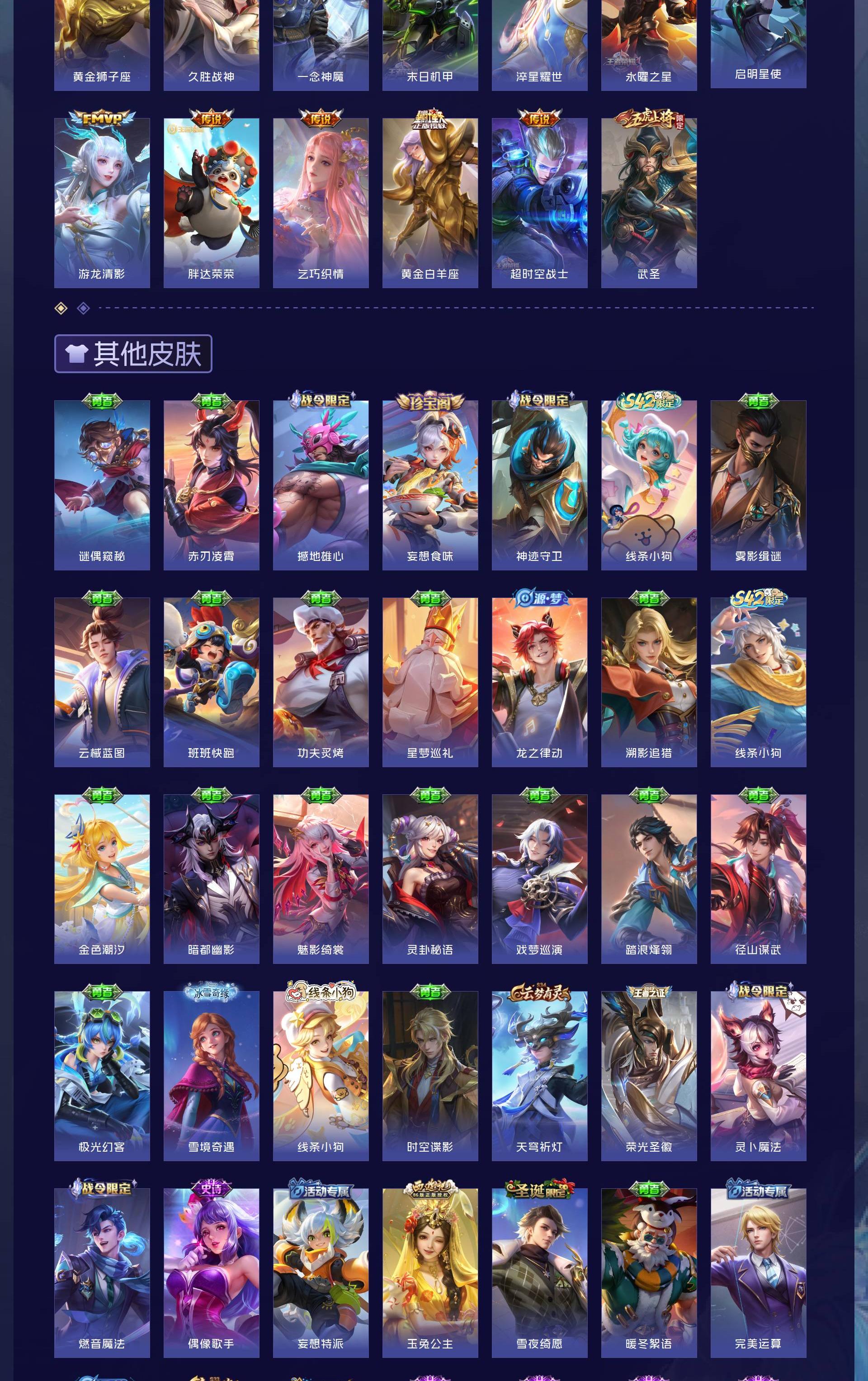 V10 皮肤491 英雄128 最强王者 荣耀典藏9 无双皮肤1 传说69 其他皮肤419
