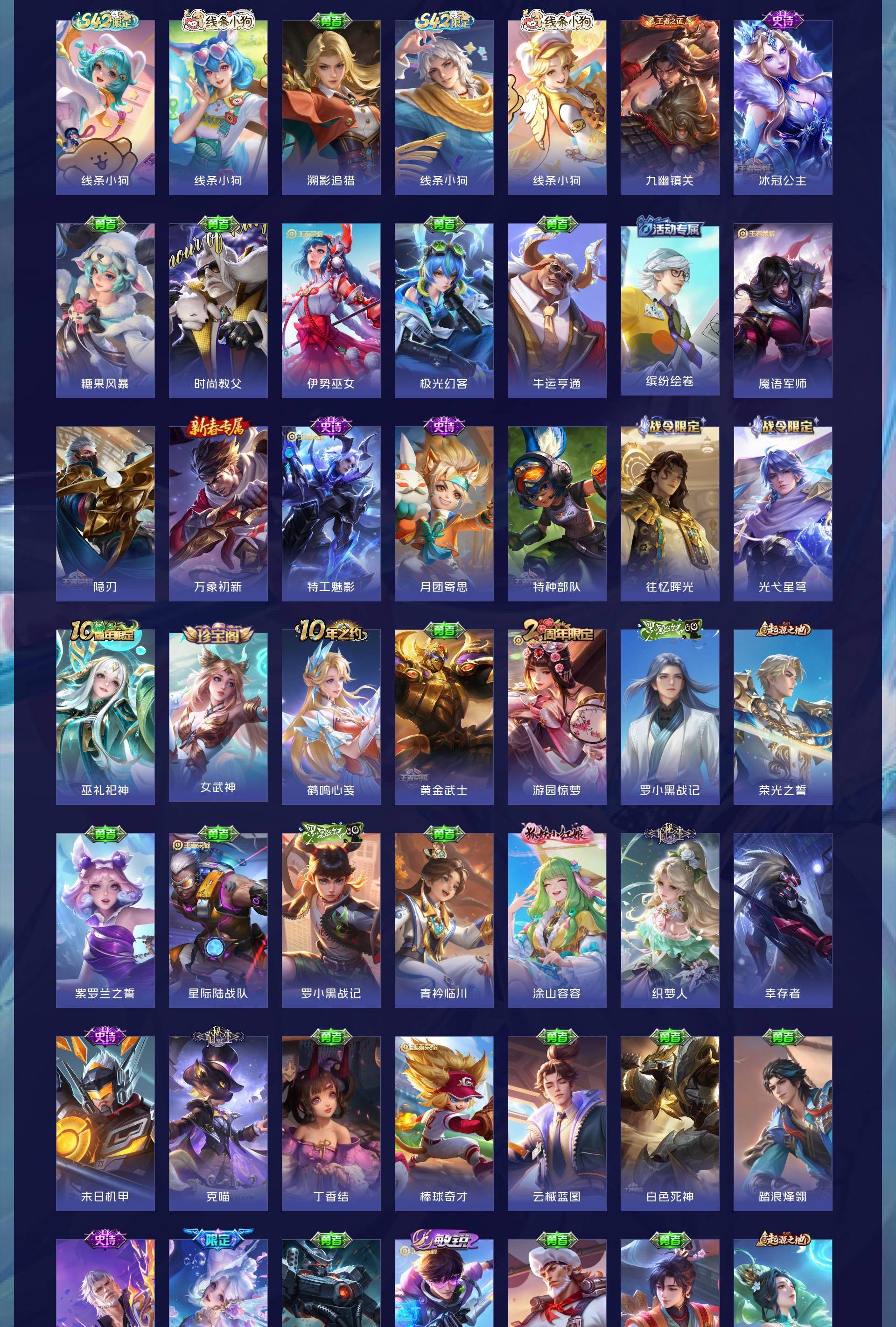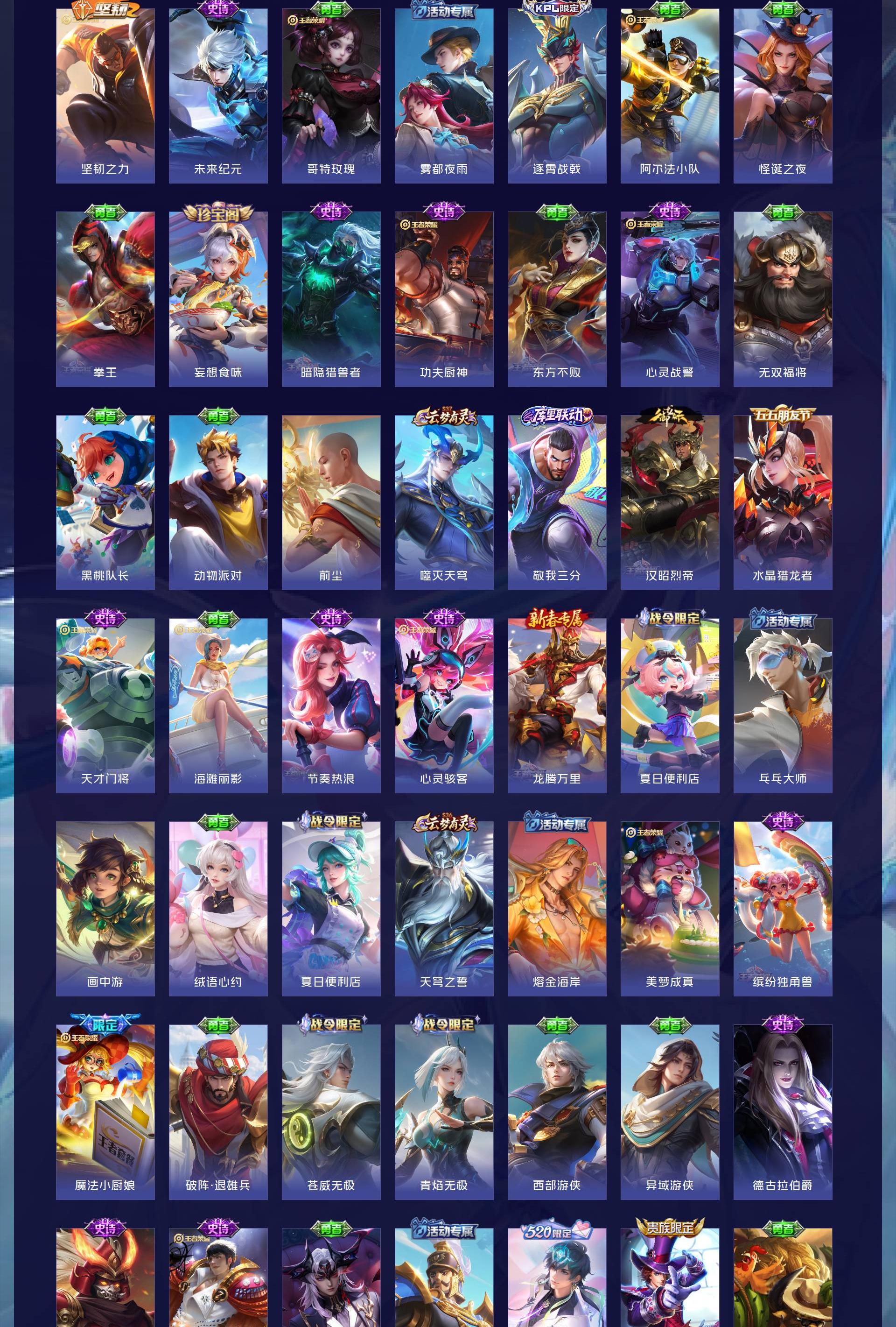 V6 皮肤277 英雄127 最强王者 荣耀典藏2 传说13 其他皮肤269