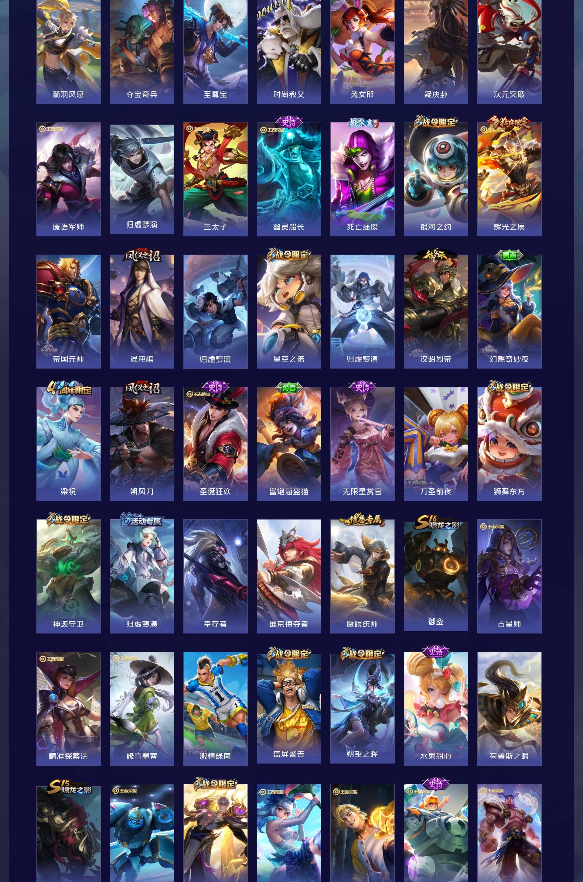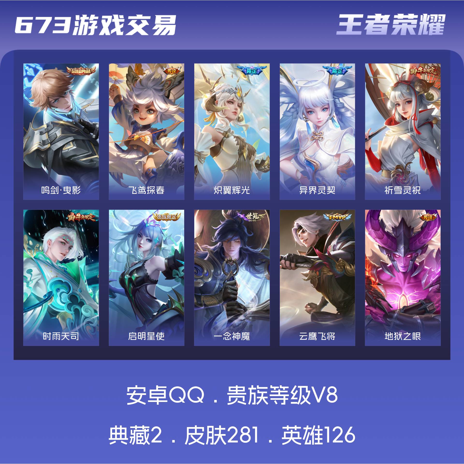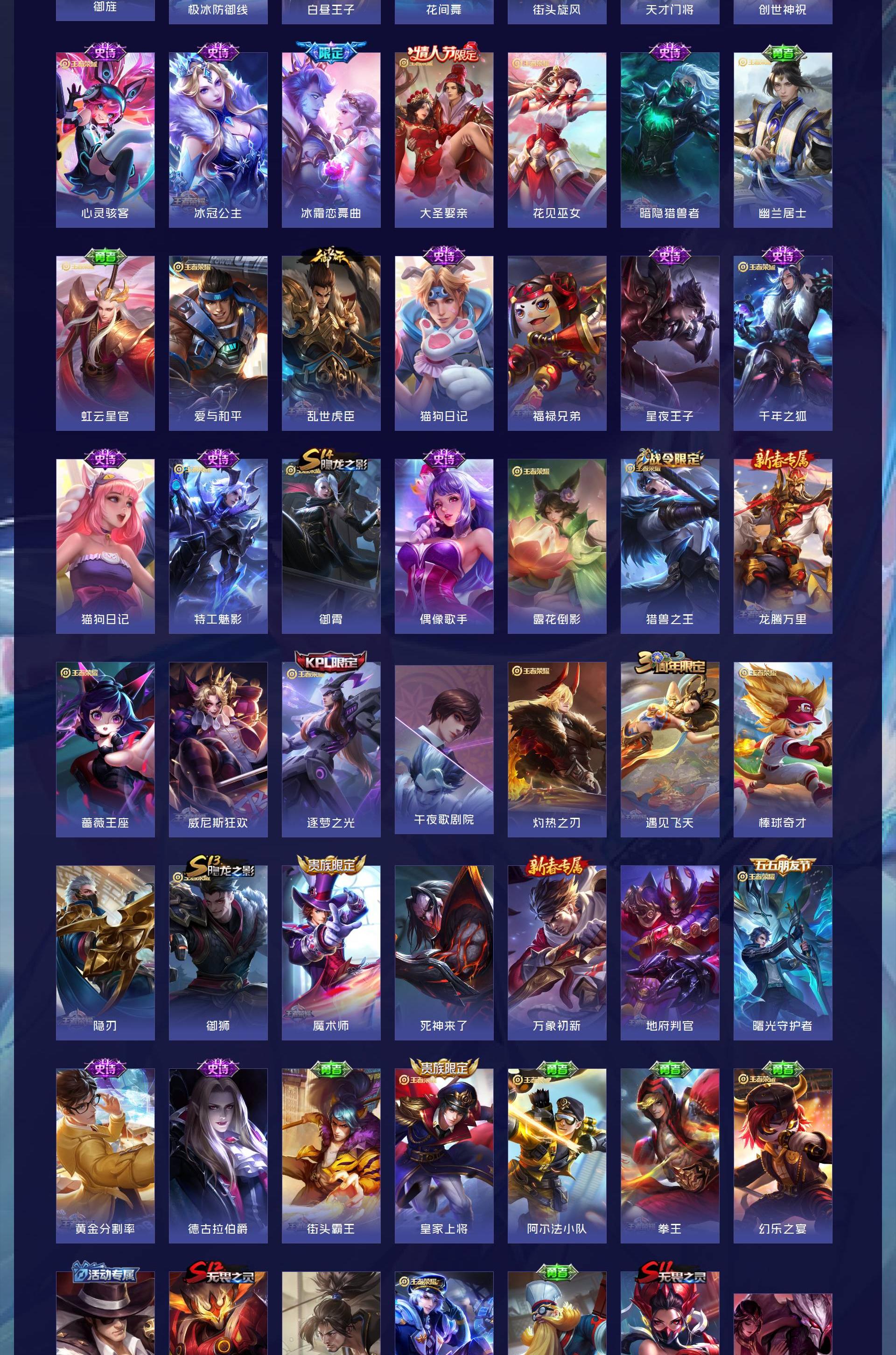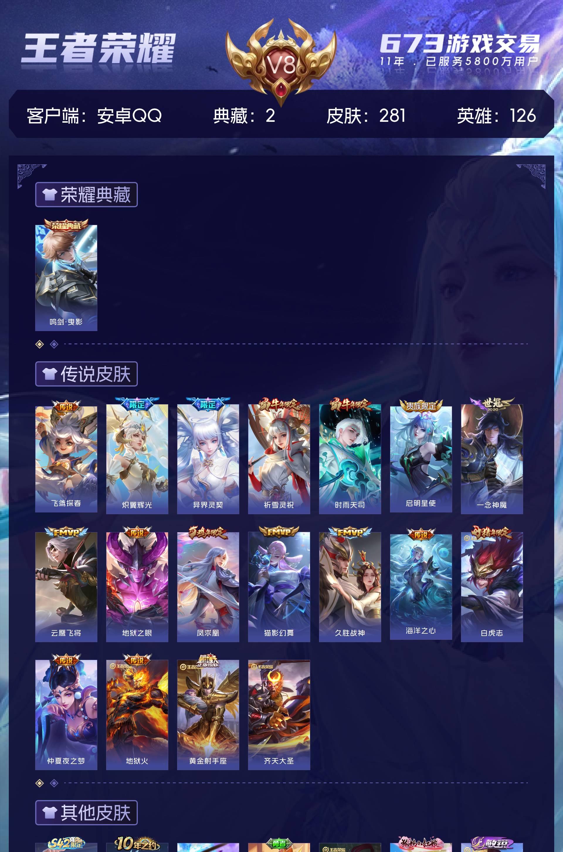 V8 皮肤281 英雄126 永恒钻石 荣耀典藏2 星传说3 传说18 其他皮肤269