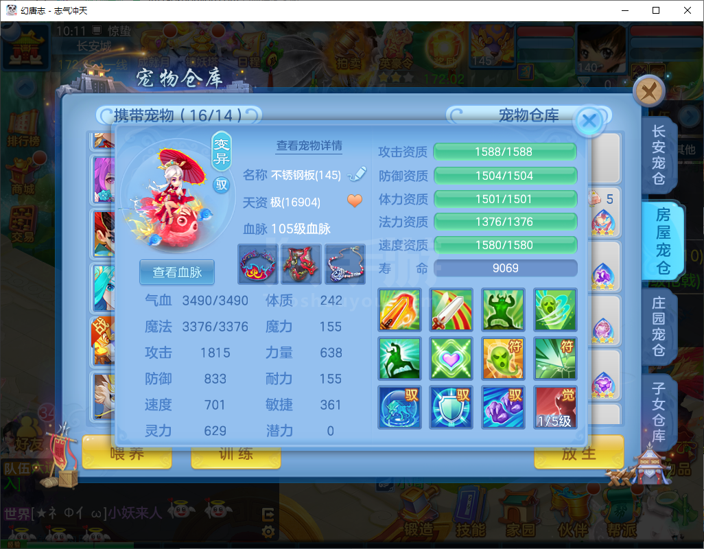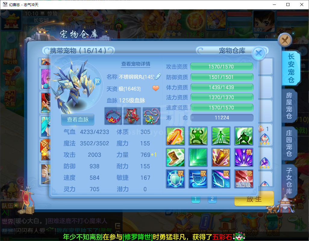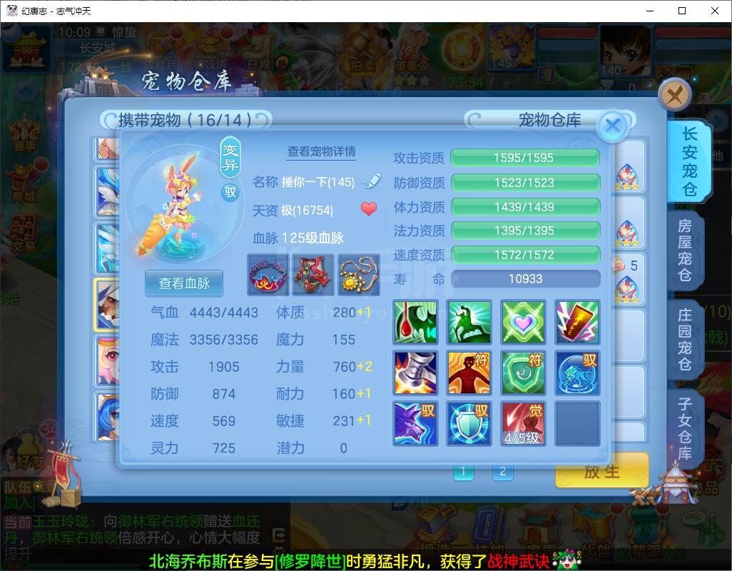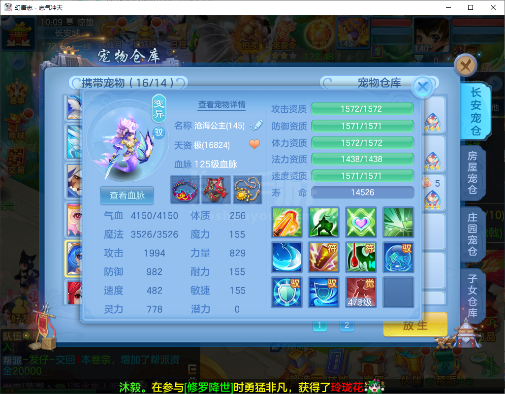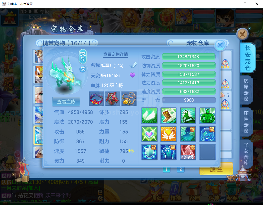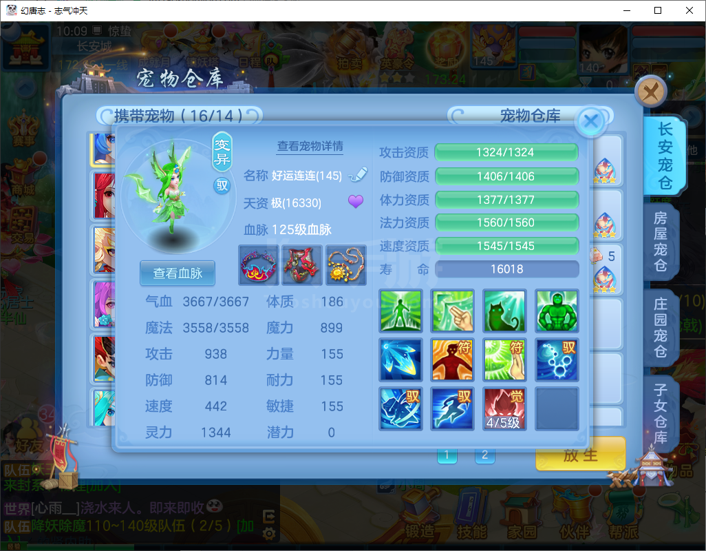 志气冲天/140盘丝-二百多天换绑-双内丹神,3件14段1件13段2件12段,10个6多特殊,高级坐骑+CP庄园