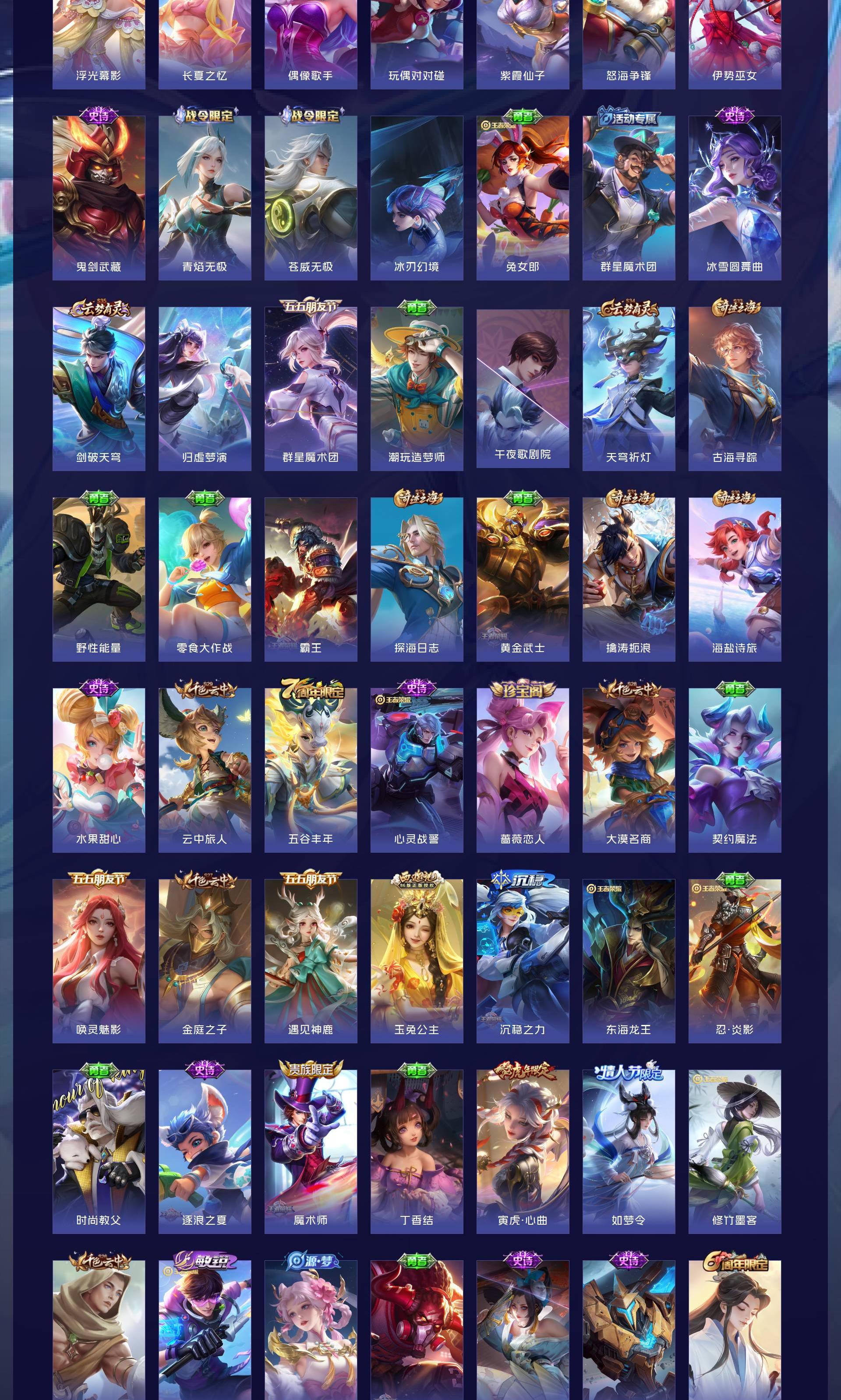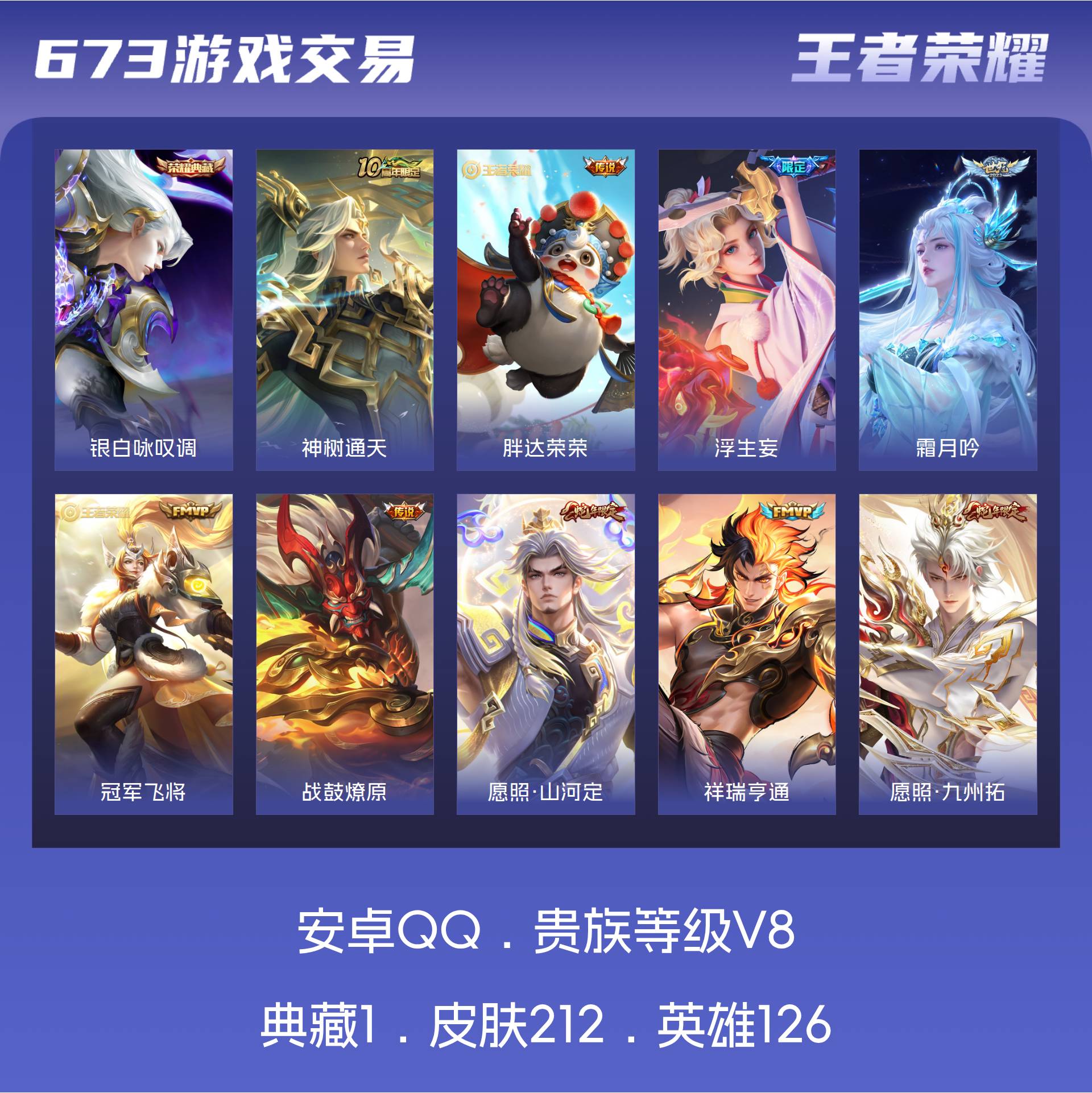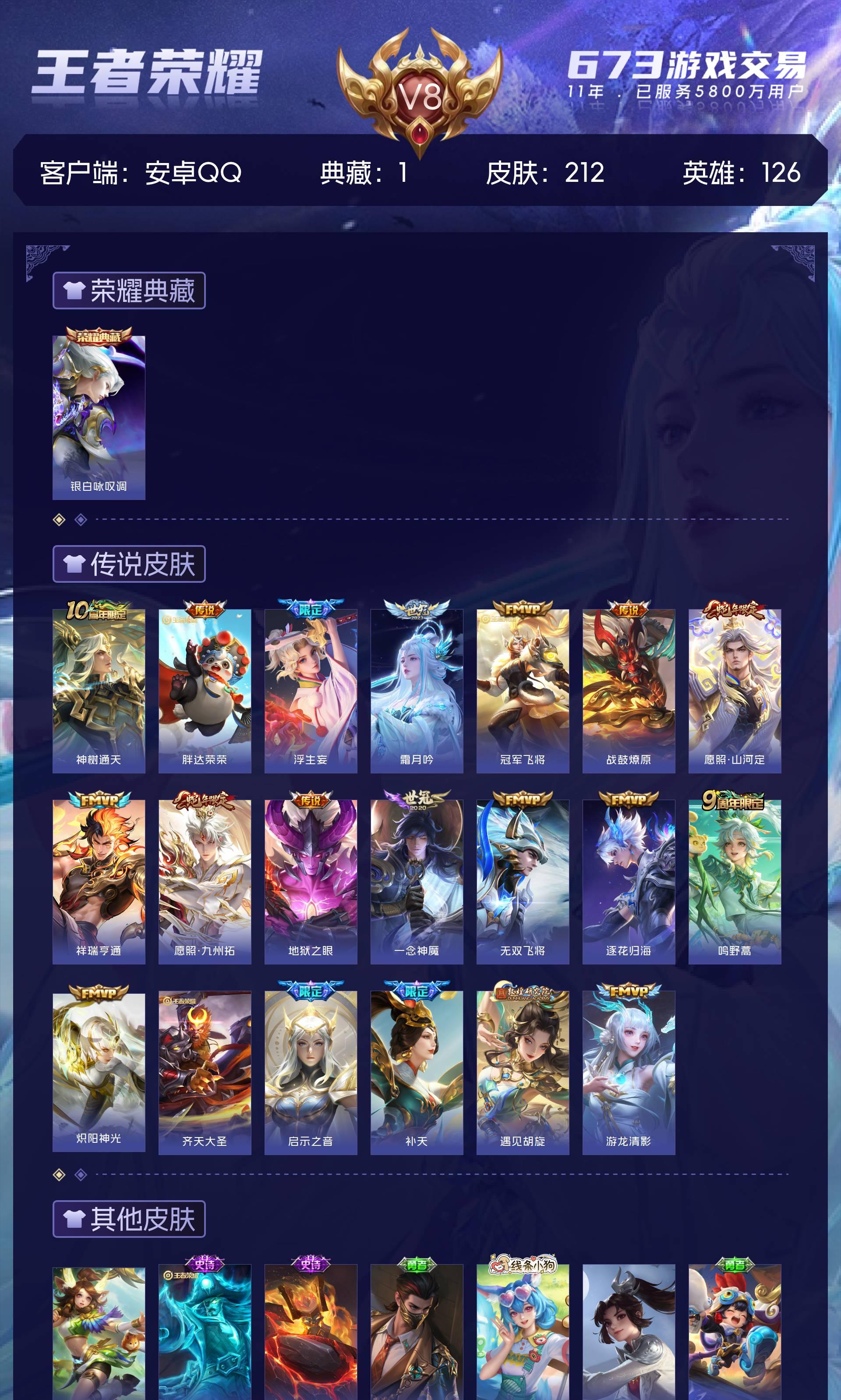 V8 皮肤212 英雄126 至尊星耀 荣耀典藏1 传说20 其他皮肤197