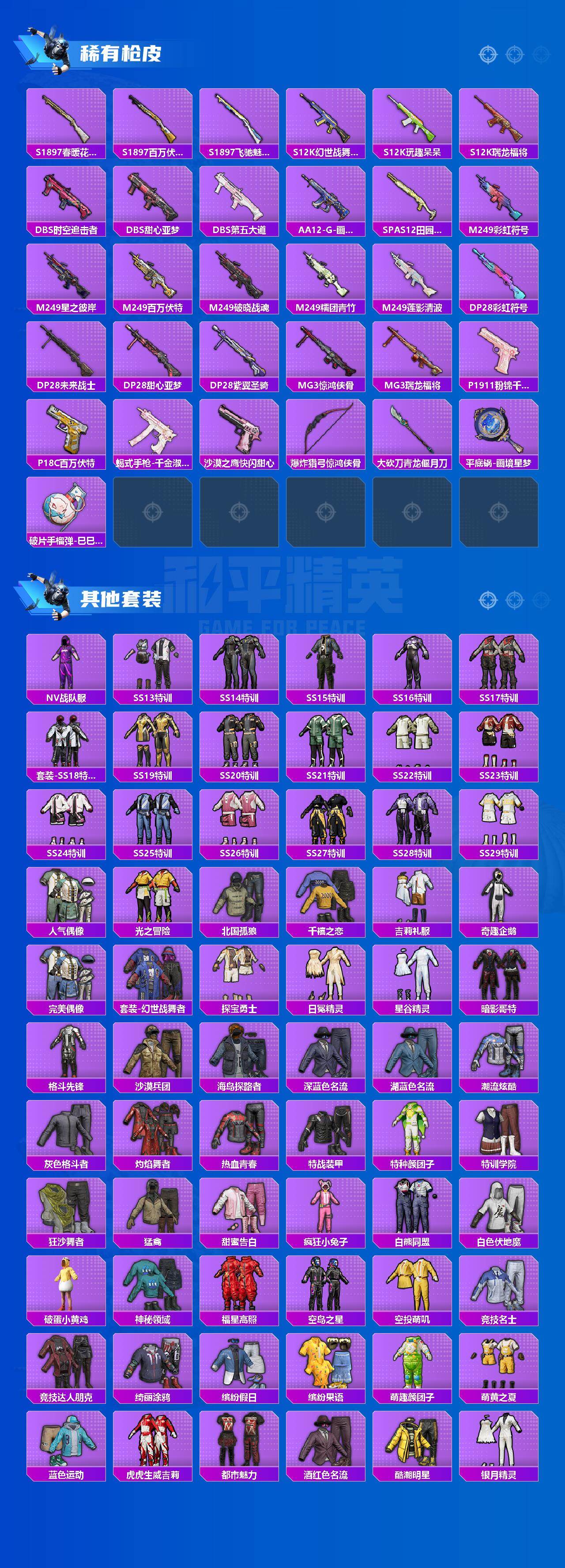【热门品类】:粉装-雪国幻梦,粉装-音爆索尼克,粉装-缤纷油彩,套装-都市猎人,套装-深海小丑鱼,套装-小丑鱼,套装-星河浪客,角色-忠猛周仓,角色-忠义严颜,套装-龟仙人,套装-暗影哥特,大砍刀-青龙偃月刀