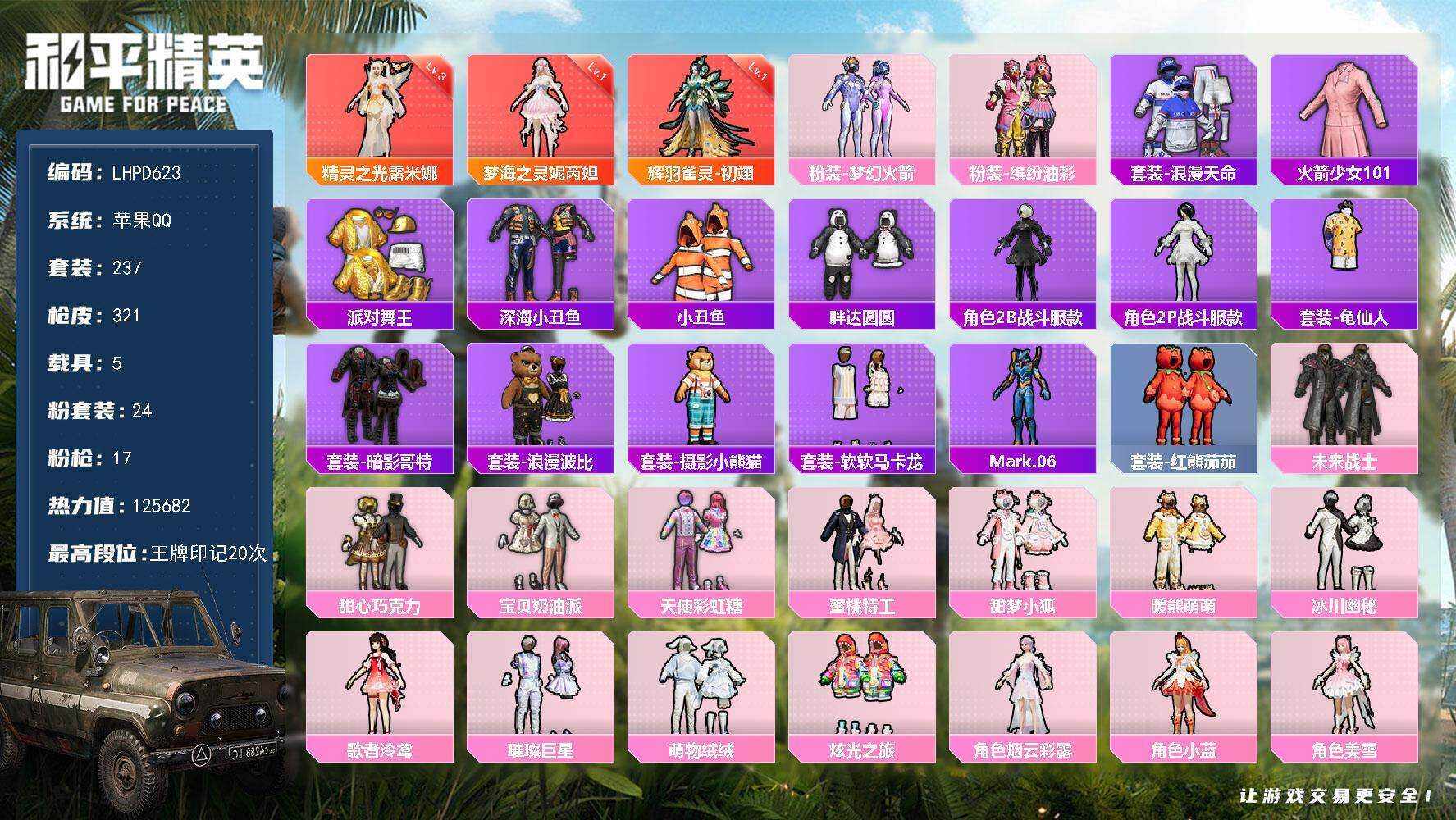 老101【店主推荐捡漏号!可直接换绑】苹果 手Q-3神装-24粉装-17特效枪-6载具-11粉色飞行器-125682热力值-20王牌印记-237套装-321枪皮【红色神装等级】:辉羽雀灵-初翊(一级),精灵之光-露米娜(三级),梦海之灵-妮芮妲(一级)【红色角色神装】:辉羽雀灵-初翊,精灵之光-露米娜,梦海之灵-妮芮妲【热门品类】:粉装-梦幻火箭,粉装-缤纷油彩,套装-浪漫天命,套装-火箭少女1