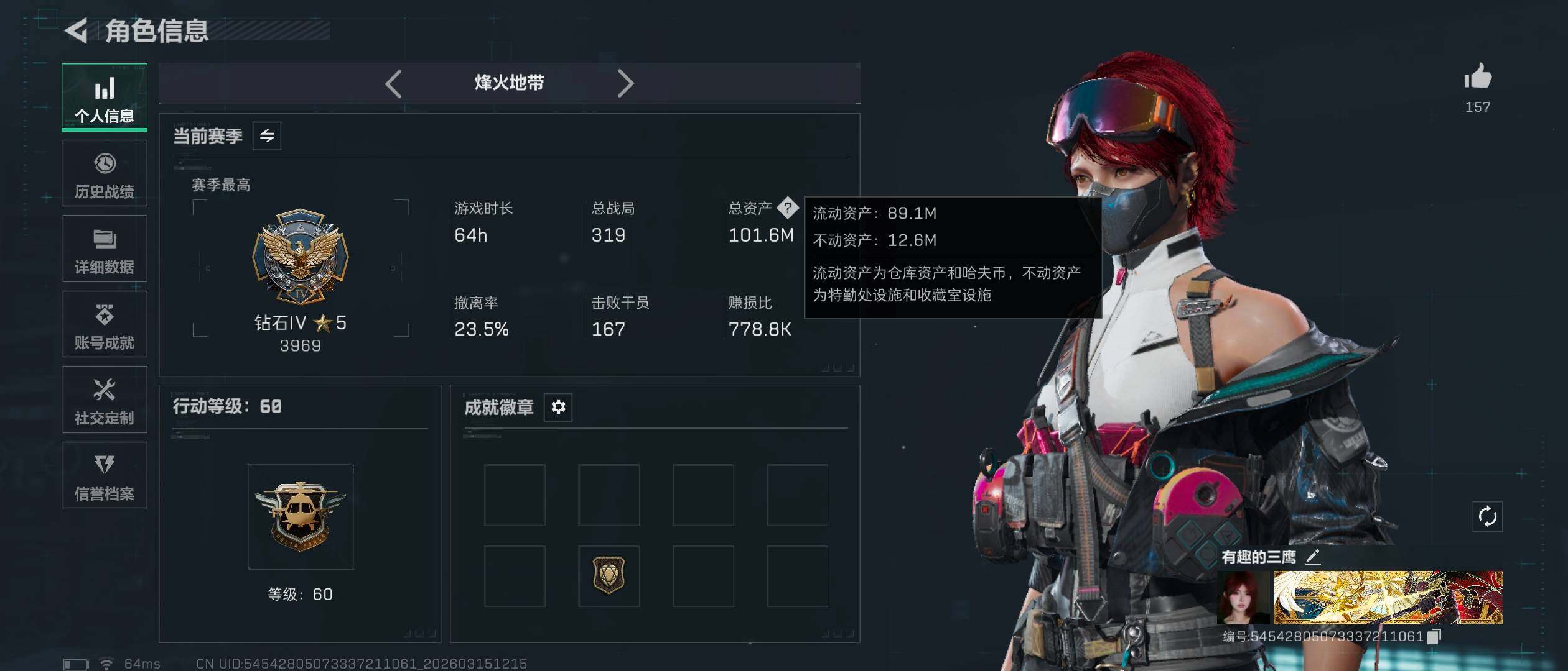 满级 101M 红狼电锯 蛊联动红皮 乌鲁鲁荒原 深蓝不破誓约 露娜金牌 骇爪联动红皮 暗星 7仓 6体 4负 六格保险 通行证