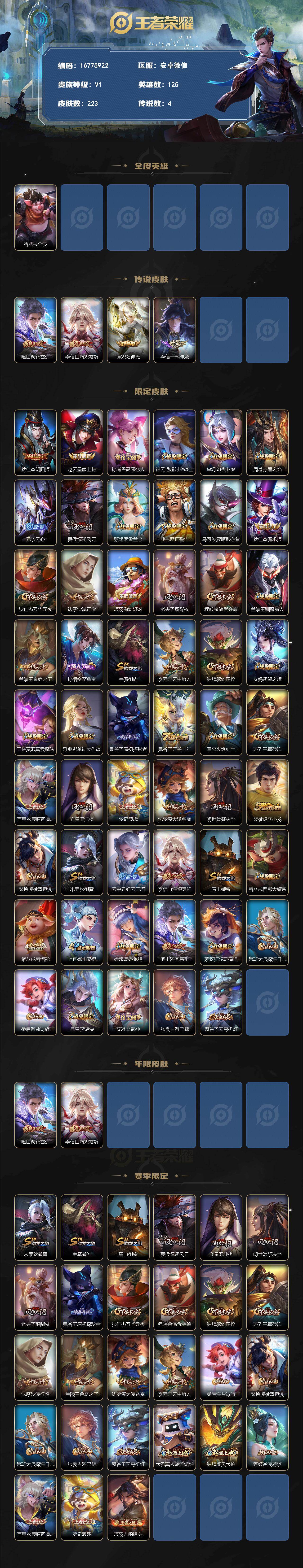【16775922】安卓WX-V0-永恒钻石II段位-125英雄-223皮肤-