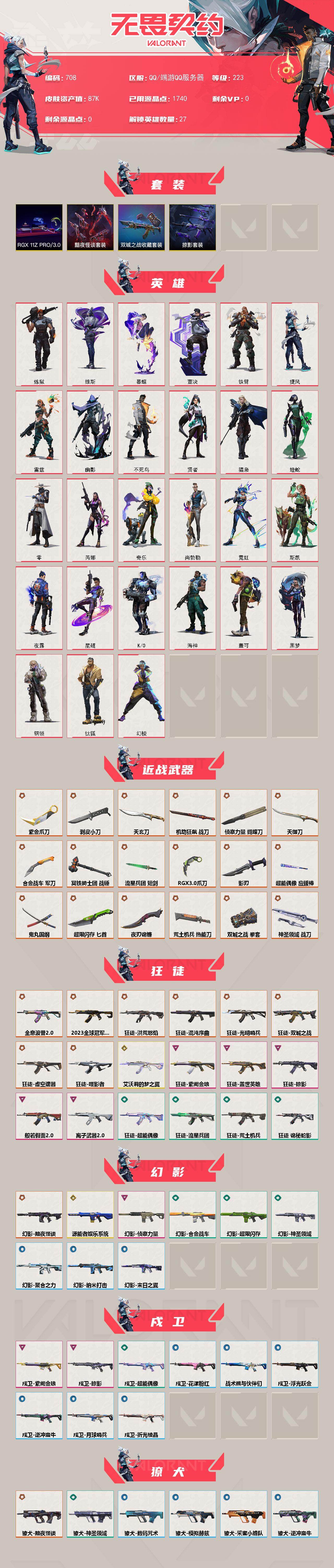 【英雄】:幻棱,炼狱,维斯,暮蝶,钛狐,壹决,铁臂,捷风,雷兹,幽影,不死鸟,贤者,猎枭,蝰蛇,零,芮娜,奇乐,尚勃勒,霓虹,斯凯,夜露,星礈,K/O,海神,盖可,黑梦,钢锁