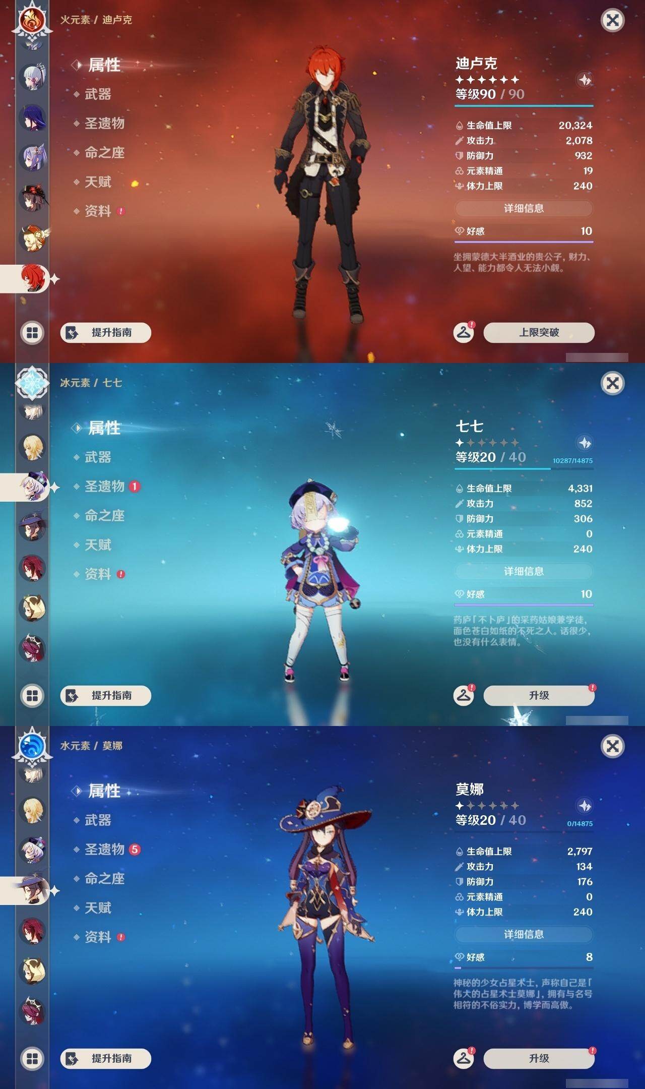 58级/29黄/女主/16个五星角色/5个五星武器