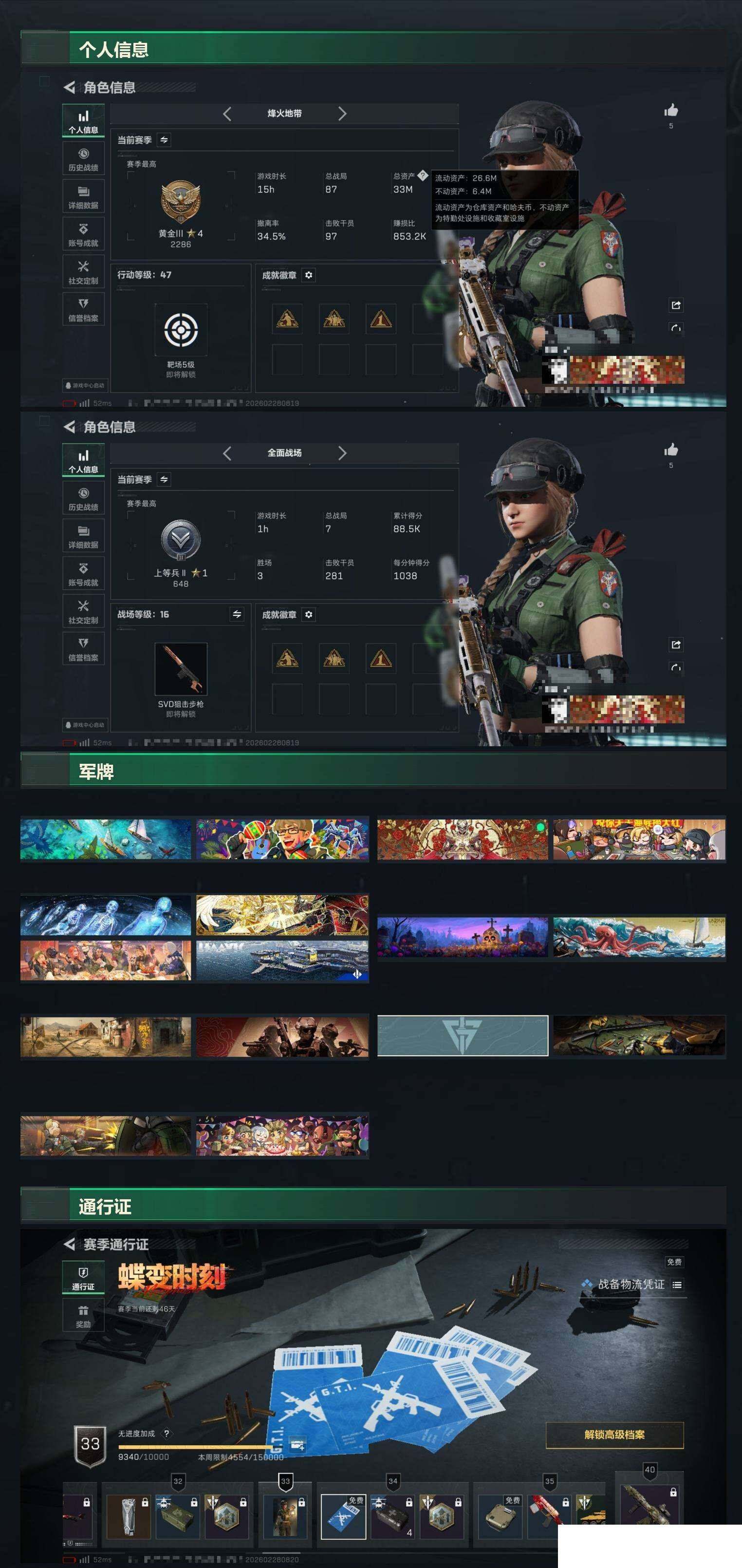 红狼 暗星 烽火地带段位: 黄金 全面战场段位: 上等兵 总
