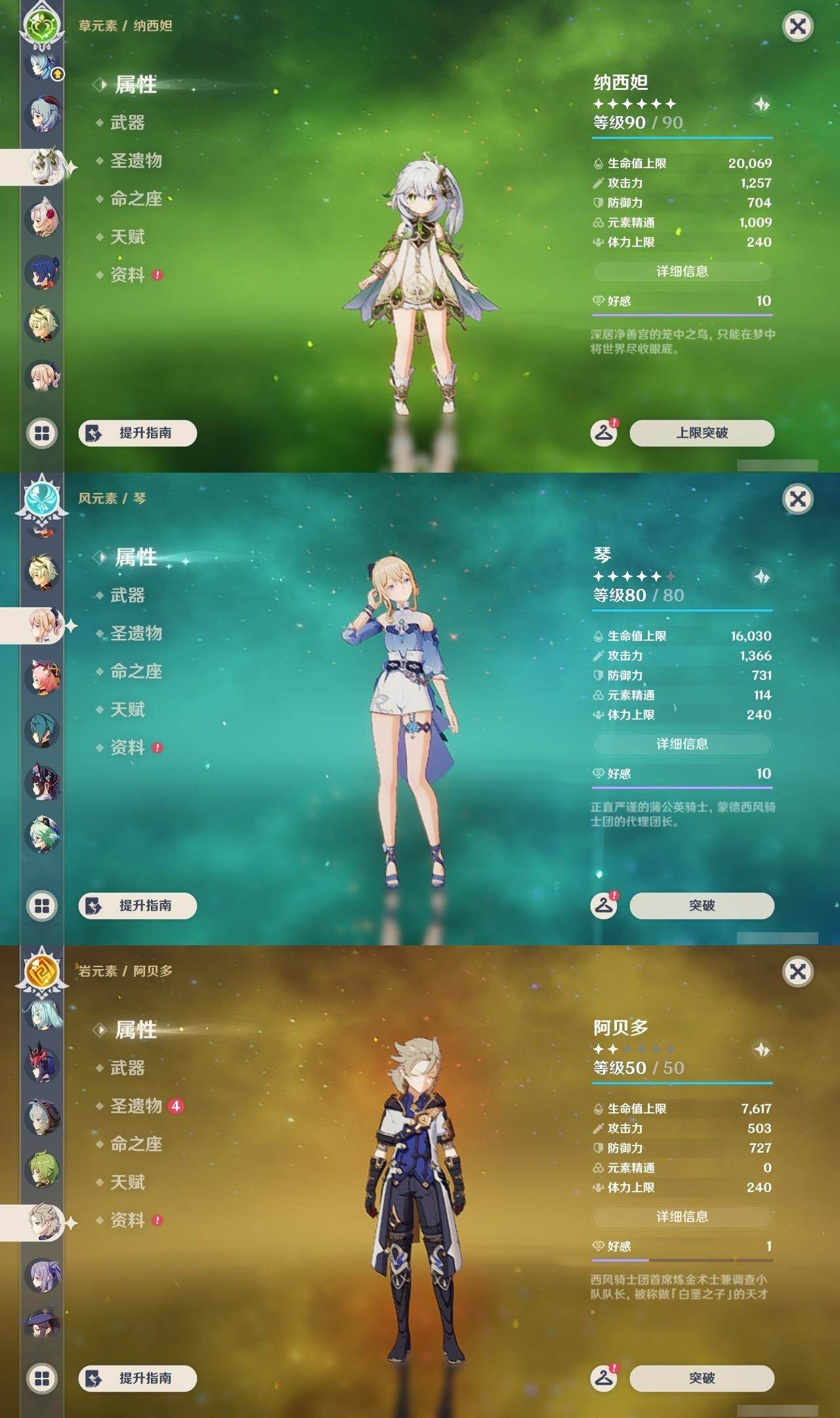 0命迪希雅,0命纳西妲,0命夜兰,1命优菈,0命雷电将军,0命钟离,0命甘雨,0命宵宫,0命阿贝多,1命刻晴,1命七七,3命琴,1命莫娜,0命迪卢克,精2冬极白星,精1薙草之稻光,精1松籁响起之时,精1四风原典,精1天空之刃,精2尘世之锁