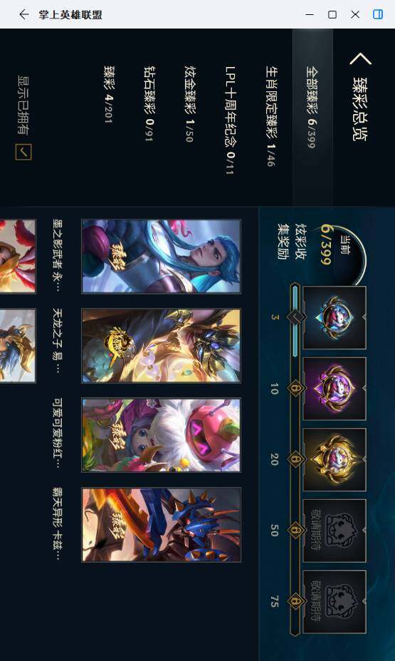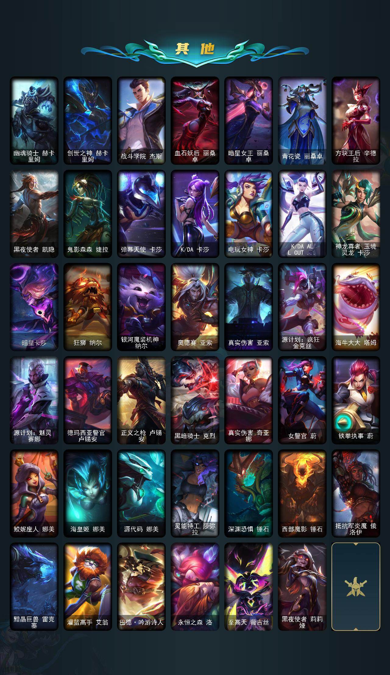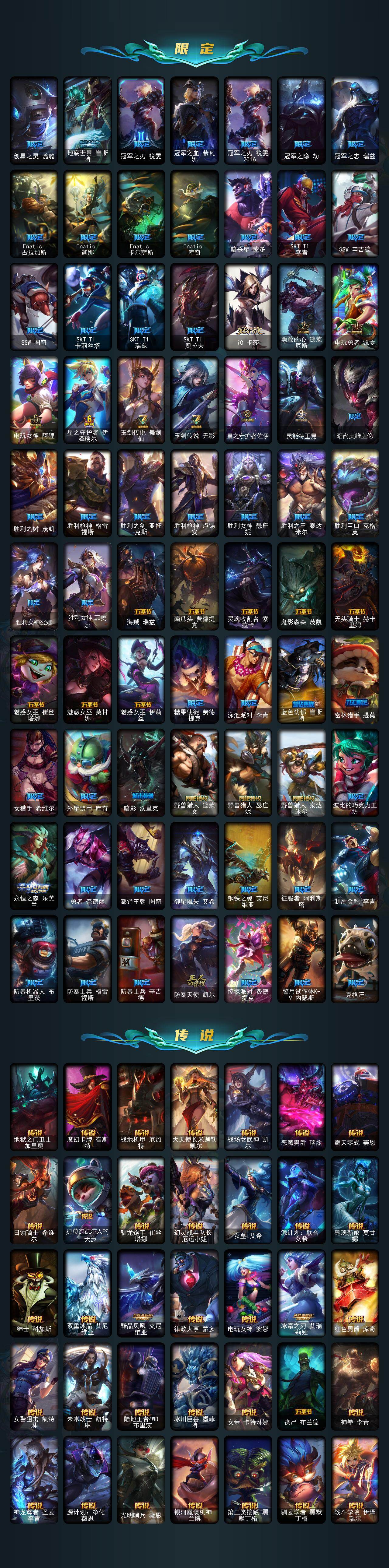 铂金段位-172英雄-612皮肤-264炫彩-1终极-6神话-127限定-59传说-144史诗