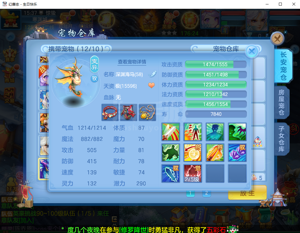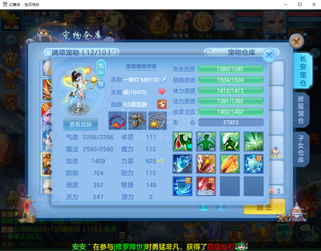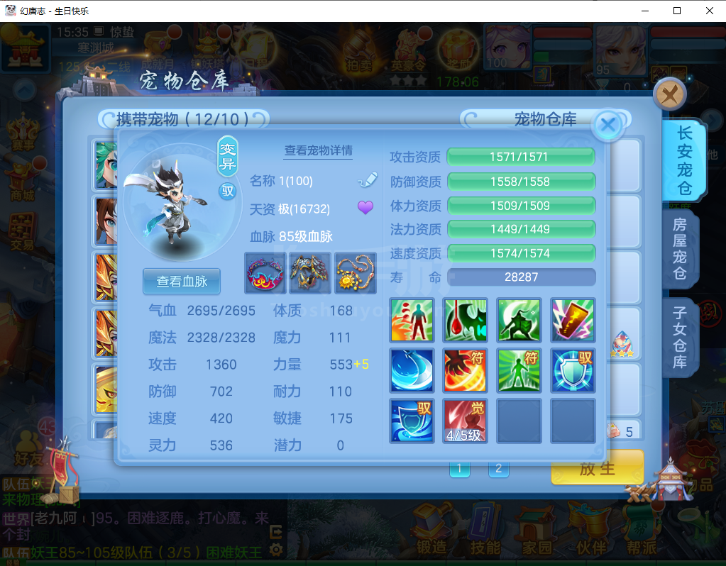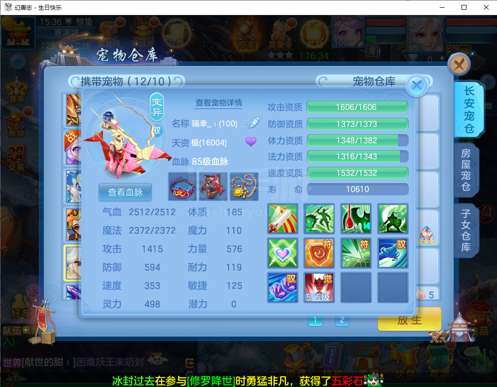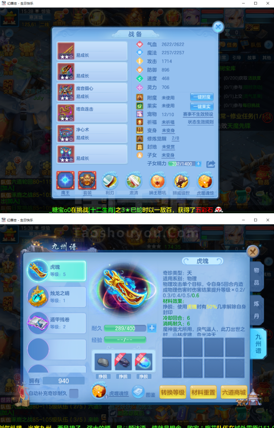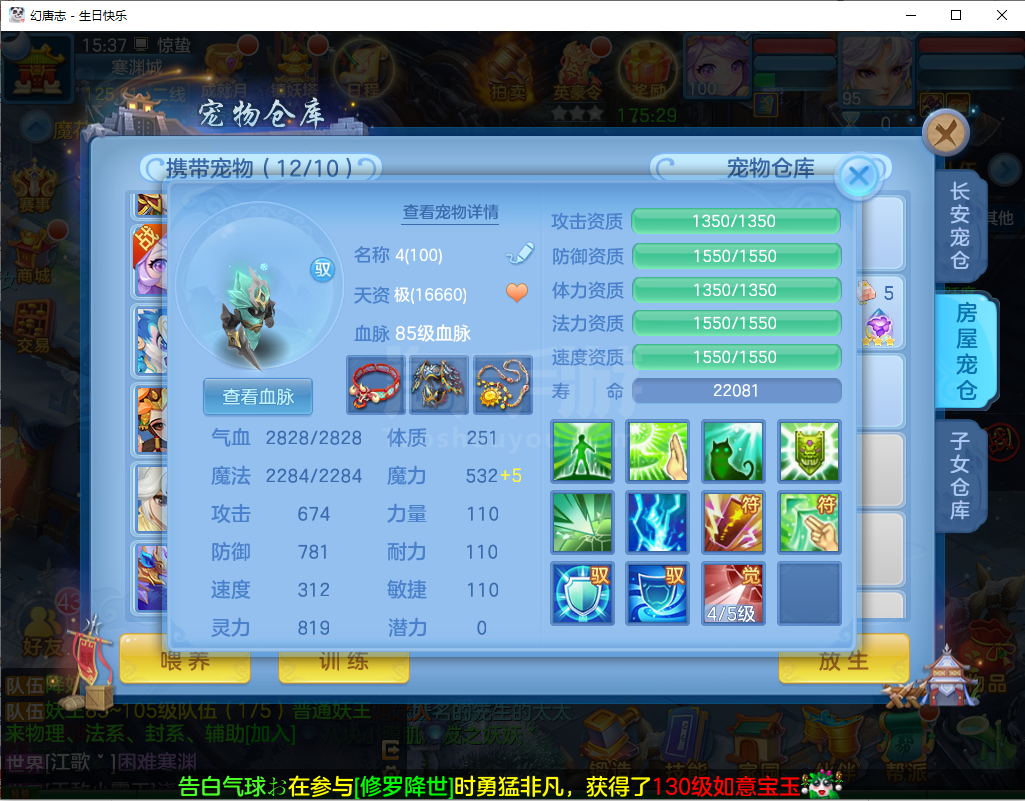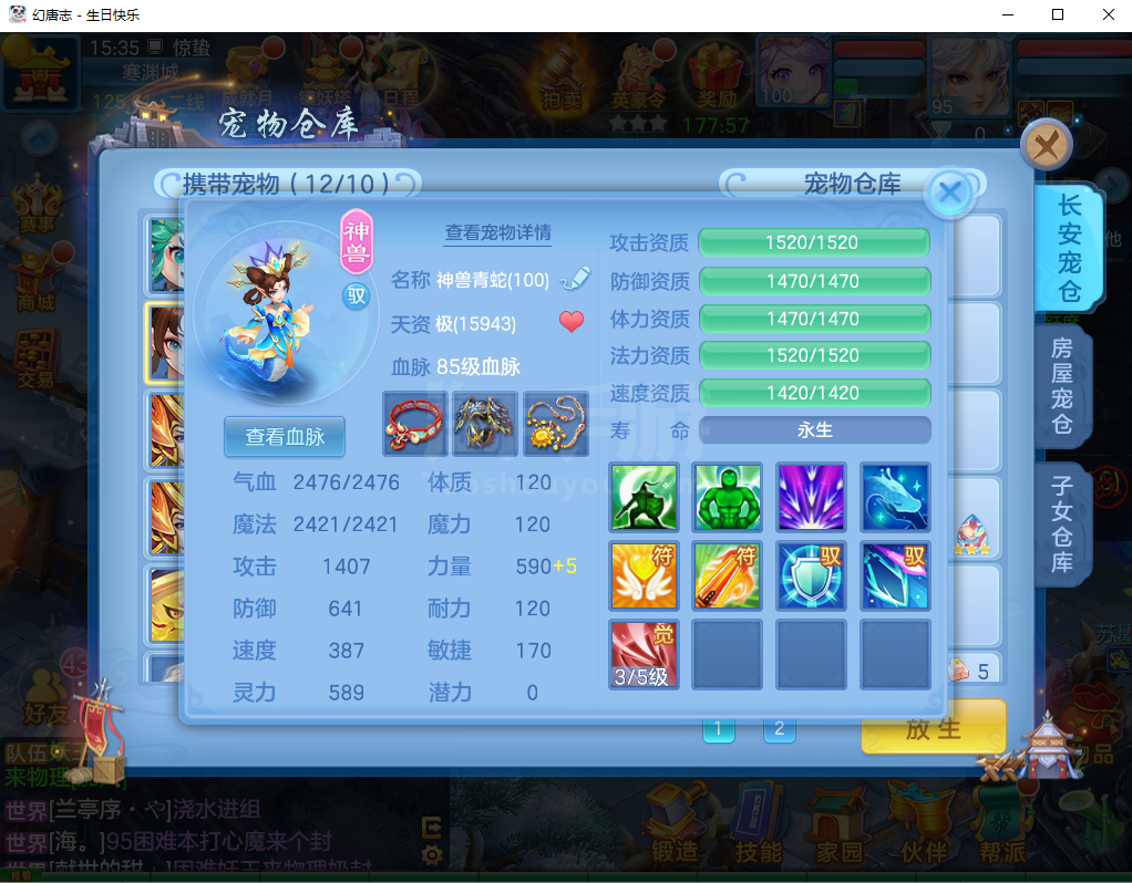 (95万兽/男)生日快乐/一年换绑/有双重---2件12段3件11段1件9段,易成长,神兽蛇+5个6技能宝宝,高级坐骑,2546成就