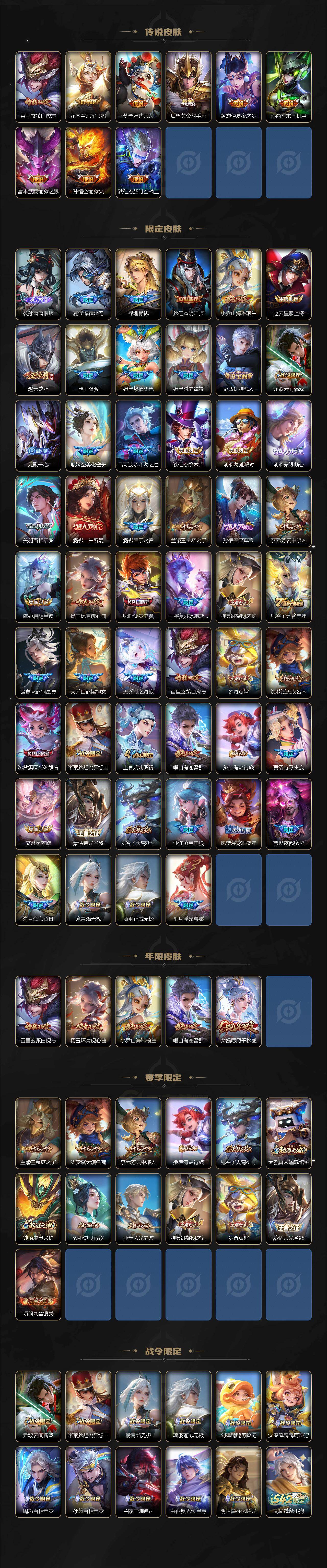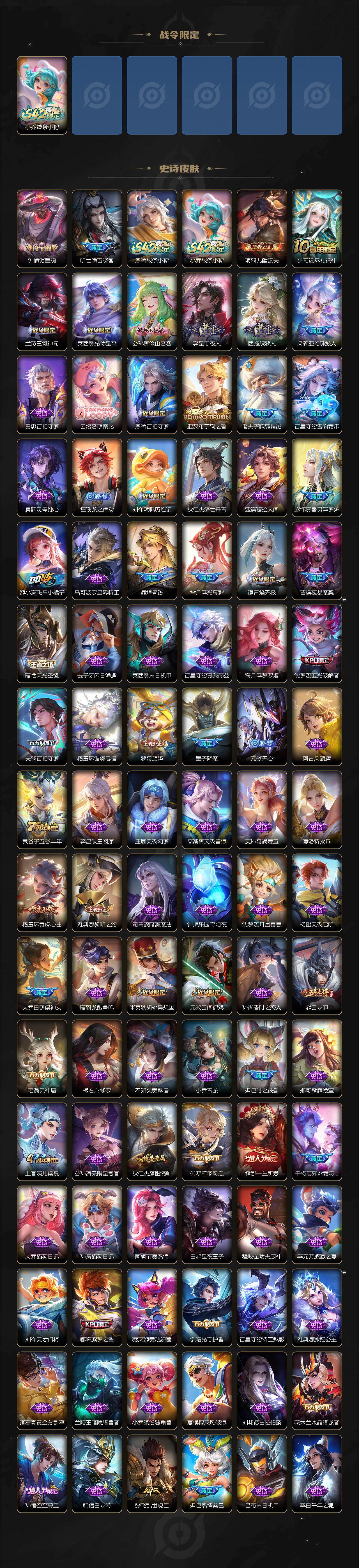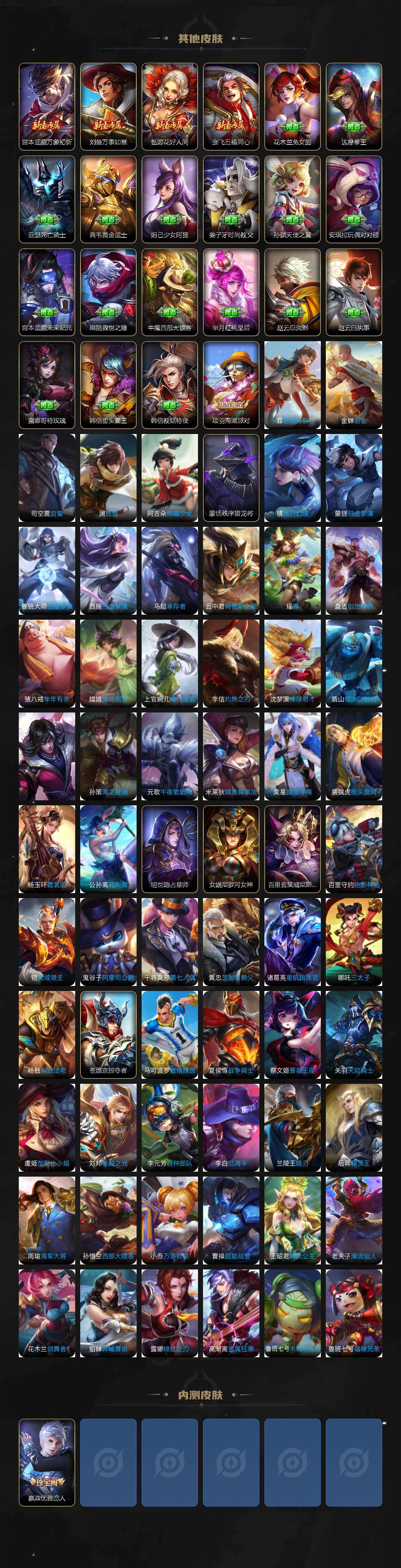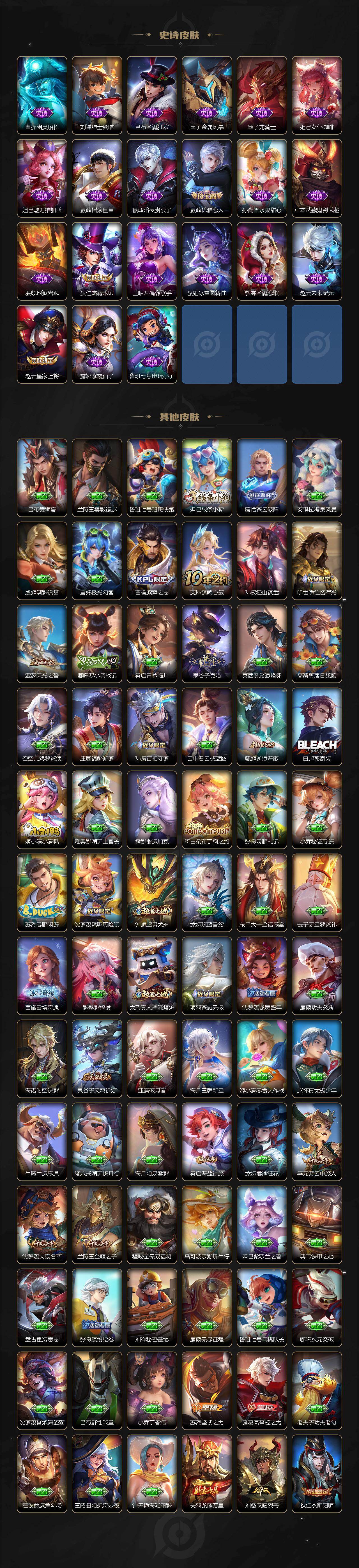 【英雄全皮】:元歌全皮,司马懿全皮,孙权全皮,敖隐全皮,海月全皮,夏洛特全皮,空空儿全皮,影全皮