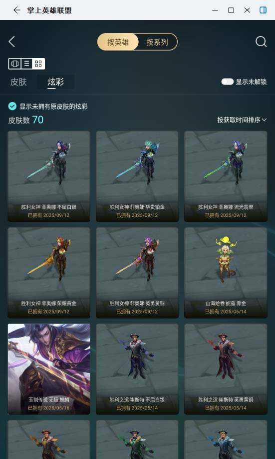 青铜段位-171英雄-142皮肤-70炫彩-0终极-2神话-19限定-6传说-34史诗