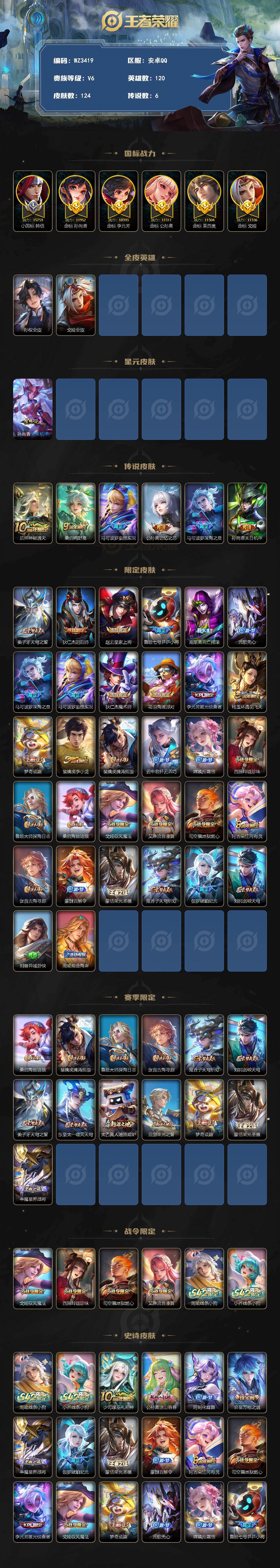 【秒换绑】安卓Q-V6-【1.5w小国标韩信】【1.1w金标孙尚香,戈娅,公孙离,莱西奥,李元芳】最强王者段位-120英雄-124皮肤-6传说-37史诗
