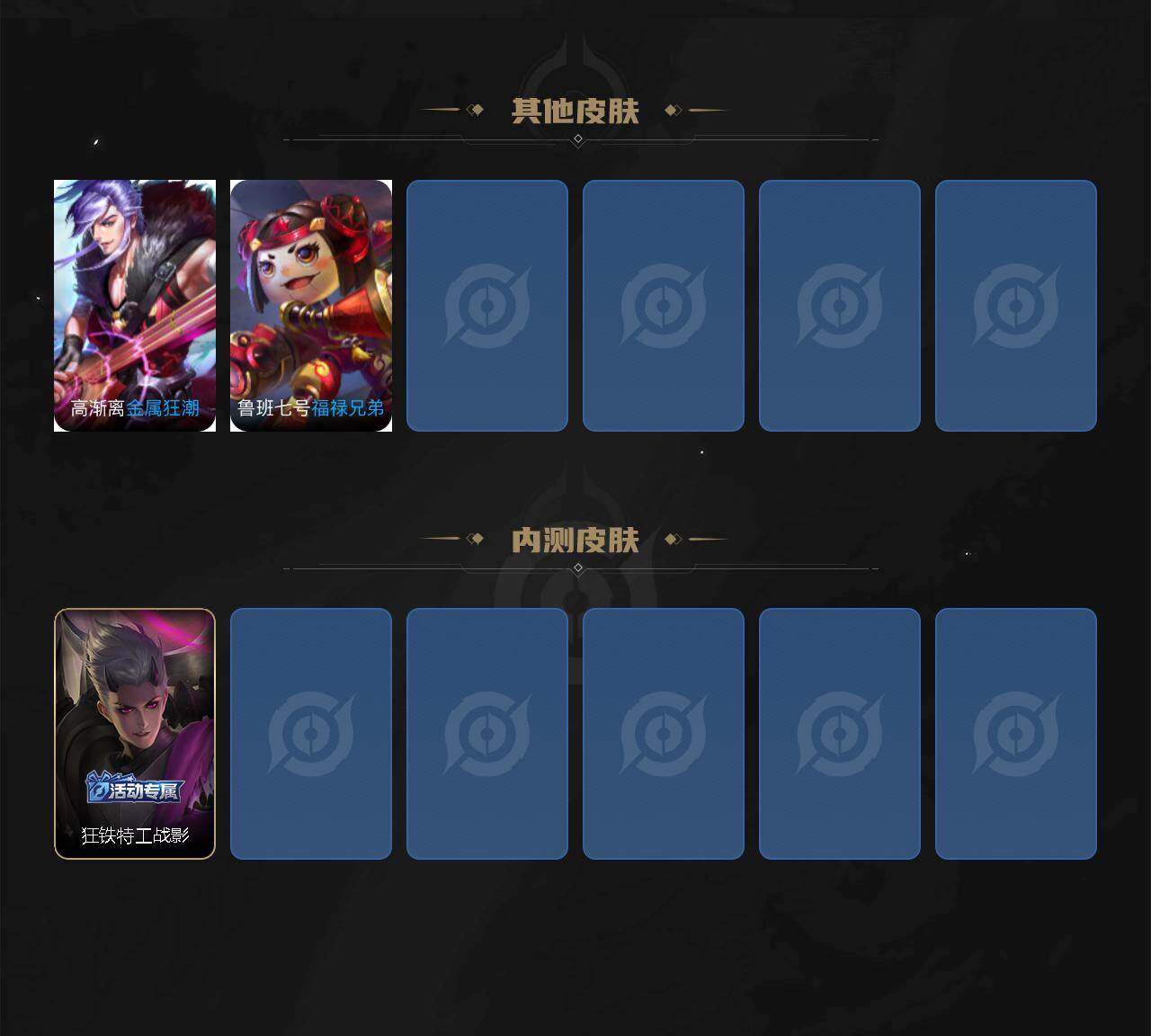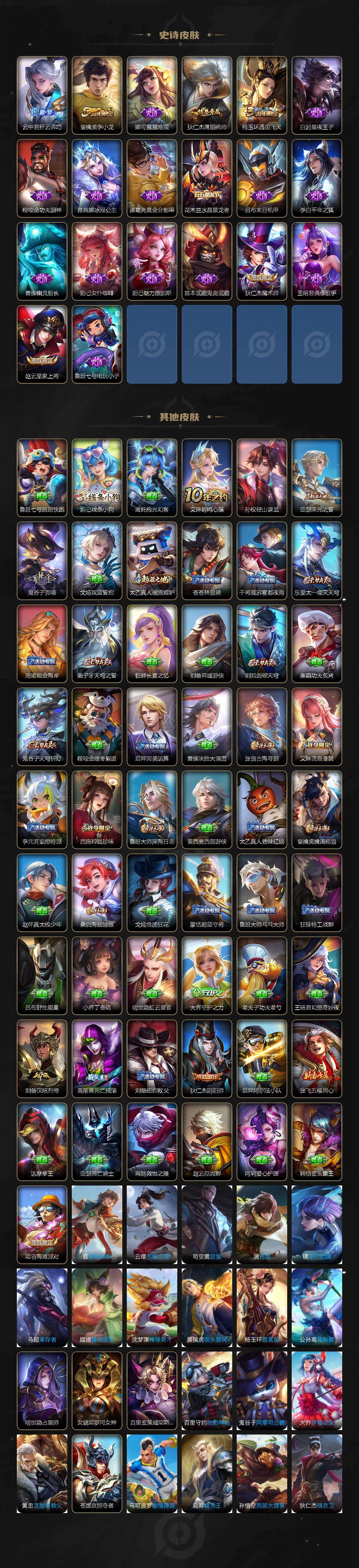 【限定皮肤】:姜子牙天穹之誓,狄仁杰阴阳师,赵云皇家上将,鲁班七号乒乒