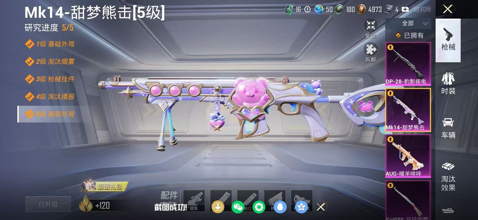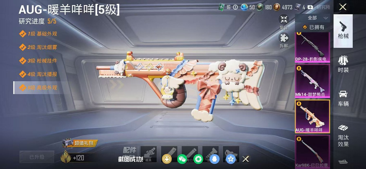 532-可二次【暖羊AUG满级 4特效枪 可秒换绑不用等】 苹果Q区-9411热力值-19套装-42枪皮 【4特效枪】 Mk14-甜梦熊击(5级) Kar98K-巳巳如意(5级) DP-28-豹影疾电(4级) AUG-暖羊咩咩(5级)【3热门】 M416-蓝色火焰 MG3-幻世战舞者