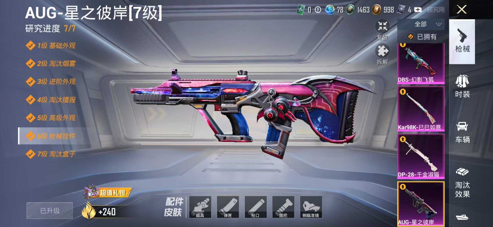 916-可二次【连体号满级AUG 3粉装8特效枪带王者275皮肤1典藏10传说