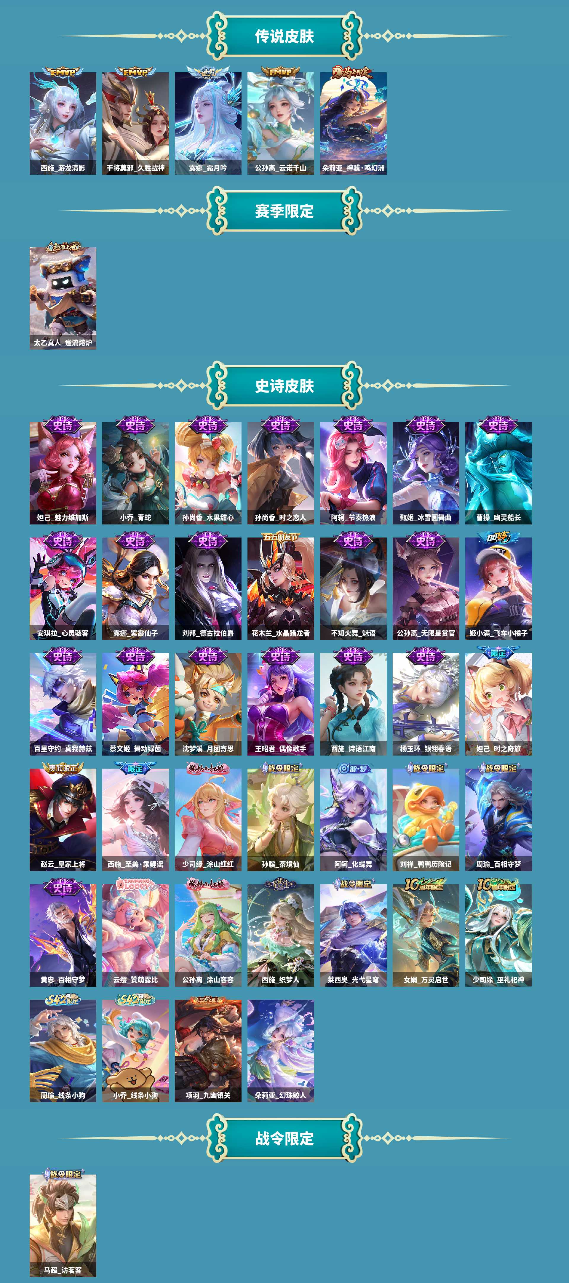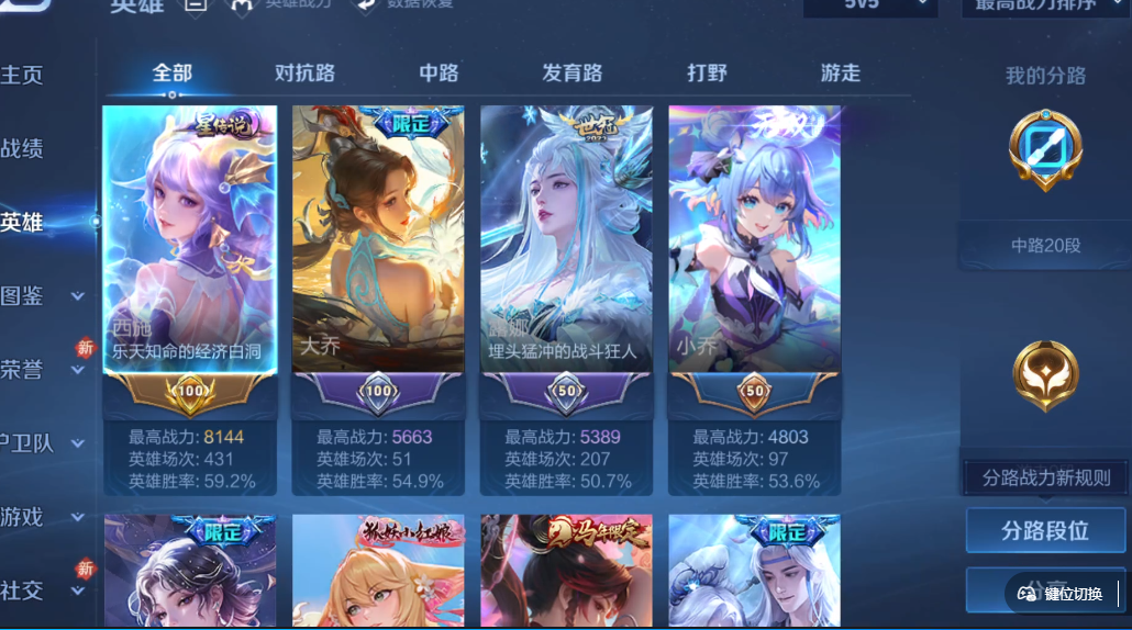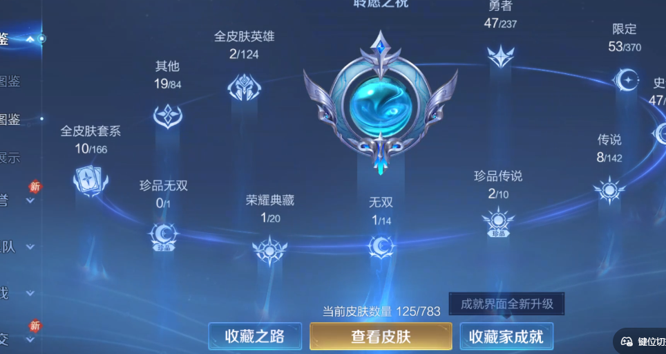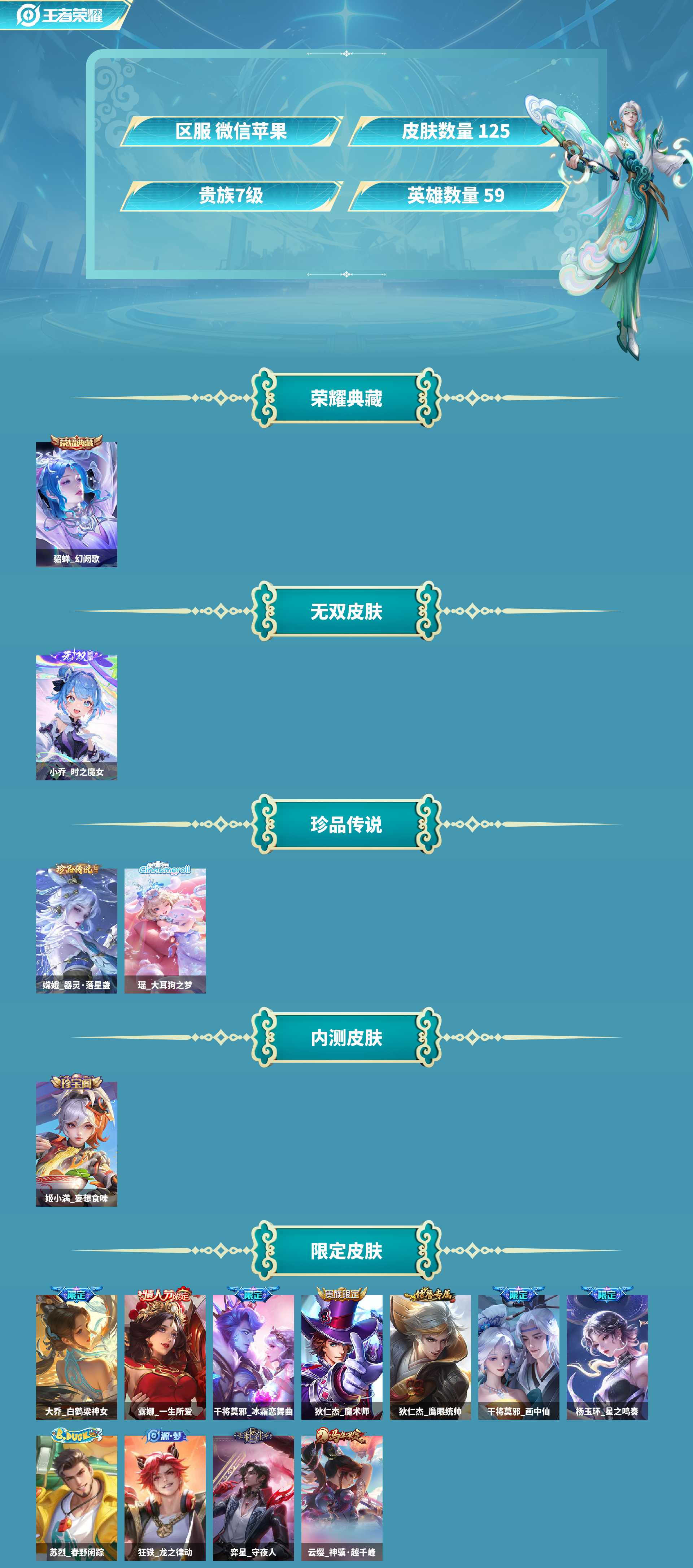 仙女号皮肤数125无双皮肤数1传说皮肤数8珍品传说皮数2史诗