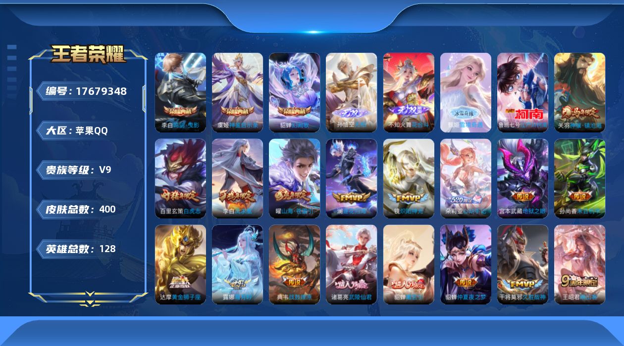 646-[17679348]可二次贵族9-400皮3典藏31传说3无双1珍品传说苹果手Q97区400皮3典藏31传说3无双1珍品传说V9 营地ID438275080非凡王者【珍品传说皮肤】:江户川柯南【无双皮肤】:雪境奇遇,无相,花合斗【荣耀典藏】:神鉴启示录,幻阙歌,鸣剑·曳影【优质限定皮肤】:山海·苍雷引,白虎志,凤求凰,至尊宝【传说皮肤】:战鼓燎原,黄金狮子座,神骥·镇沧海,黄金射手座,绛天战甲,炽阳神光,时之恋人,逐花归海,映山客,猫影幻舞,心动手记,启示之音,金乌负日,曦玄引,霜月吟,