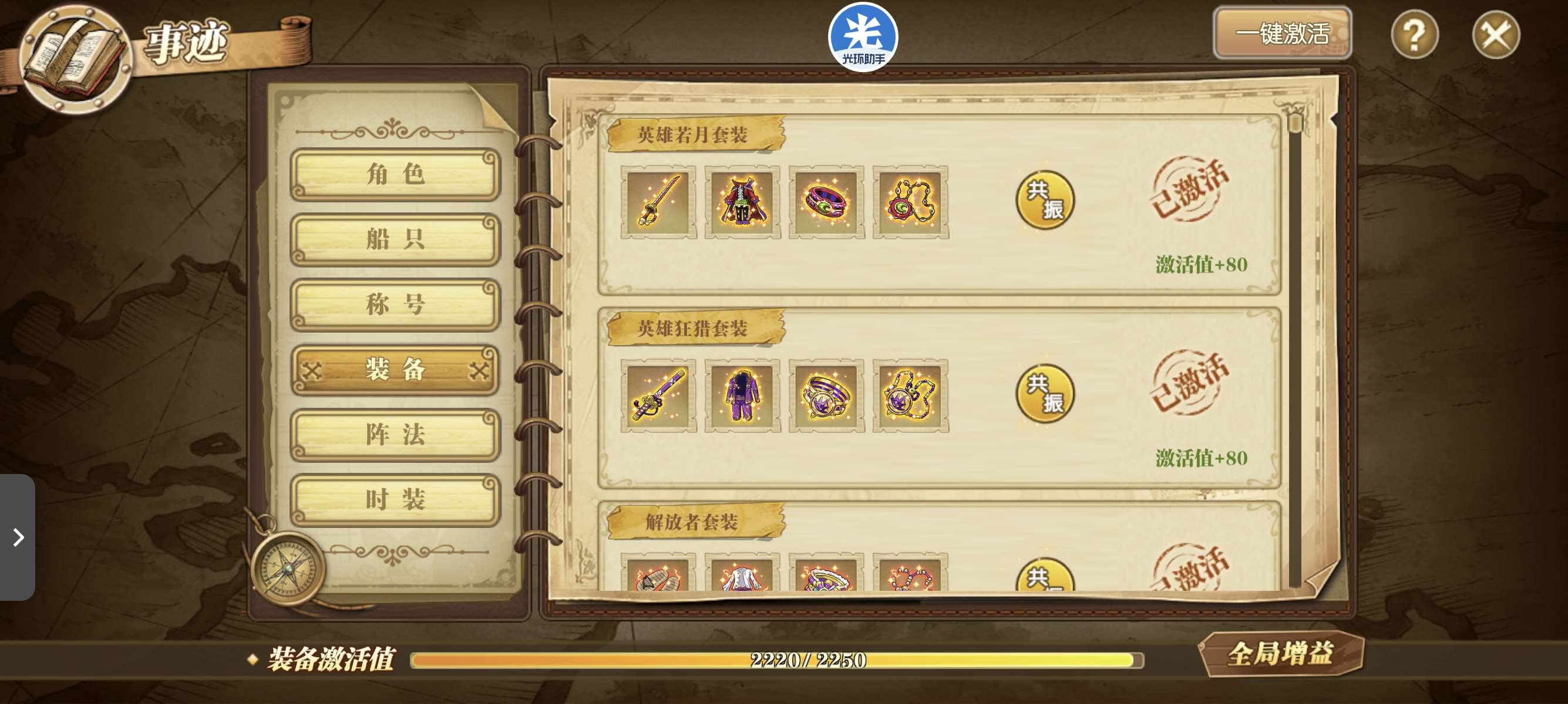 共振暗焰一套+25狂猎+30解放者武器戒指+25衣服 项链+25若月武器+30若月项链晋升过全部共鸣