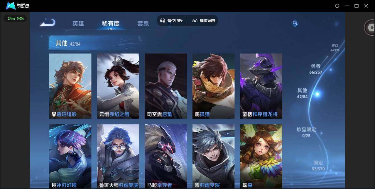 实名: 可修改 贵族等级: V7 英雄数: 126 皮肤数: 159 荣耀水晶