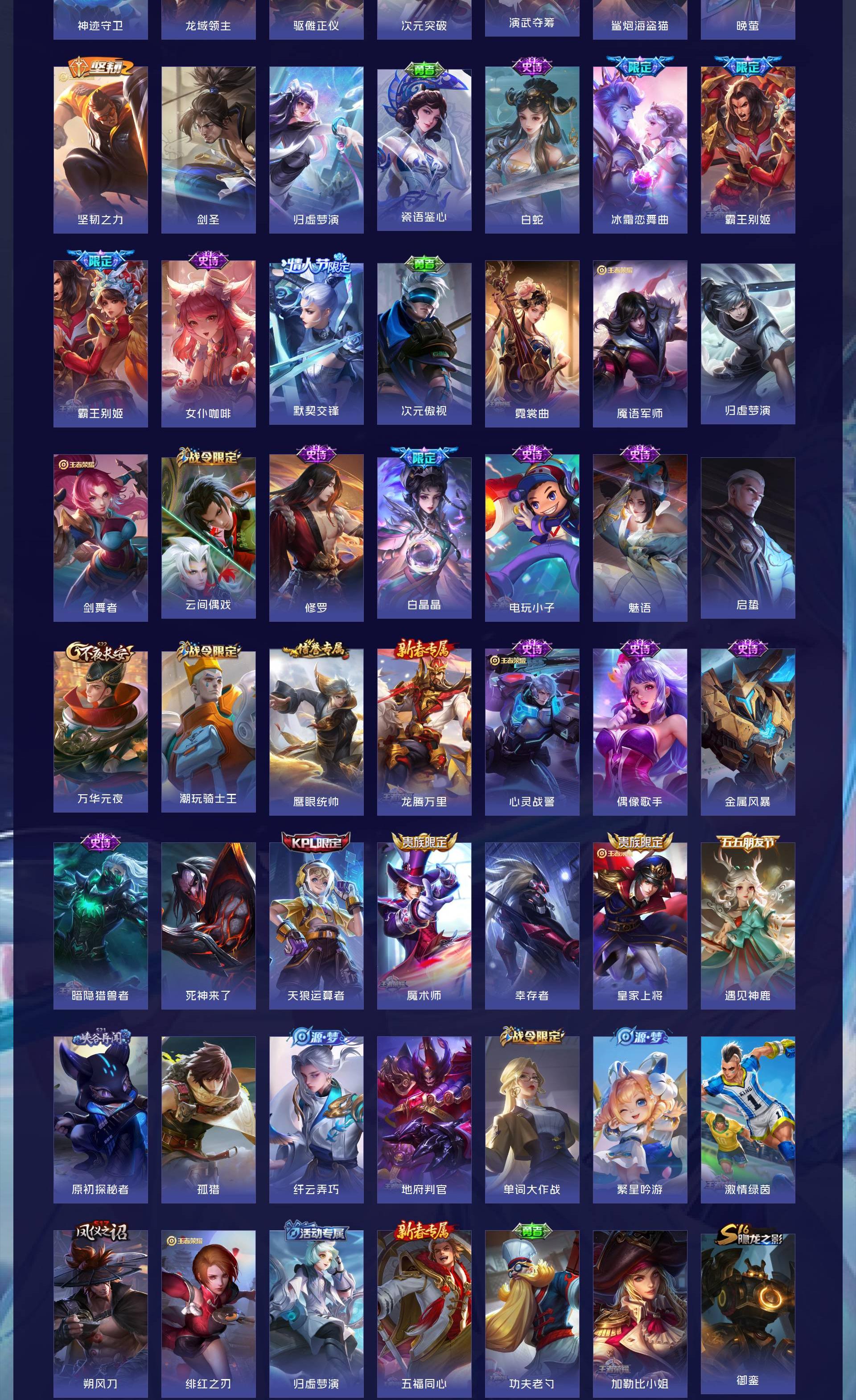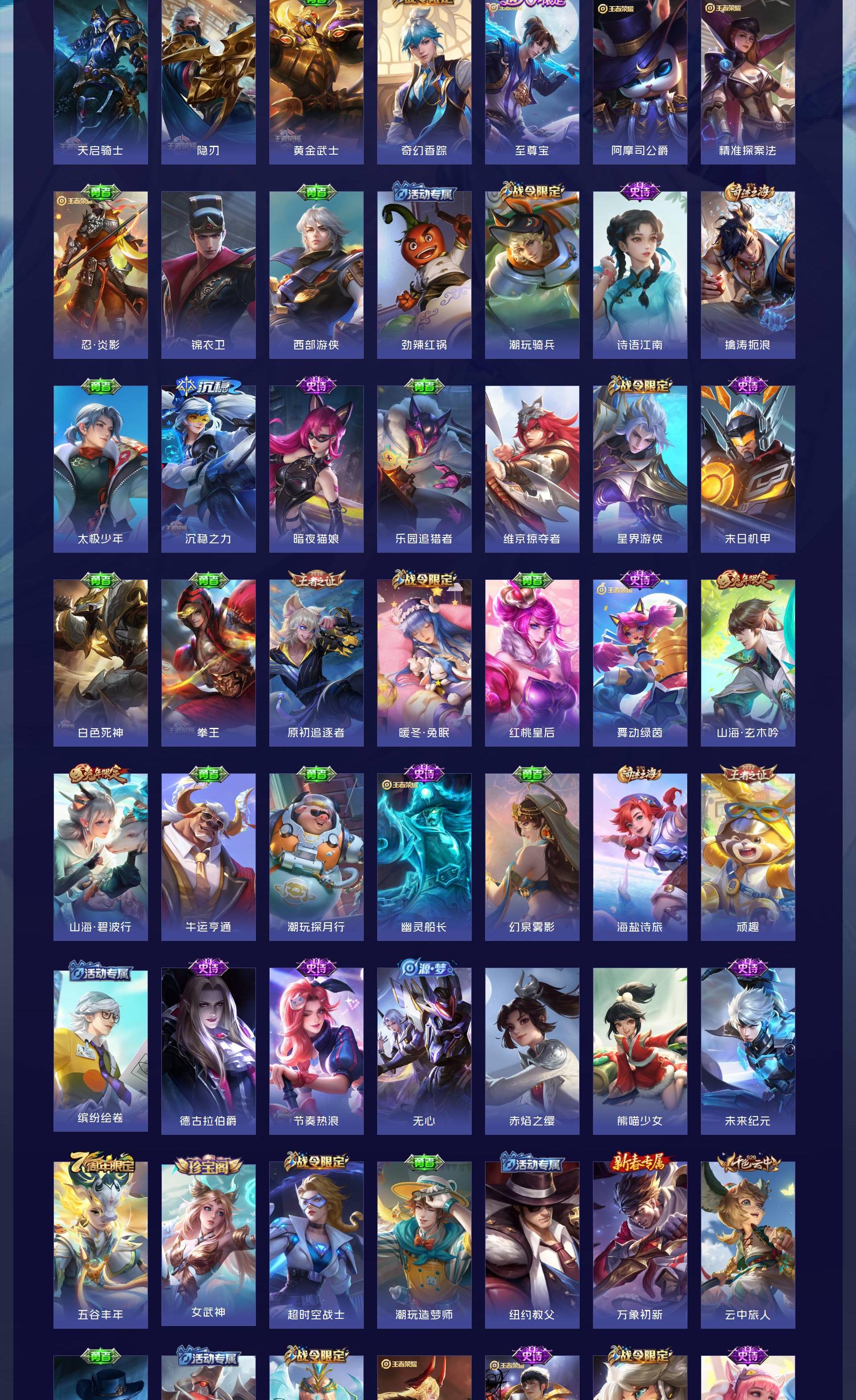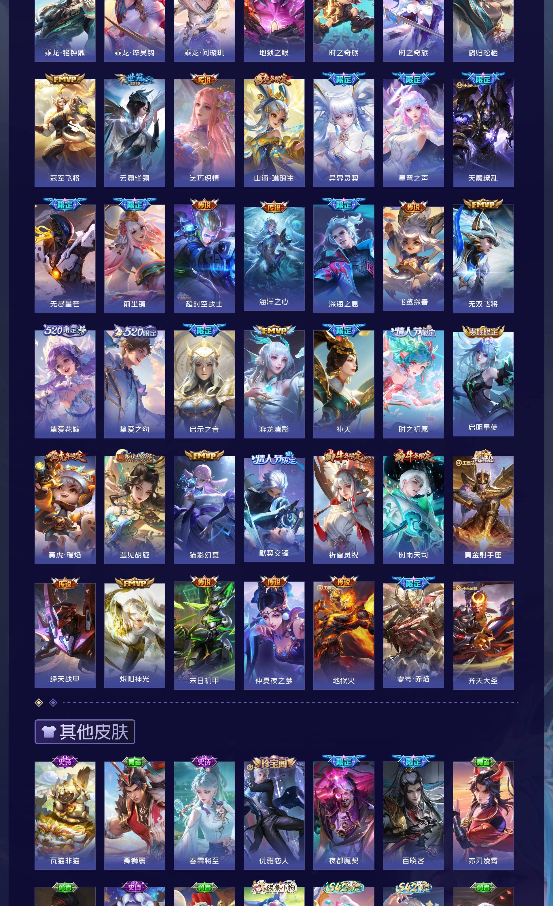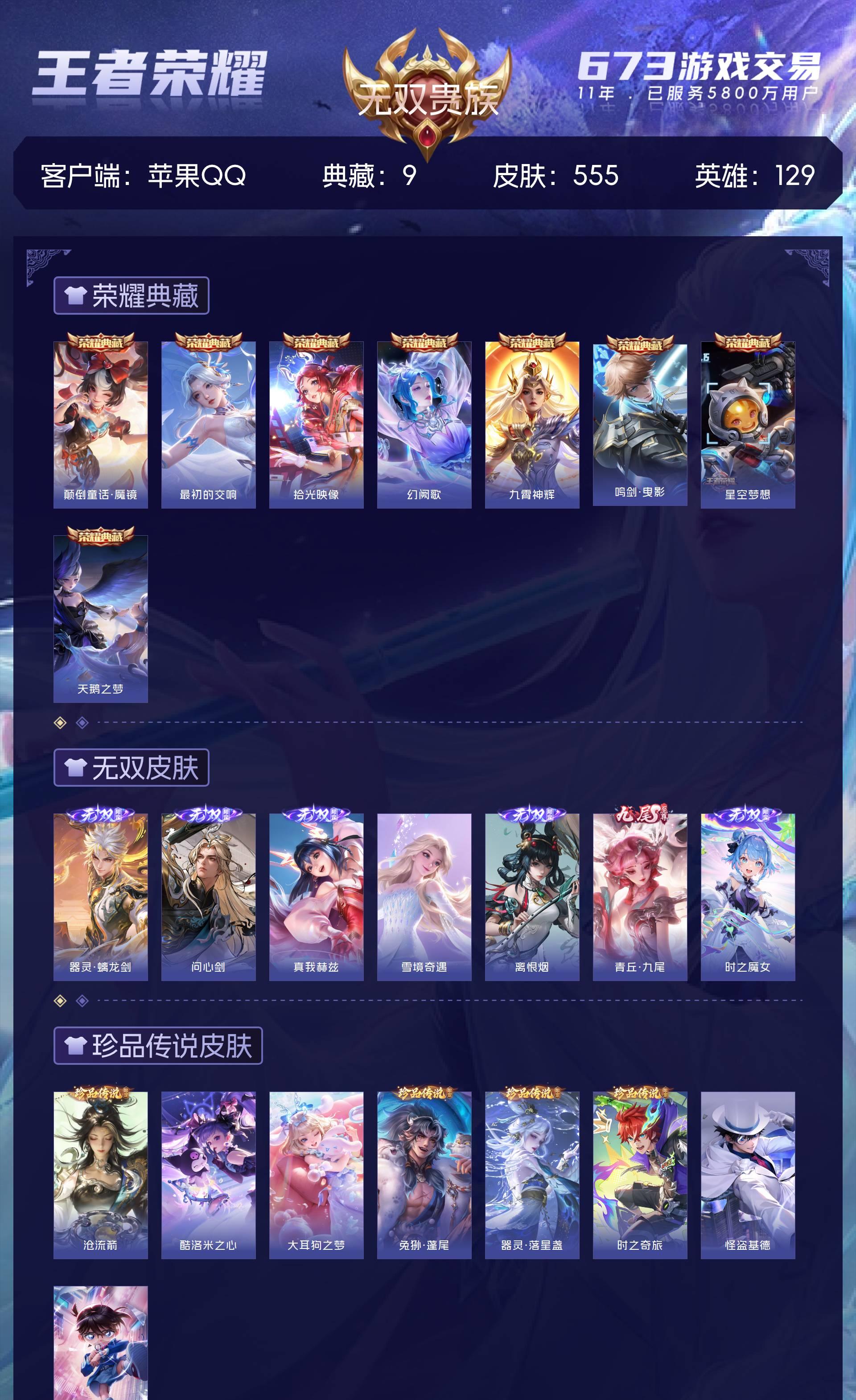 无双贵族 皮肤555 英雄129 荣耀王者 荣耀典藏9 无双皮肤7 珍品传说8 传说85 其他皮肤453