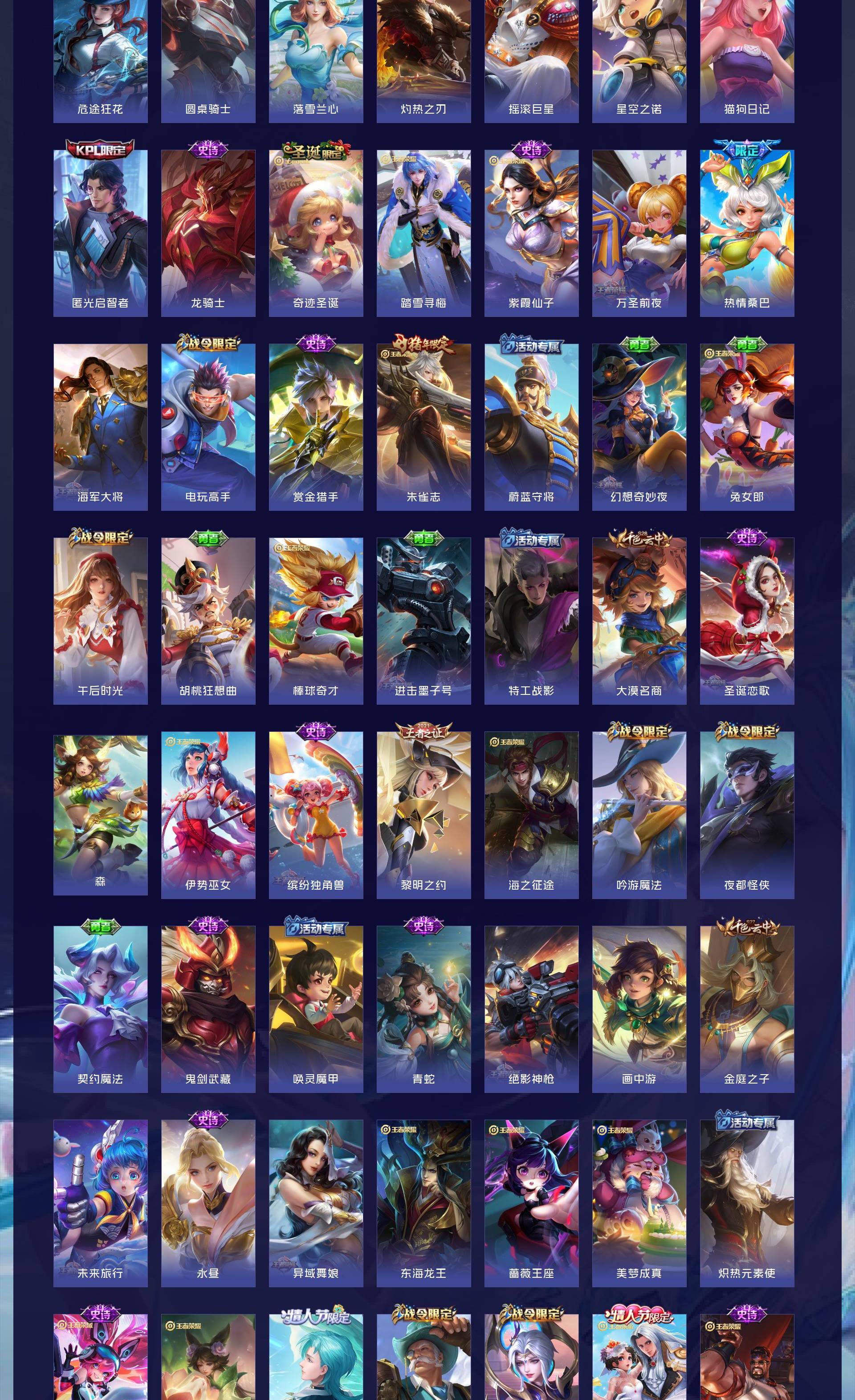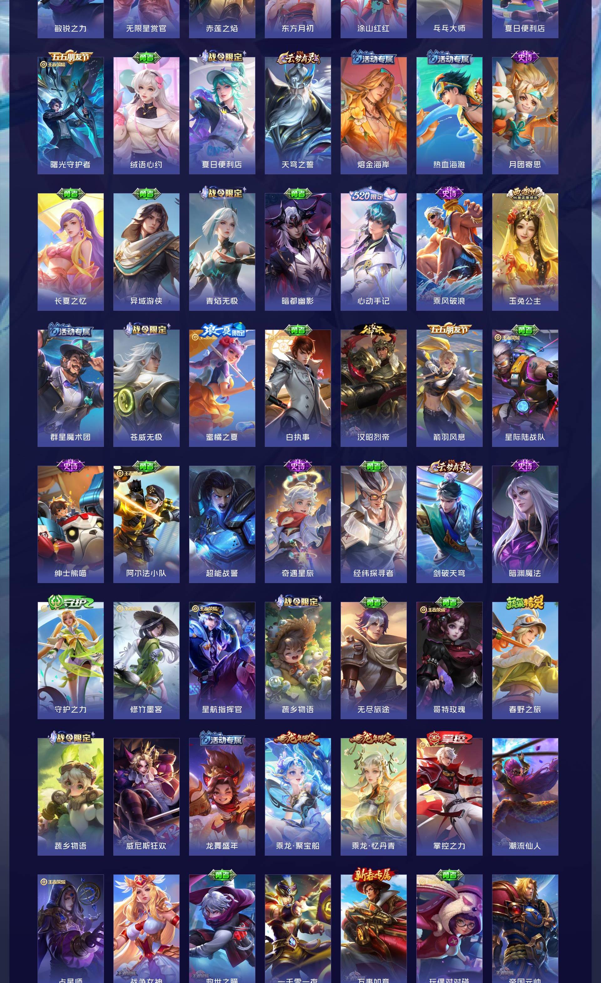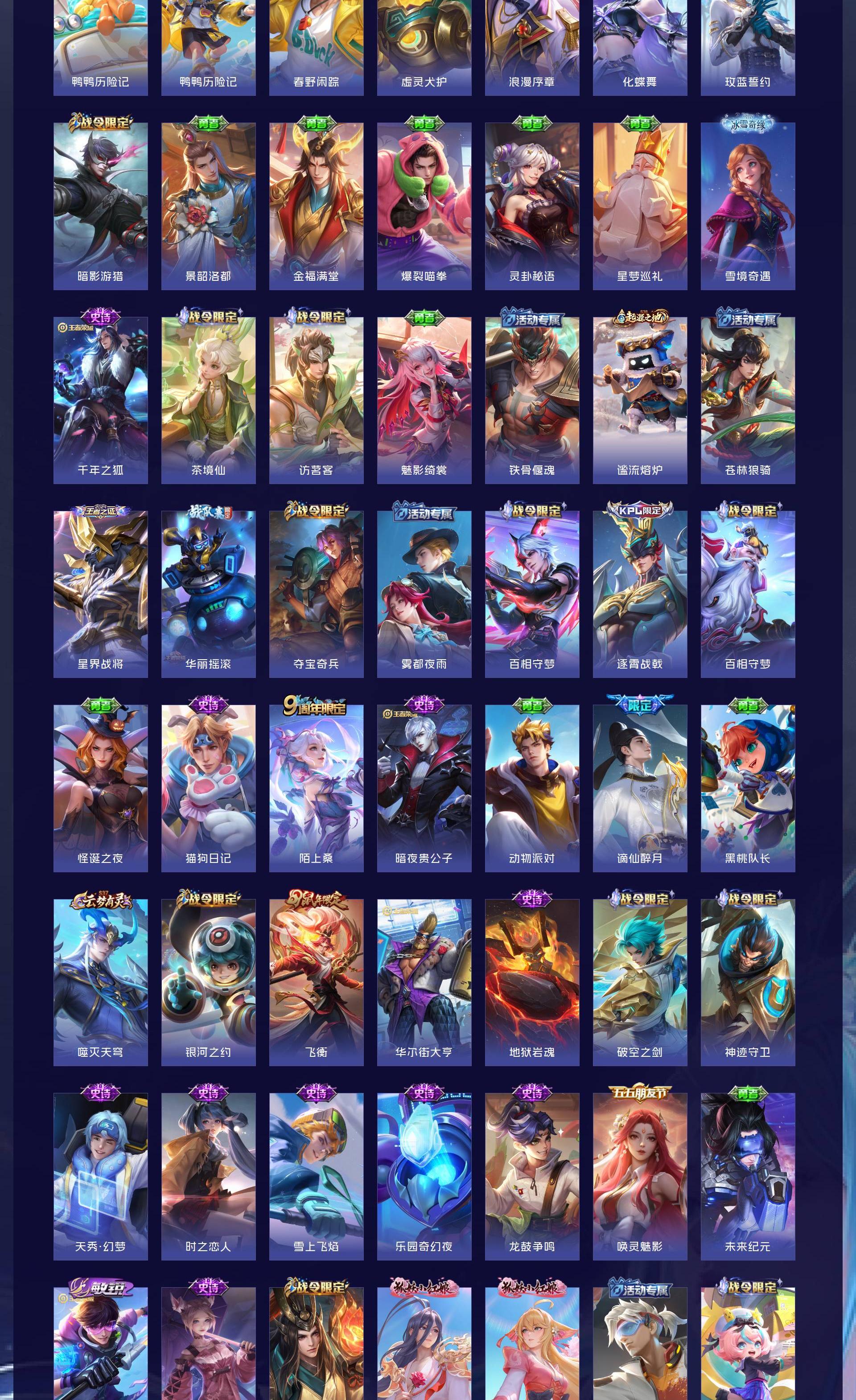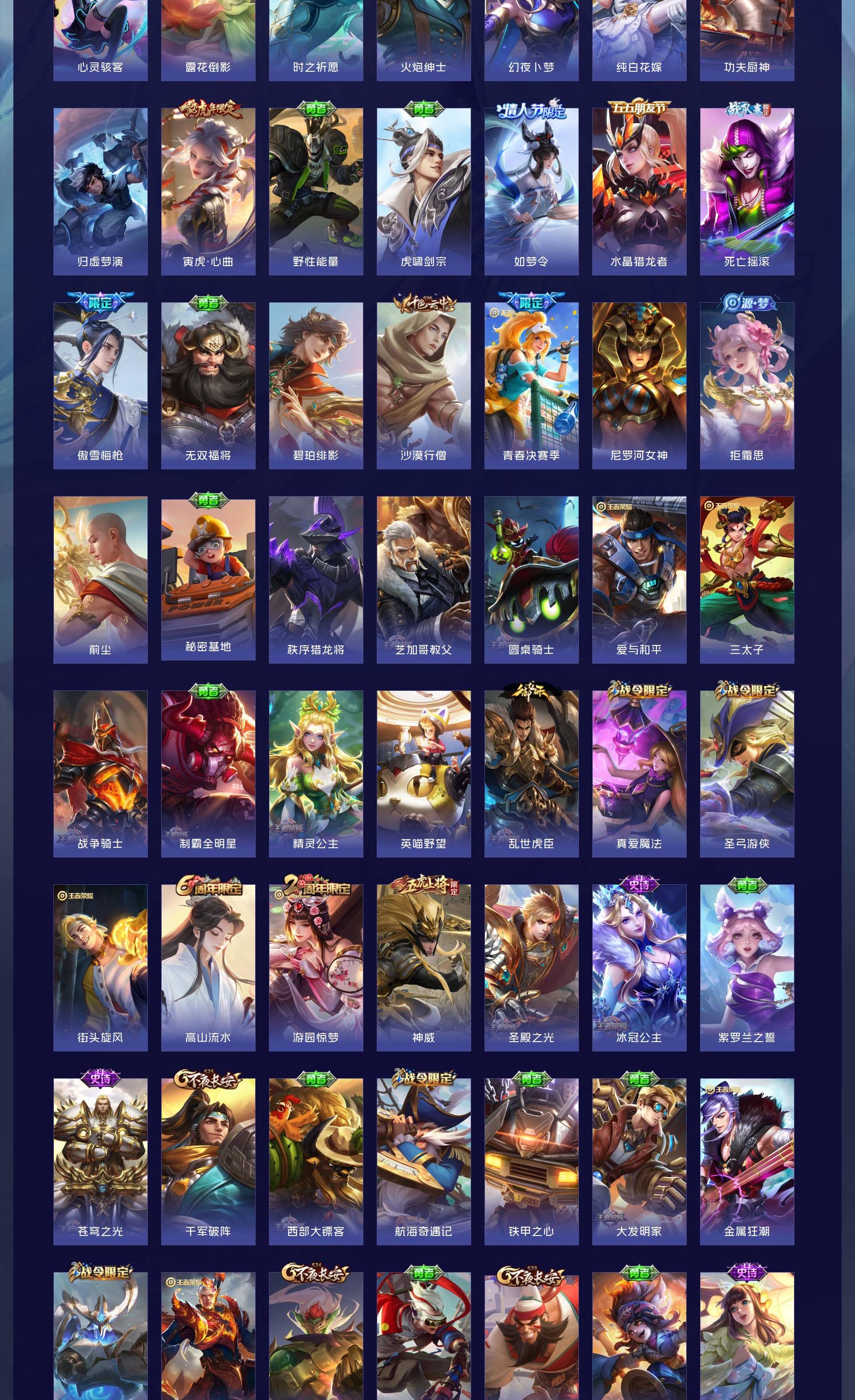 无双贵族 皮肤555 英雄129 荣耀王者 荣耀典藏9 无双皮肤7 珍品传说8 传说85 其他皮肤453