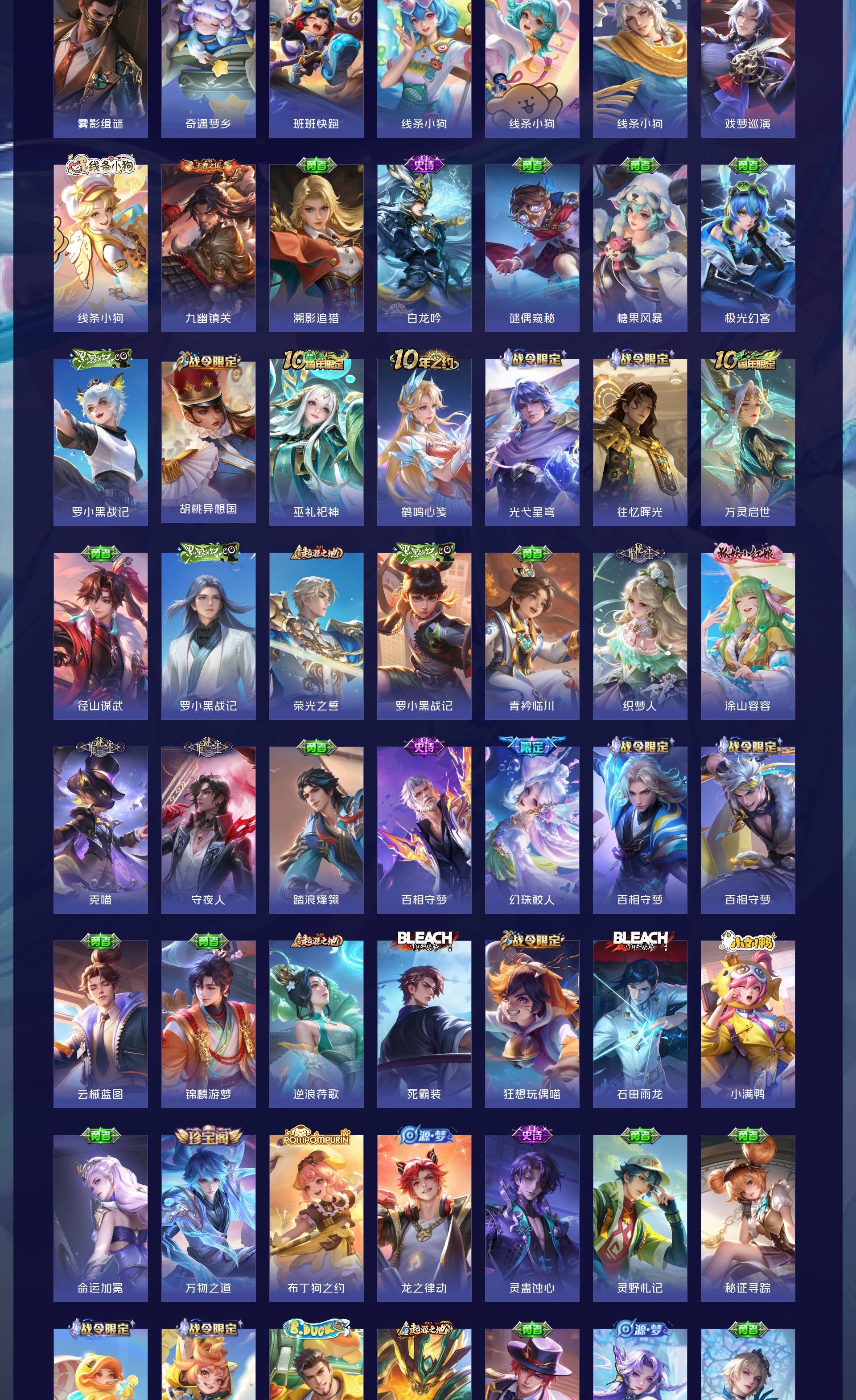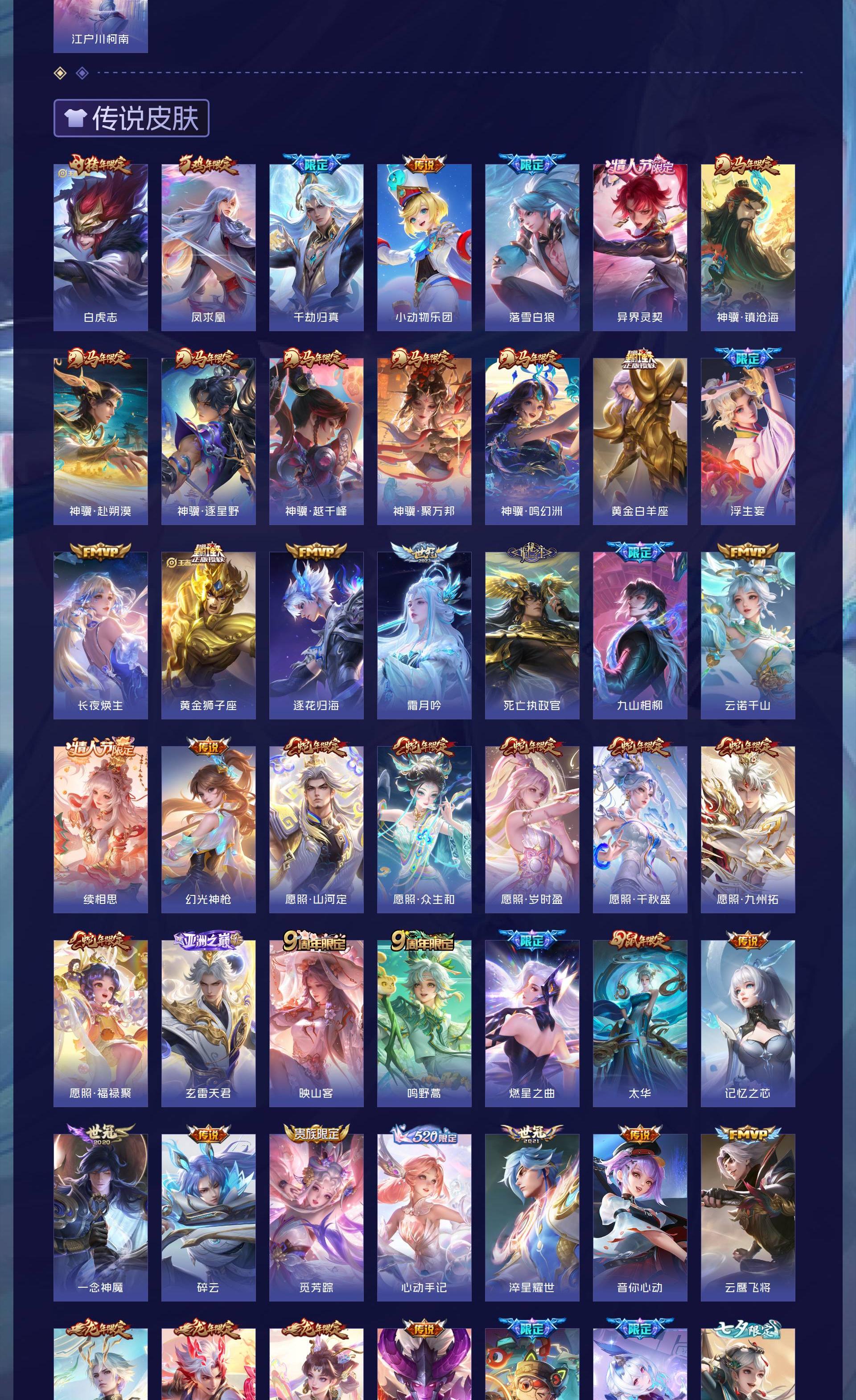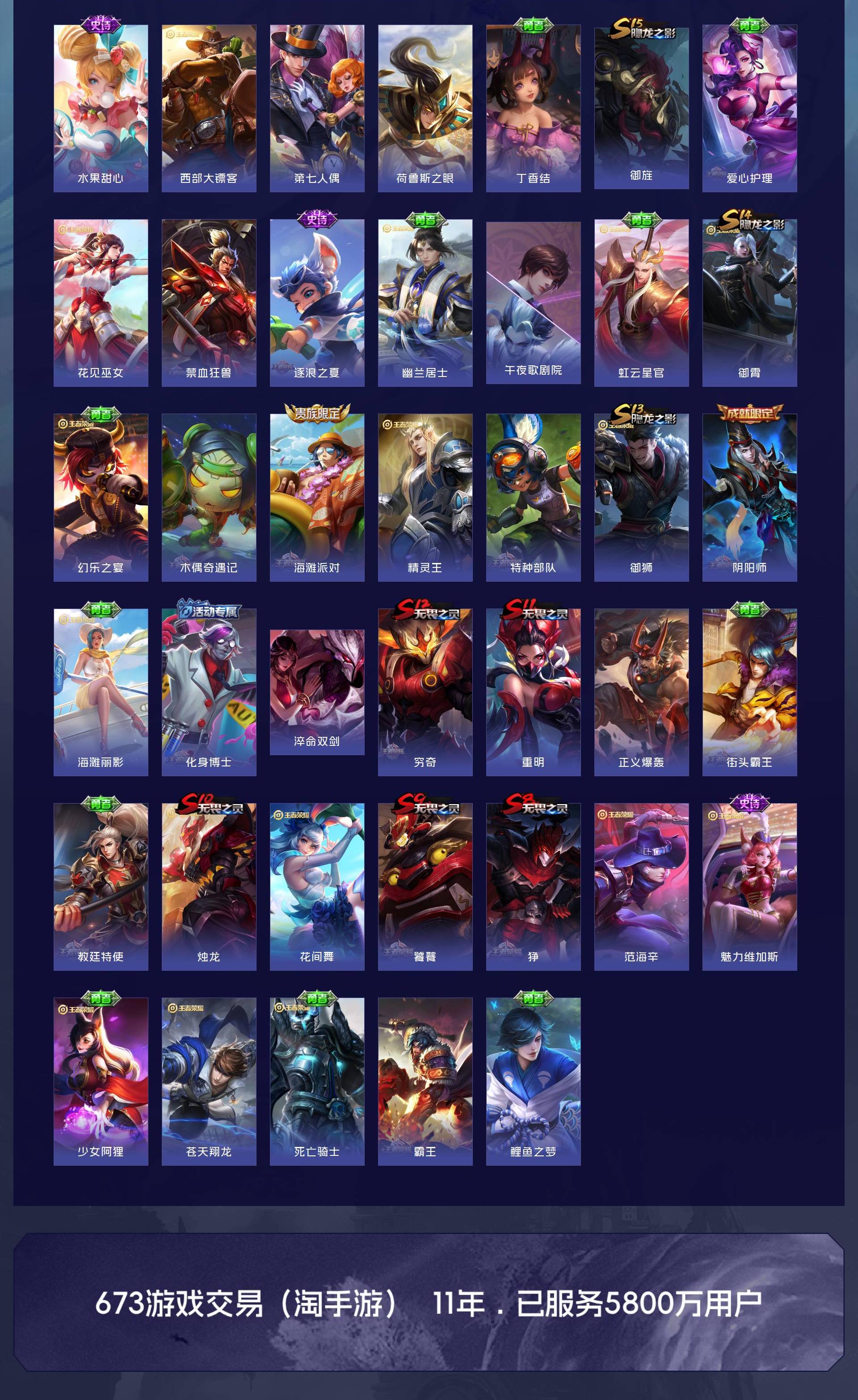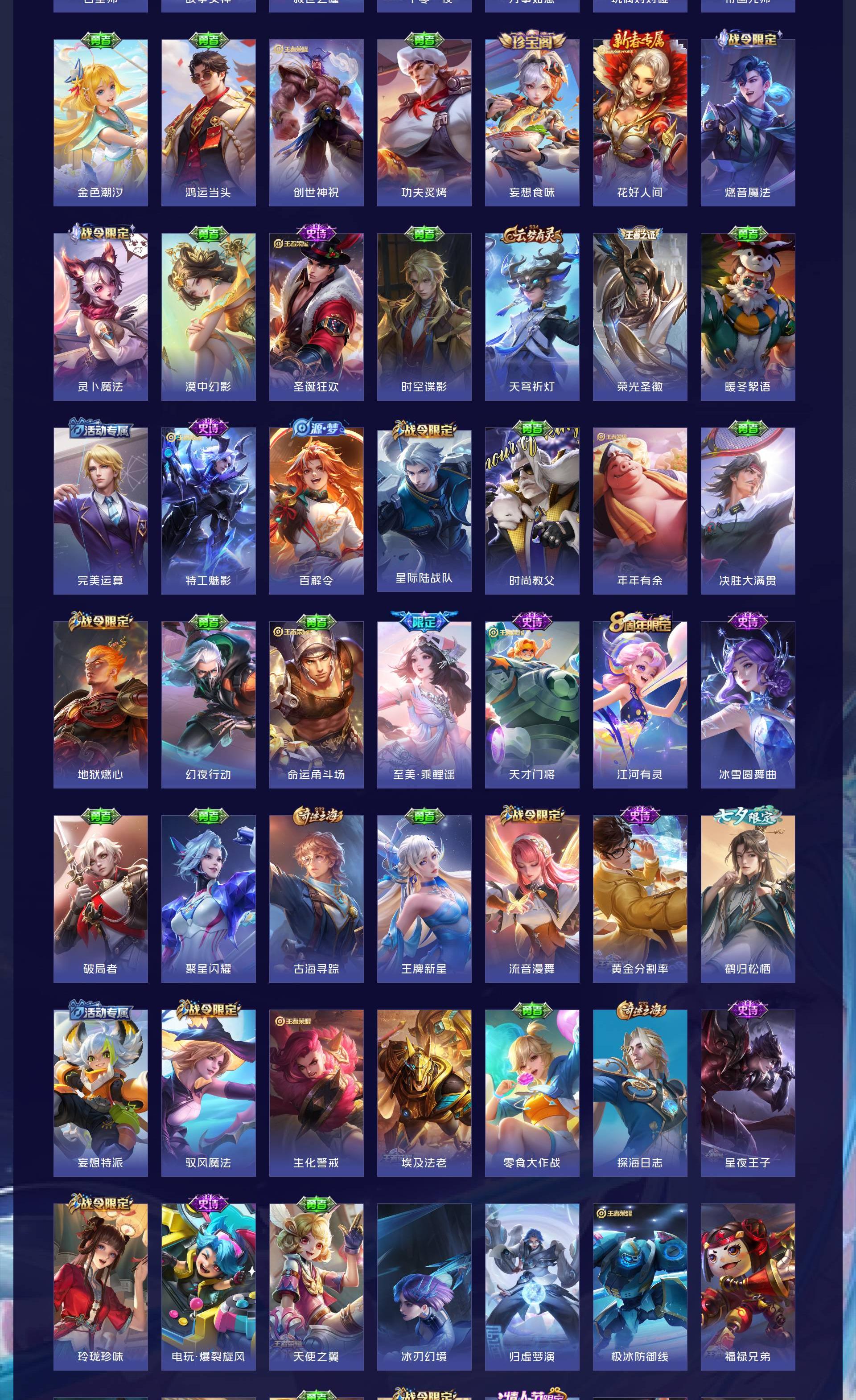 无双贵族 皮肤555 英雄129 荣耀王者 荣耀典藏9 无双皮肤7 珍品传说8 传说85 其他皮肤453