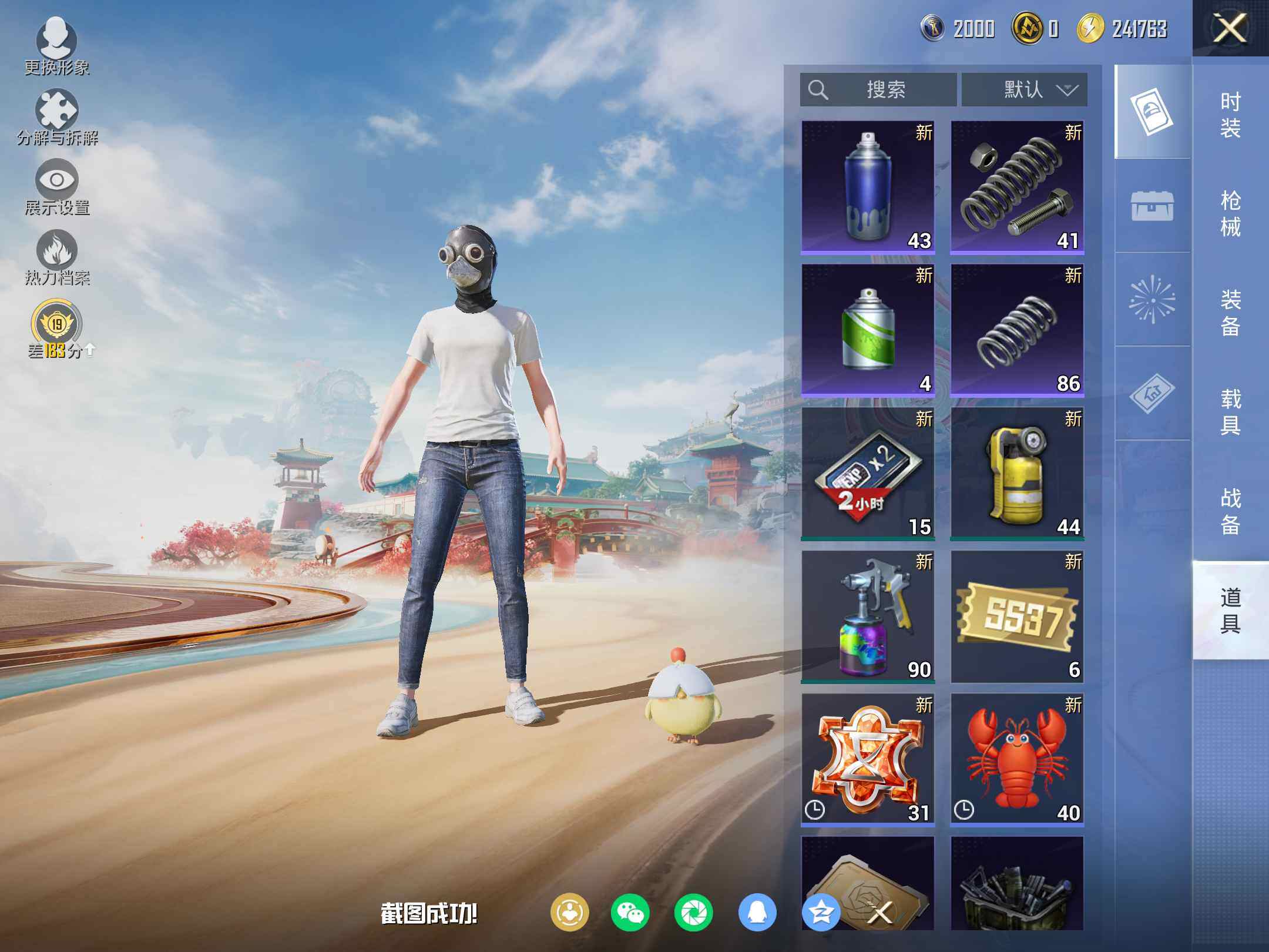0粉装-4特效枪-0载具-1粉色飞行器-10532热力值-1王牌印记-24套装-44枪皮