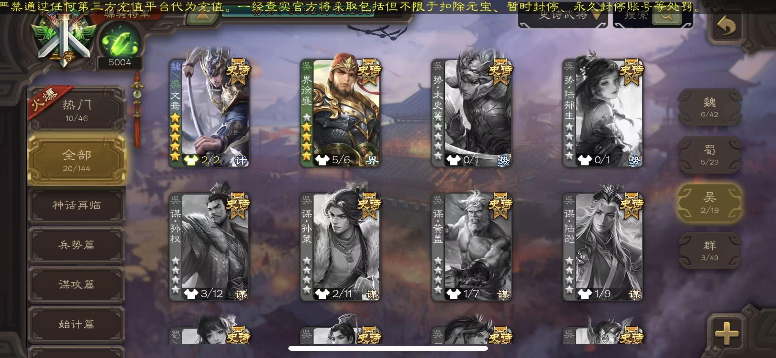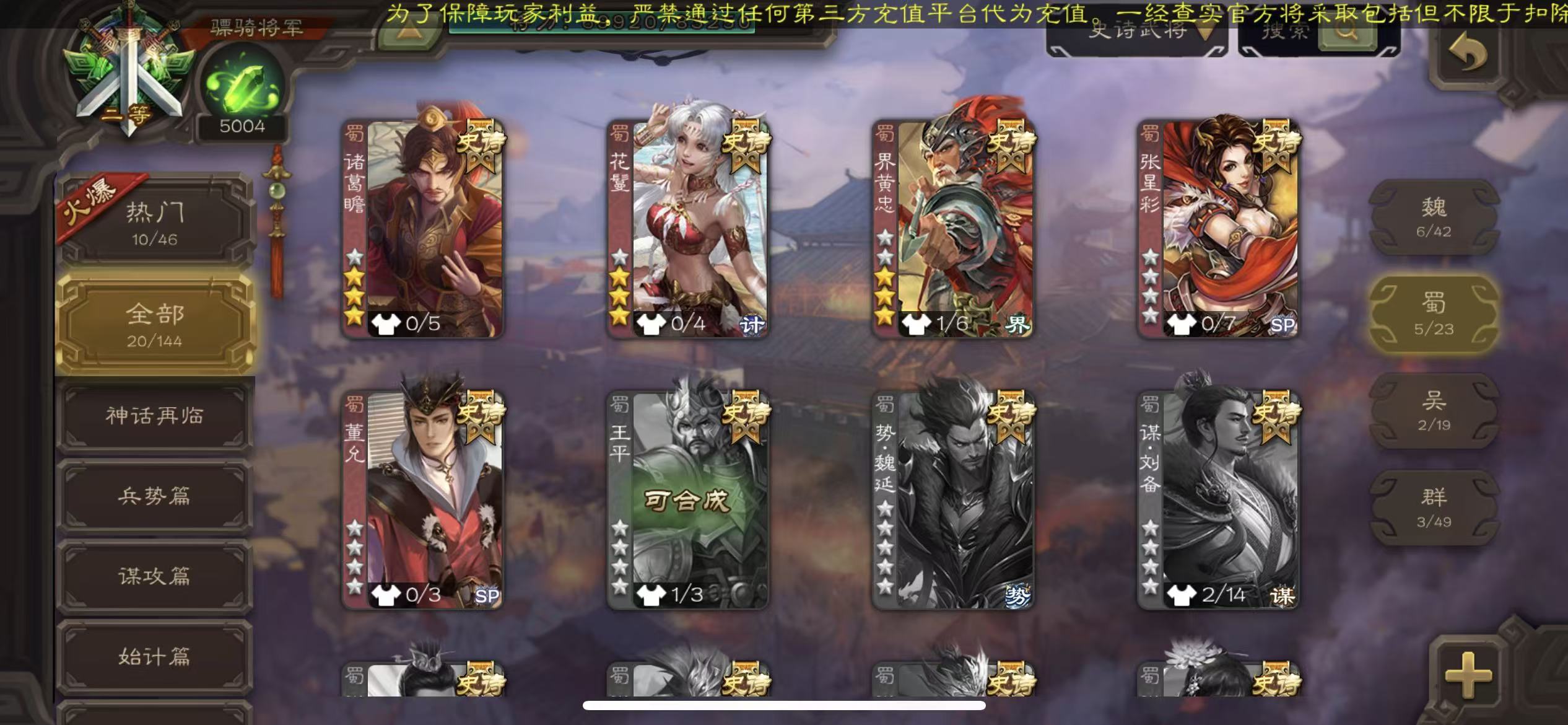 史诗武将数量: