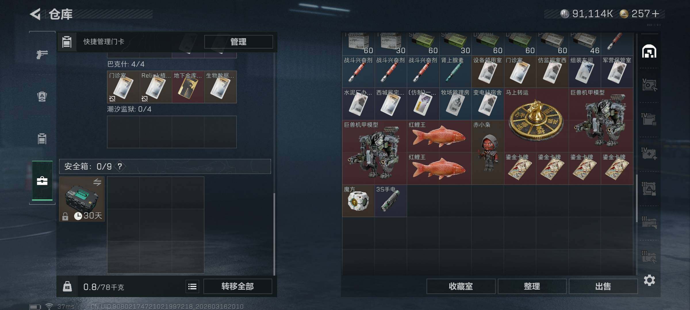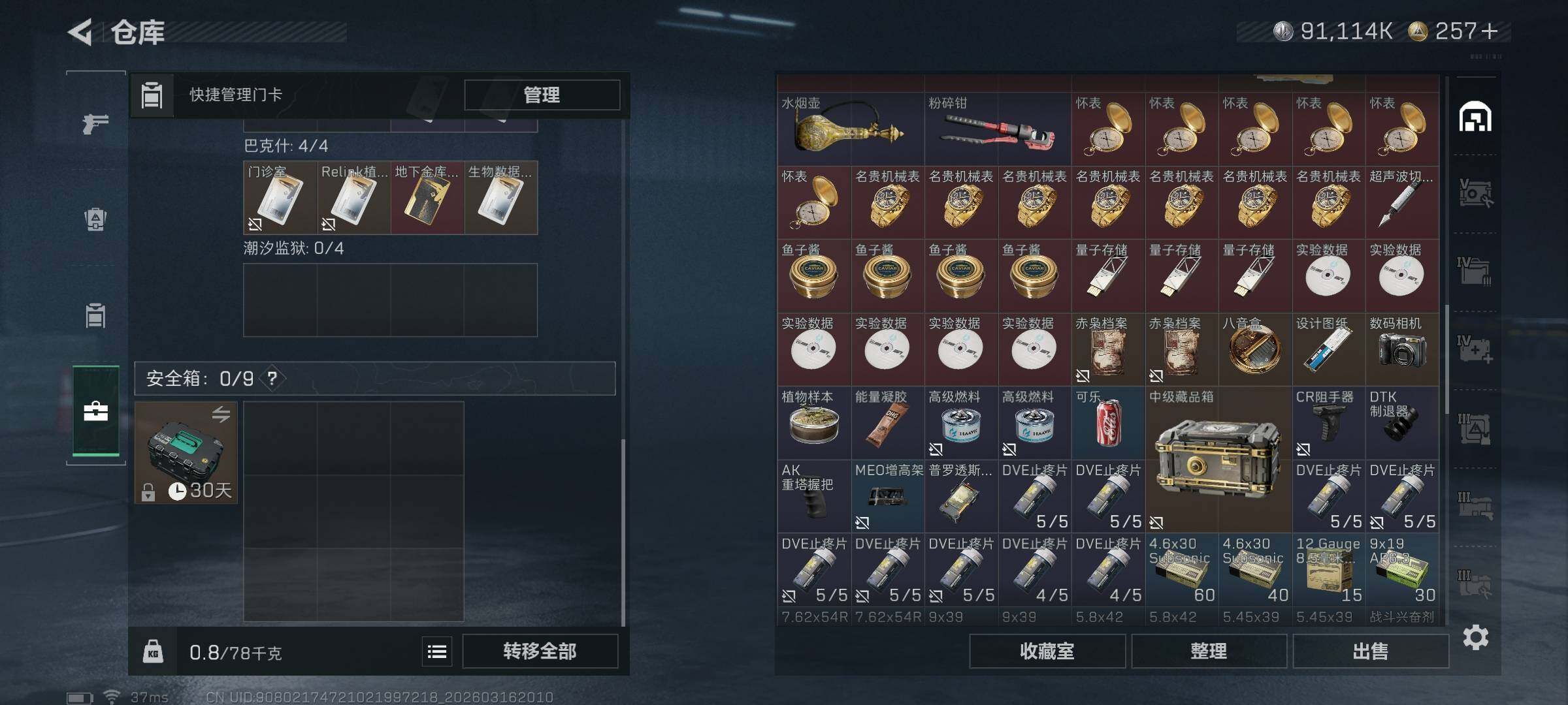 总资产(M):327M/哈夫币(K):91114K/传说枪皮数:10/全面战场等级:1_段位:无段位/烽火地带等级:60_段位:黑鹰