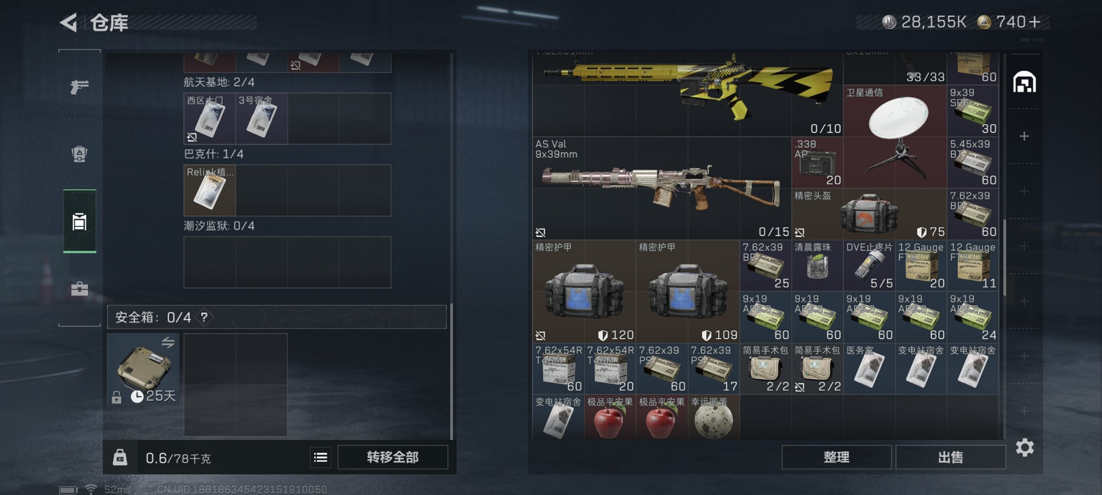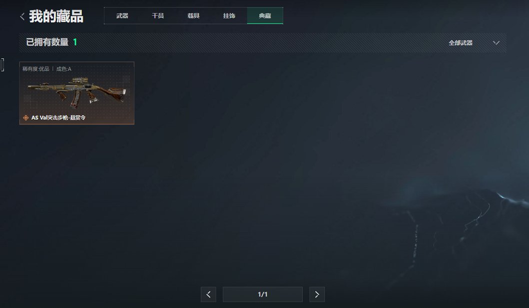 【优品A AS Val突击步枪-悬赏令 红皮骇爪 30颗AW子弹】总资产61M,哈夫币28,155K,行动等级:60,传说典藏数量:1,干员红皮数量:1,仓库等级:7,训练中心等级:6,靶场等级:4,干员皮肤:2,枪皮:55