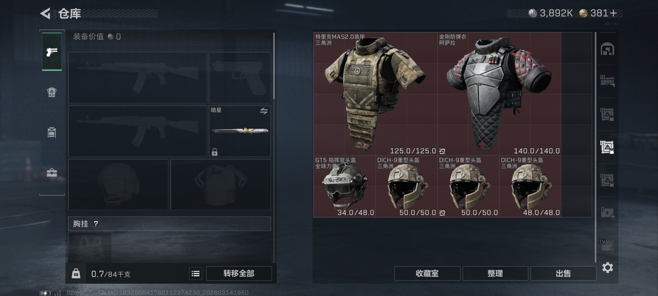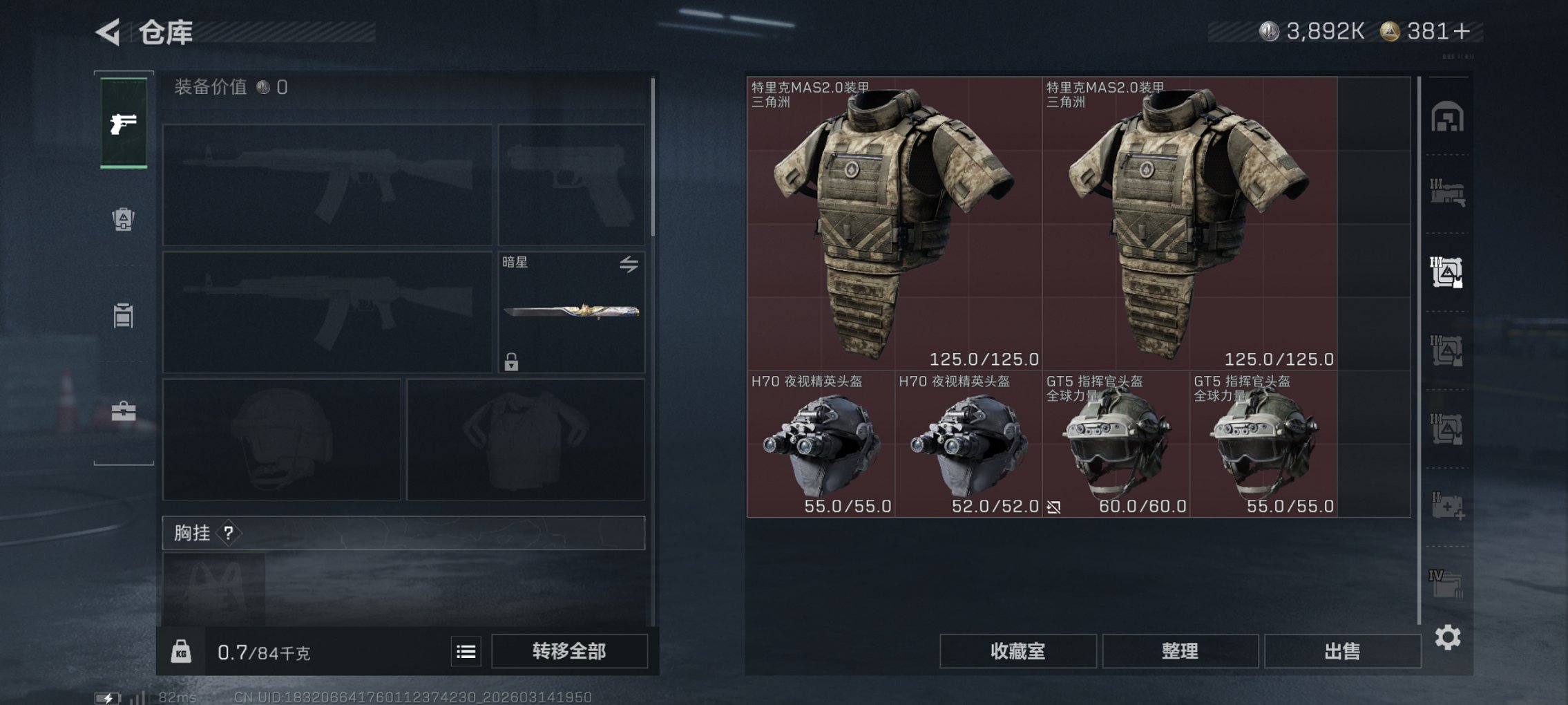 S8赛季顶级安全箱 38颗AW子弹 安全箱皮肤零号玩家 总资产96M,哈夫币3,892K,行动等级:60,近战数量:3,仓库等级:8级,训练中心等级:7级,靶场等级:6级,干员皮肤:1,枪皮:176