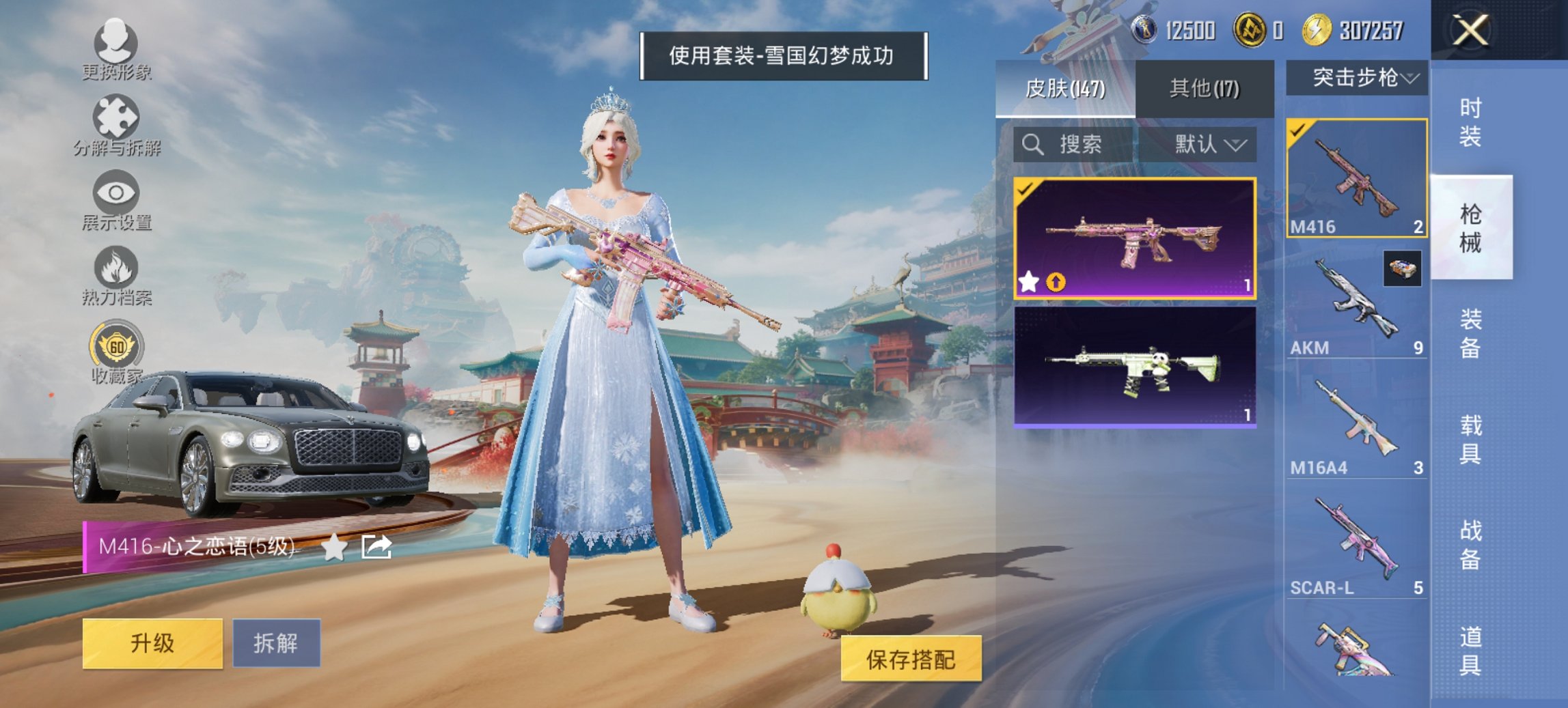 【战神框冰雪女王11特效枪8粉装1载具 秒换绑不用等】 安卓Q区-52196热力值-历史最高段位:无敌战神-104套装-147枪皮 【1载具】 宾利飞驰(布罗德盖棕双色)【8粉装】 雪国幻梦(冰雪女王) 数码大师 恐龙拽拽 莲影清波 傲傲奶龙 闲梦青缨 灵感创作师 角色-智耀战神【11特效枪】 M416-心之恋语(5级) M24-莲影清波(2级) Mk14-闲梦青缨(5级) SCAR-L-梦幻火箭(5级) UMP45-启明星(5级) M762-激战未来(4级) AUG-星之彼岸(5级) AKM-