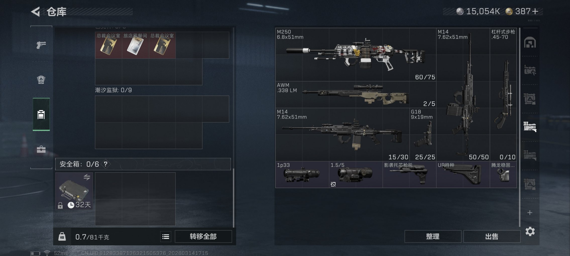 【暗星 S8赛季高级安全箱 总资产81M,哈夫币15,054K,行动等级:60