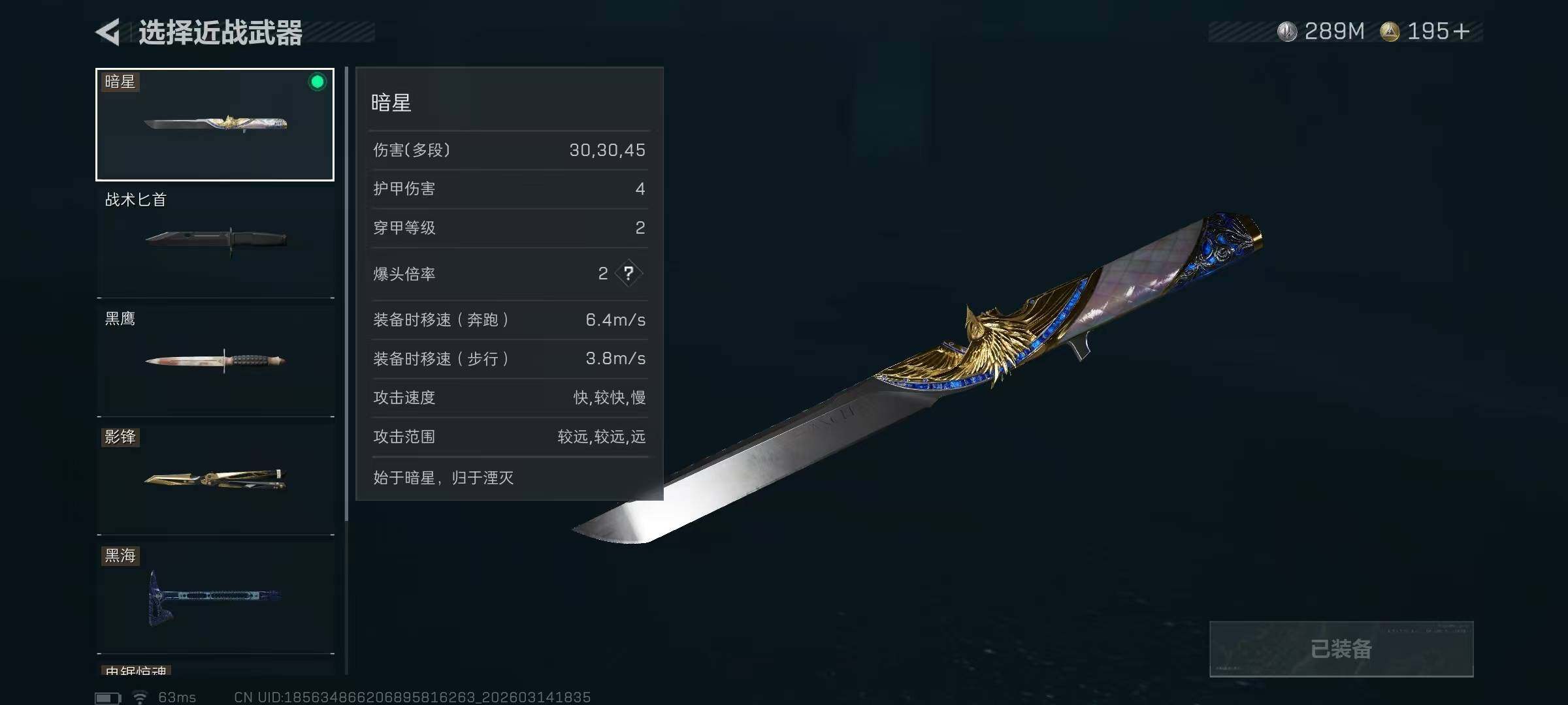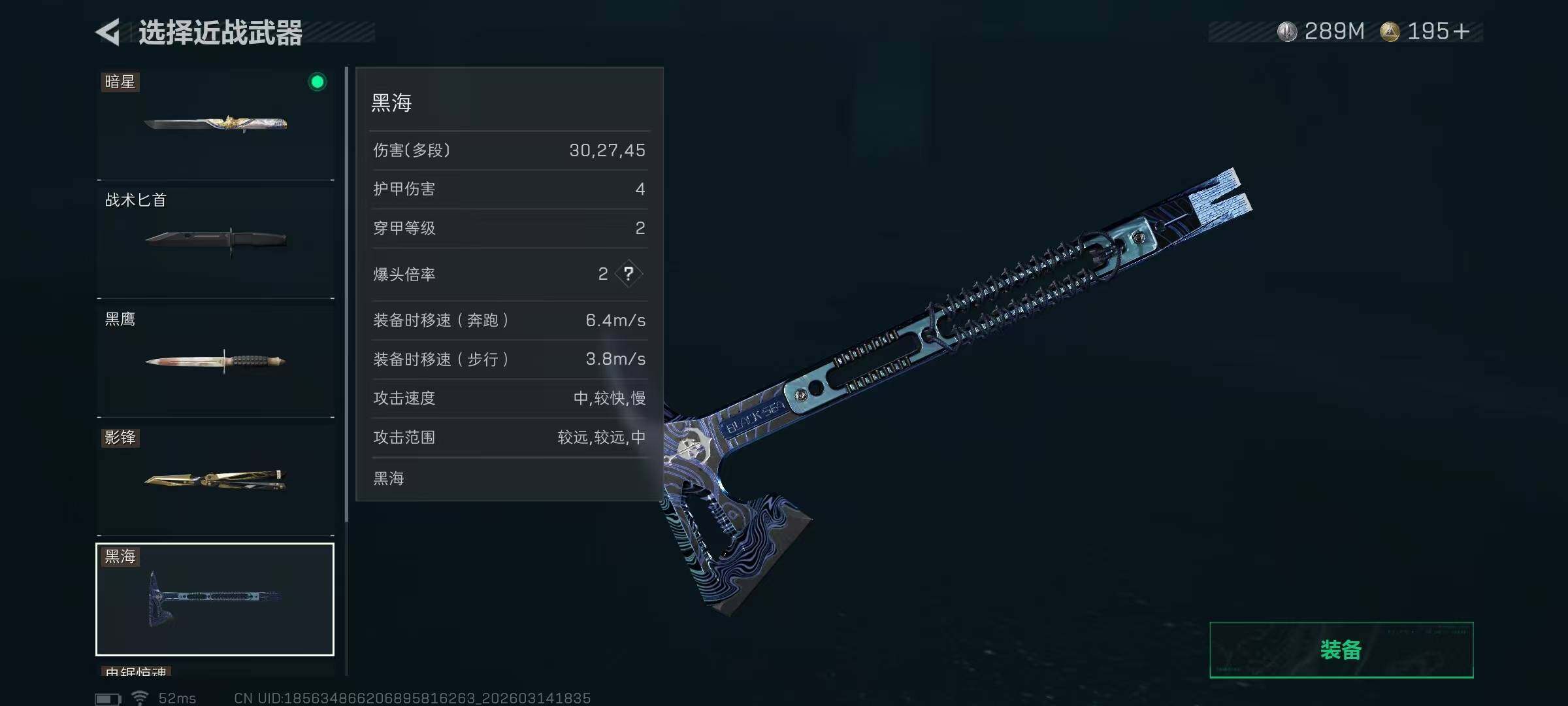【近战皮肤】:近战-暗星,近战-黑海,近战-影锋,近战-电锯惊魂,近战-处刑者1级,近战-黑鹰