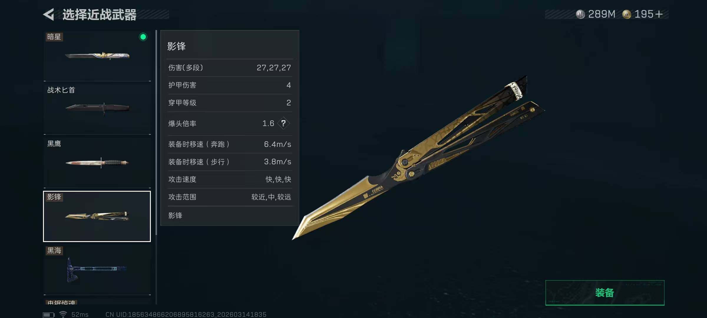 【SJ1397】【满体满负影锋黑海暗星/纯币289M带324发AW子弹】60级