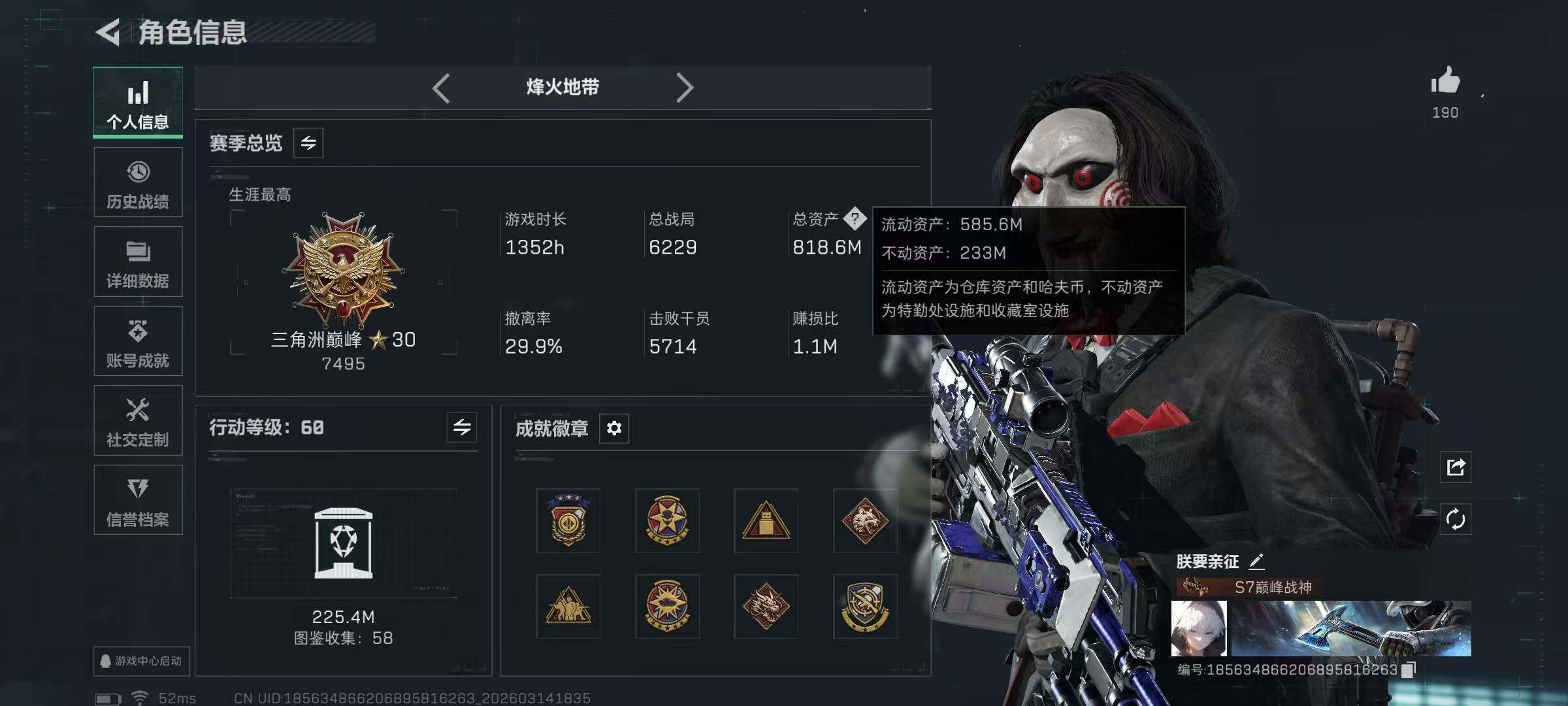【SJ1397】【满体满负影锋黑海暗星/纯币289M带324发AW子弹】60级/总资818M/流资585M/195点卷/刀皮(影锋+黑海+电锯惊魂+处刑者+暗星)红狼(电锯惊魂)/10级仓库7级体力7级负重3级潜水+非洲之心/324发AW子弹+837发其他红弹