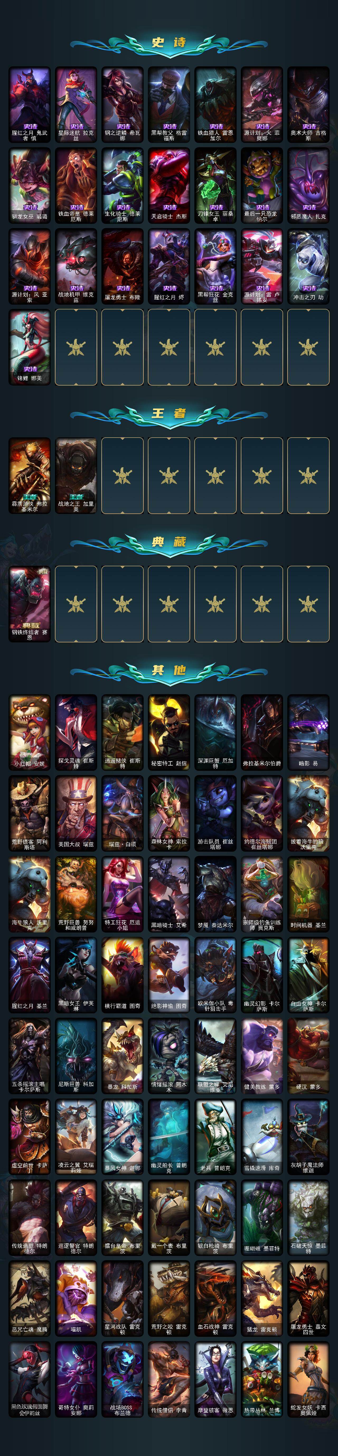 172英雄/205皮肤/1终极/2神话/23限定/1臻彩/12