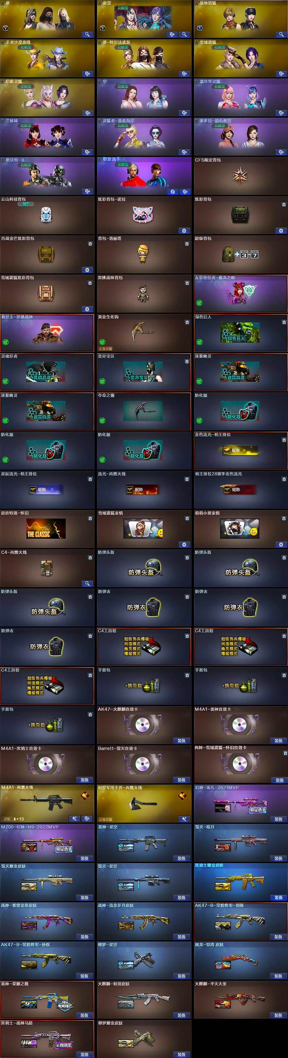【音效卡】:AK47-火麒麟音效卡,M4A1-雷神音效卡,M4A1-黑骑士音效卡,Barrett-毁灭音效卡,死神-雪域霜狐-怀旧音效卡