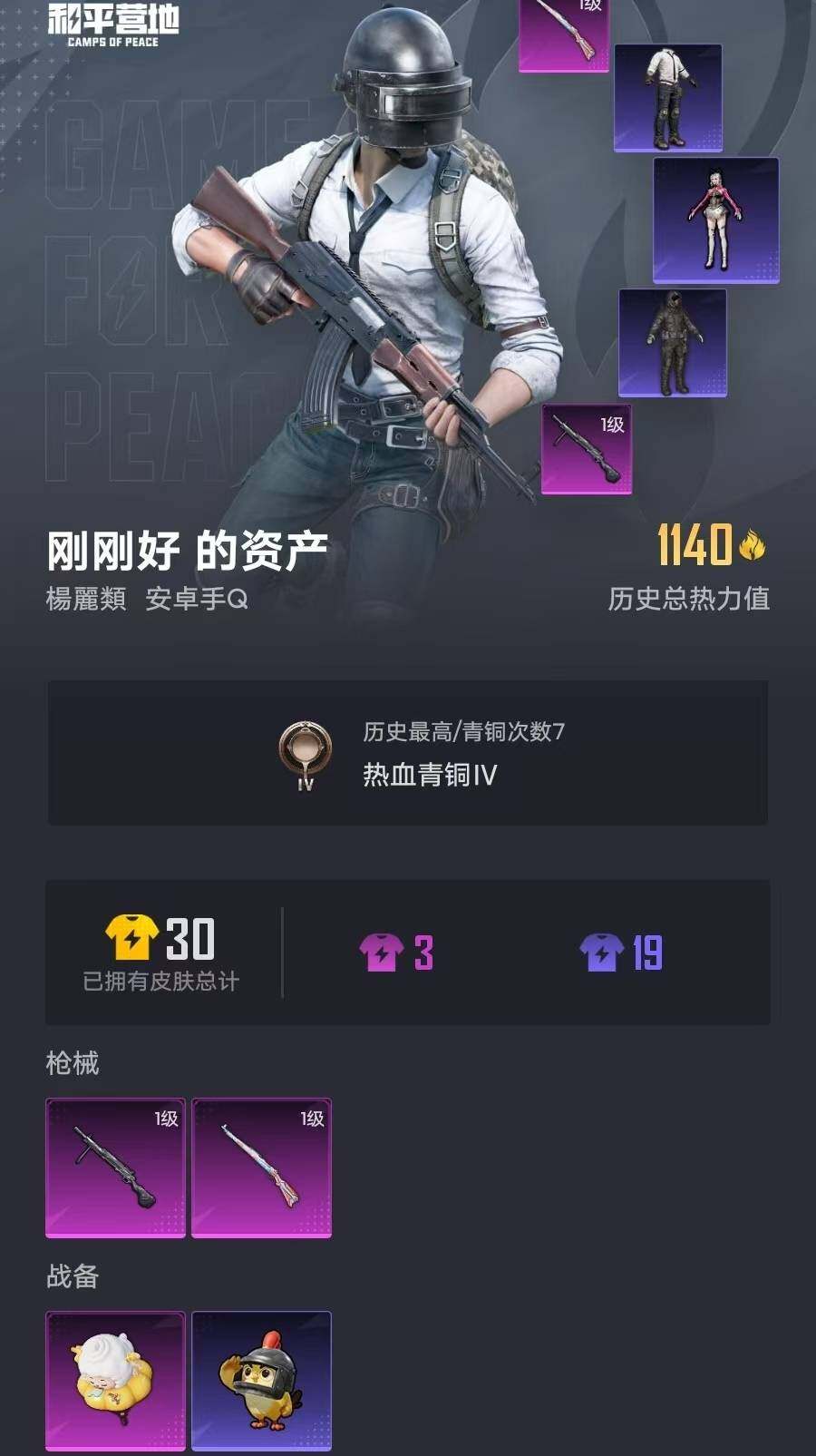 4套装/枪械2/装备10/战备12/热力值1158/一级Kar98K-巳巳如意