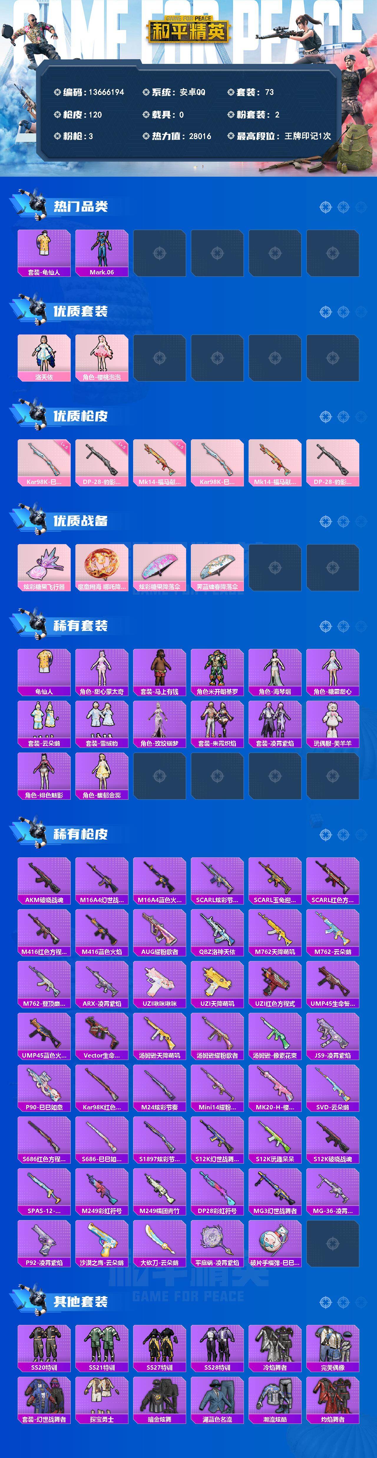 73套装/枪械3/装备122/战备72/王牌印记1/热力值28016/五级Ka