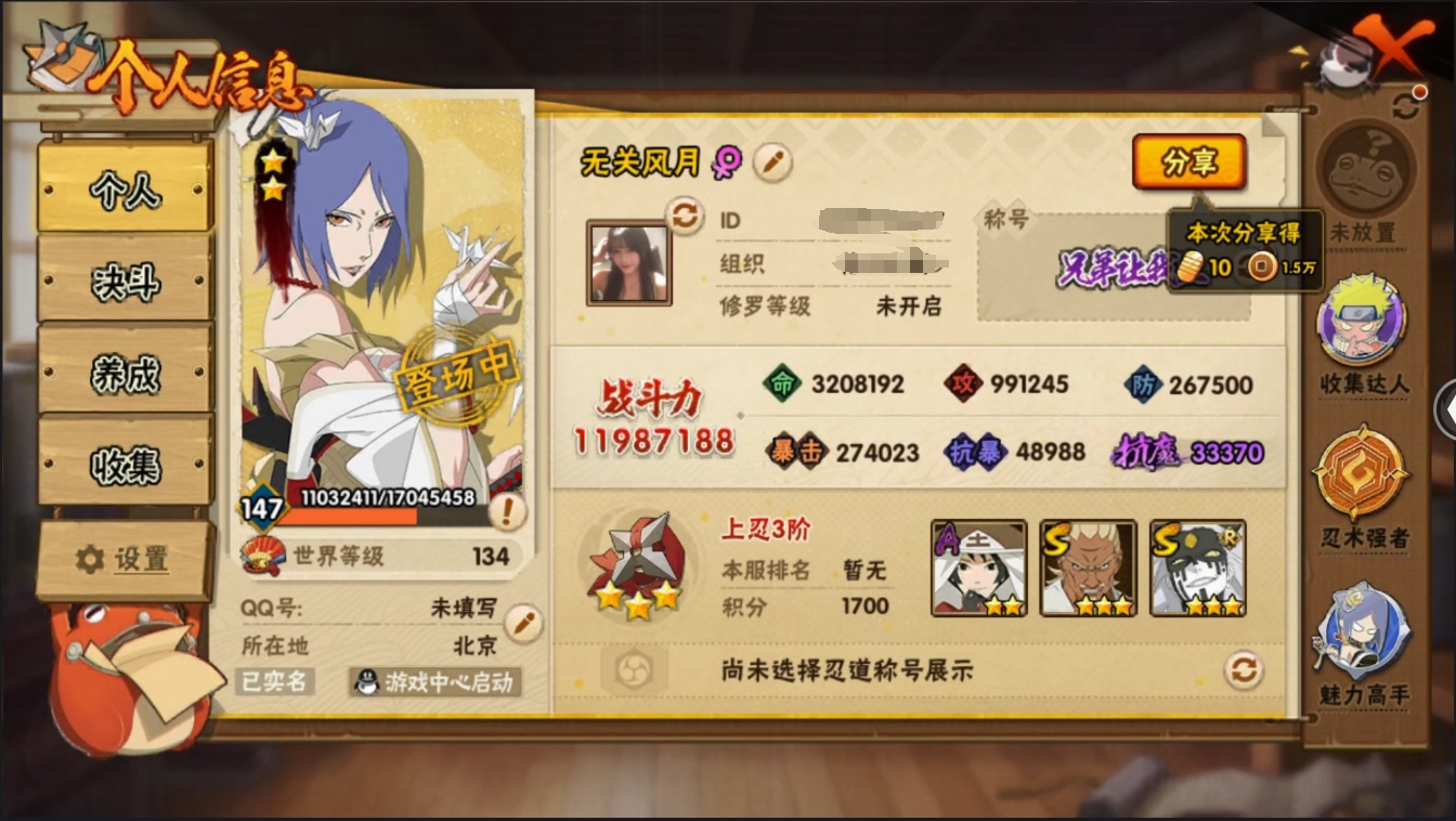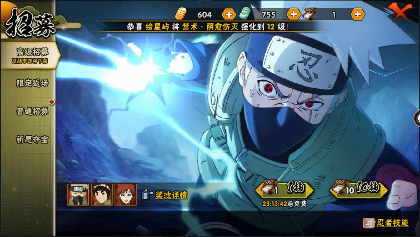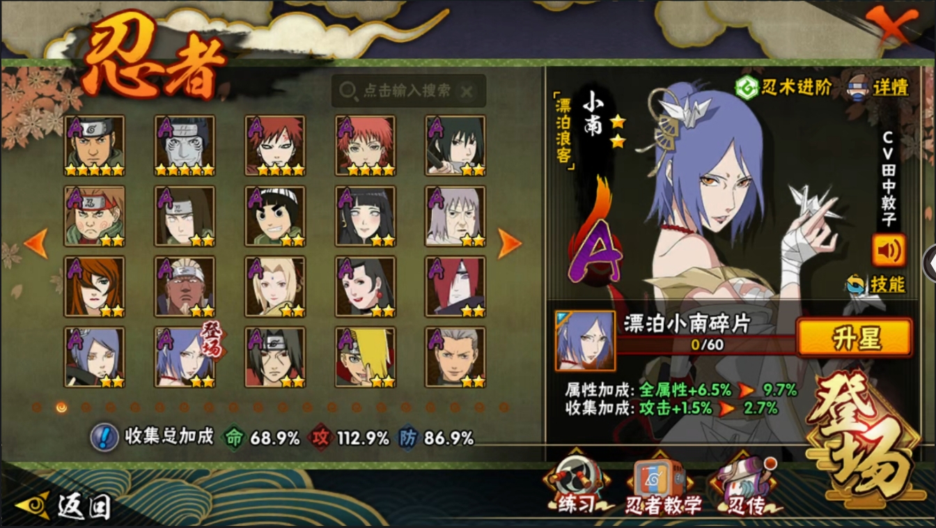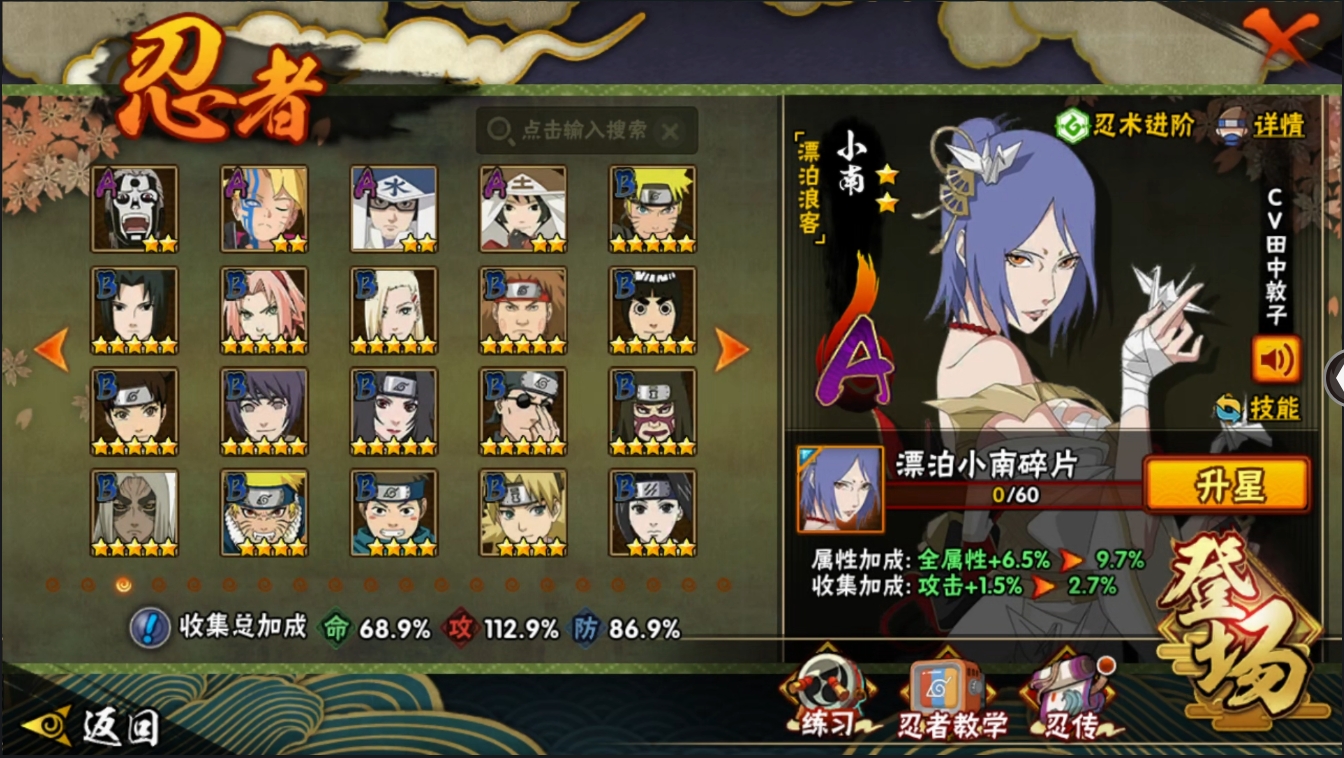 【编号96932可秒换绑】店长推荐特价处理精品号19S级忍者数-26A级忍者数【S级忍者】:千手扉间「秽土转生」(3星),宇智波斑「秽土转生·解」(3星),大野木「忍界大战」(3星),春野樱「忍界大战」(3星),艾「忍界大战」(3星),旗木卡卡西「须佐能乎」(3星),千手柱间「木叶创立」(3星),自来也「仙人模式」(3星),自来也「舞之豪杰」(3星),大蛇丸(3星),纲手(3星),猿飞日斩(4星),波风水门(3星),神秘面具男「红夜之刃」(3星),漩涡鸣人「九喇嘛连结」(3星),佩恩「天道」(3