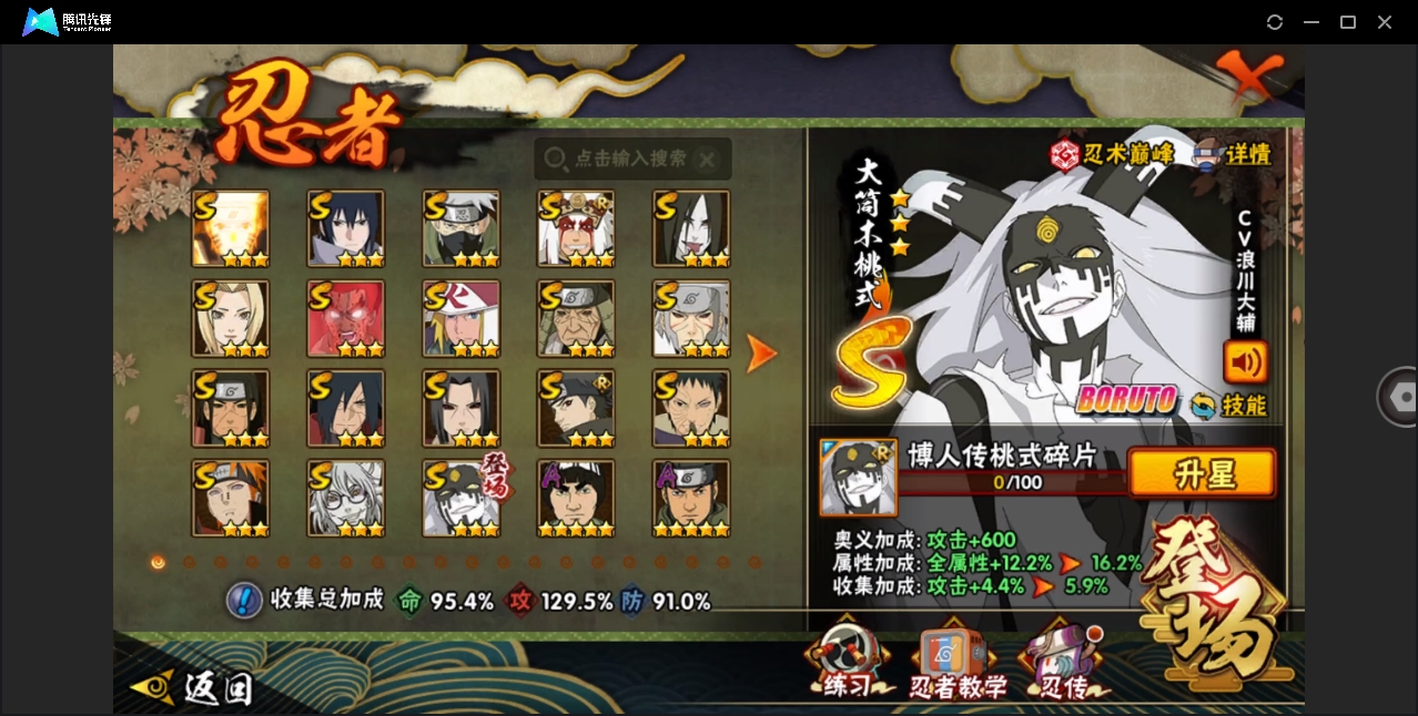 【编号36908可秒换绑】【店长推荐精品号】18S级忍者数-36A级忍者数【S级忍者】:猿飞日斩「秽土转生」(3星),千手扉间「秽土转生」(3星),千手柱间「秽土转生」(3星),宇智波鼬「秽土转生」(3星),宇智波斑「秽土转生·解」(3星),宇智波带土「忍界大战」(3星),宇智波止水「须佐能乎」(3星),旗木卡卡西「须佐能乎」(3星),自来也「舞之豪杰」(3星),大蛇丸(3星),纲手(3星),波风水门(3星),药师兜「仙人模式」(3星),漩涡鸣人「九喇嘛连结」(3星),迈特凯「死门」(3星),佩