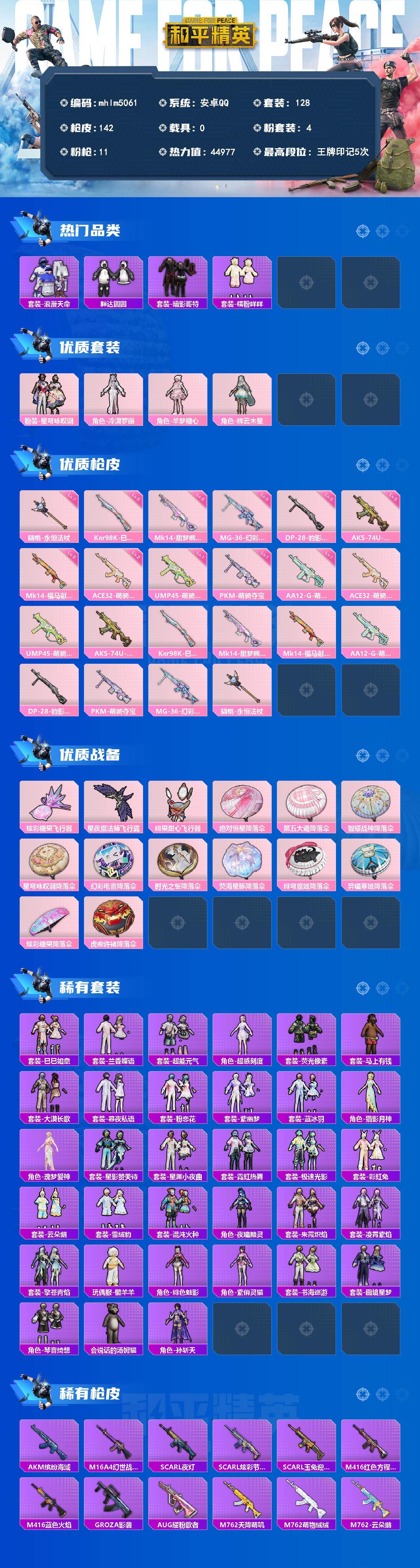安卓 手Q-4粉装-11特效枪-0载具-3粉色飞行器-44977热力值-5王牌印记-128套装-142枪皮
