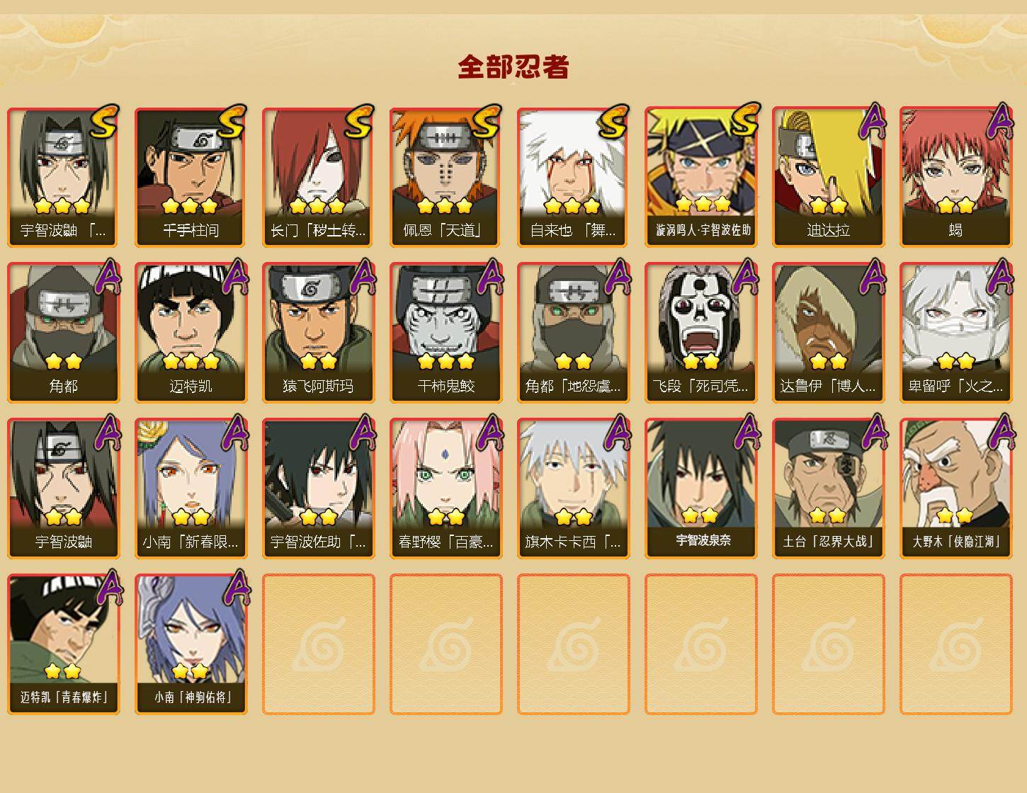 【HYF2641】V6/战力497W/S忍6/A忍20/2星大野木「侠隐江湖」/五代目雷影-达鲁伊/死司凭血-飞段/宇智波鼬/2星小南「神驹佑将」/蝎/天道-佩恩/3星漩涡鸣人·宇智波佐助/地怨虞-角都/3星干柿鬼鲛/2星土台「忍界大战」/火之意志继承者-卑留呼/舞之豪杰-自来也/百豪-春野樱/千手柱间/新春限定-小南/猿飞阿斯玛/2星宇智波泉奈/迪达拉/幻之真容-旗木卡卡西/3星迈特凯/2星迈特凯「青春爆炸」/须佐能乎-宇智波佐助/秽土转生-长门/须佐能乎-宇智波鼬/角都