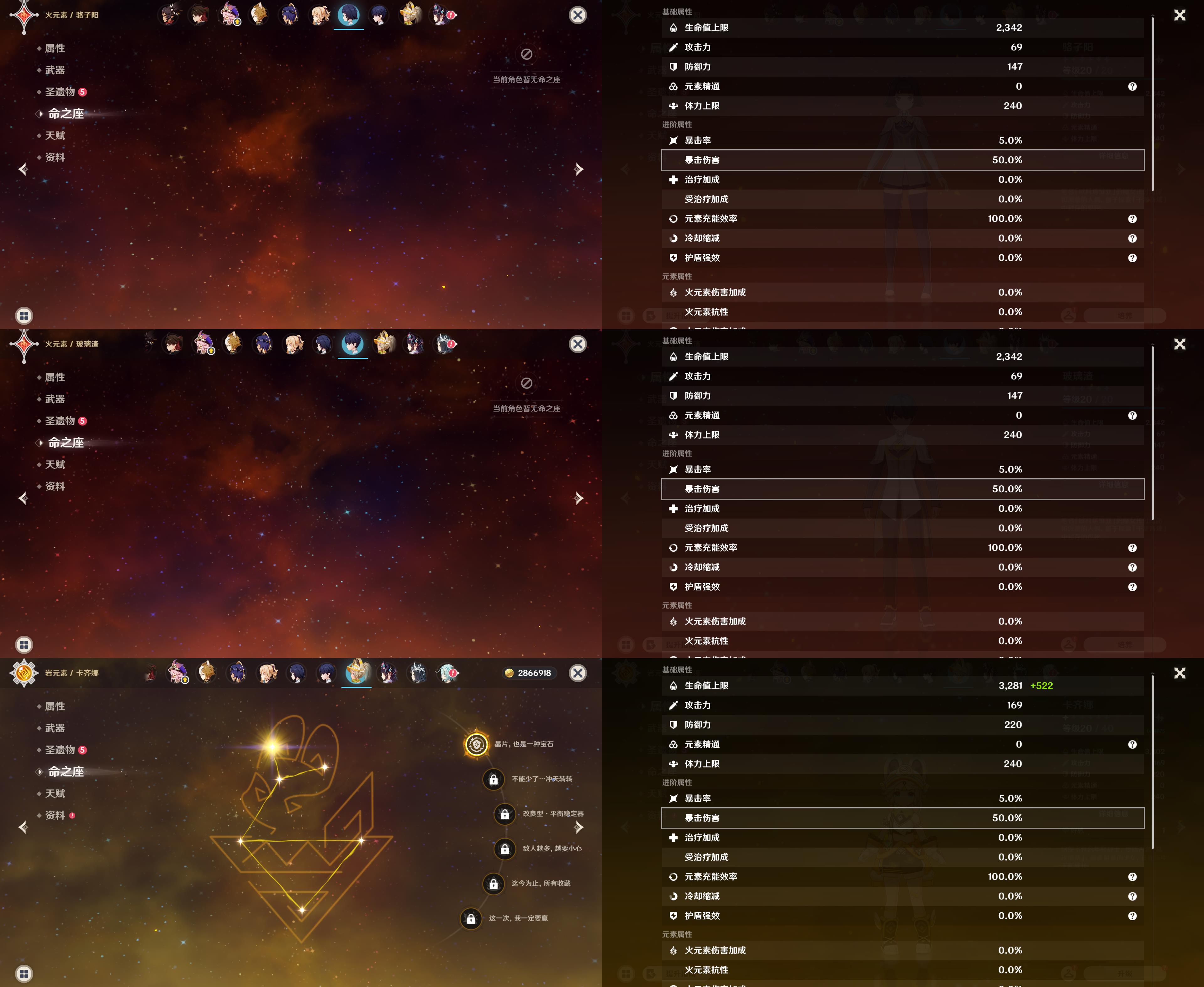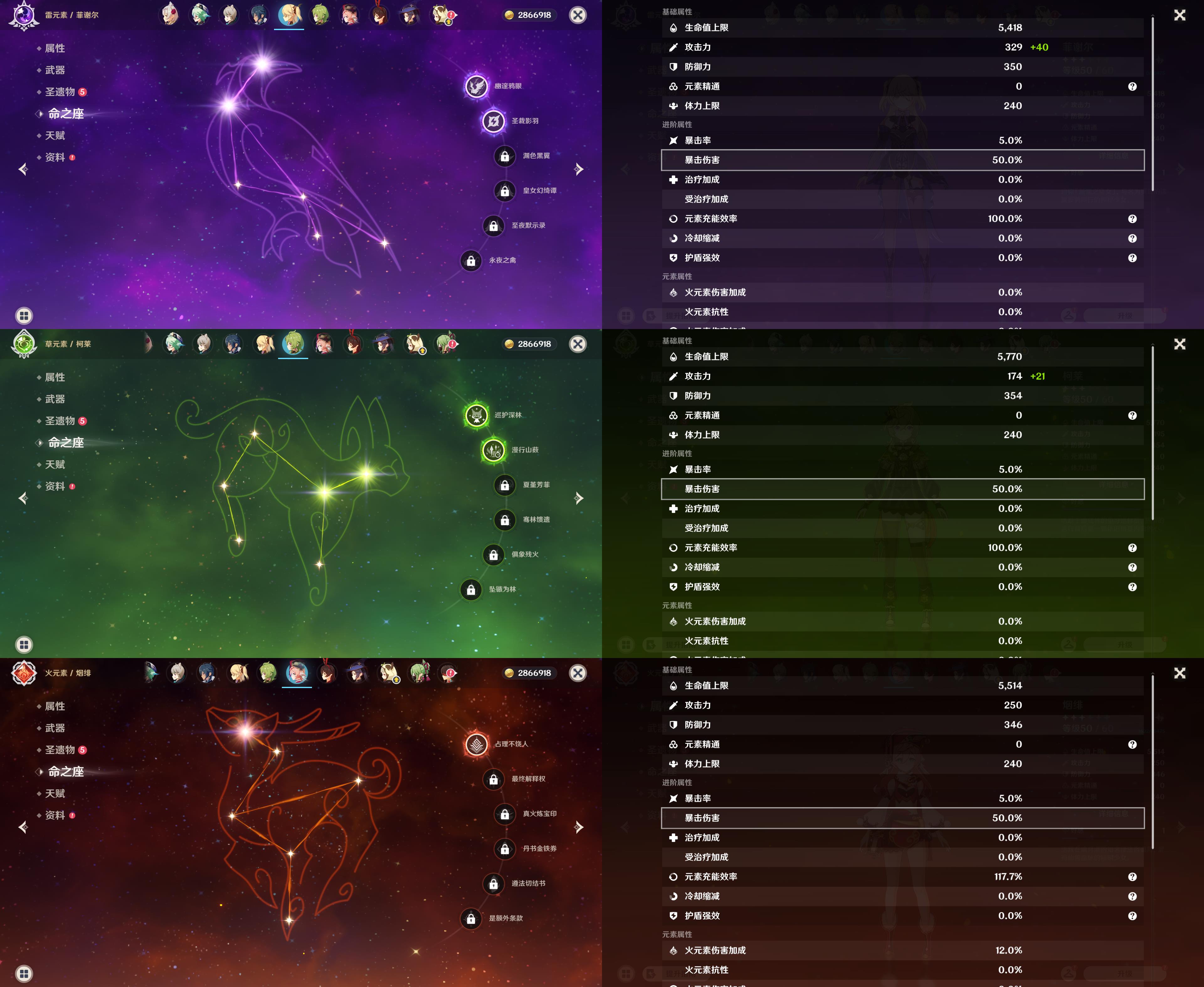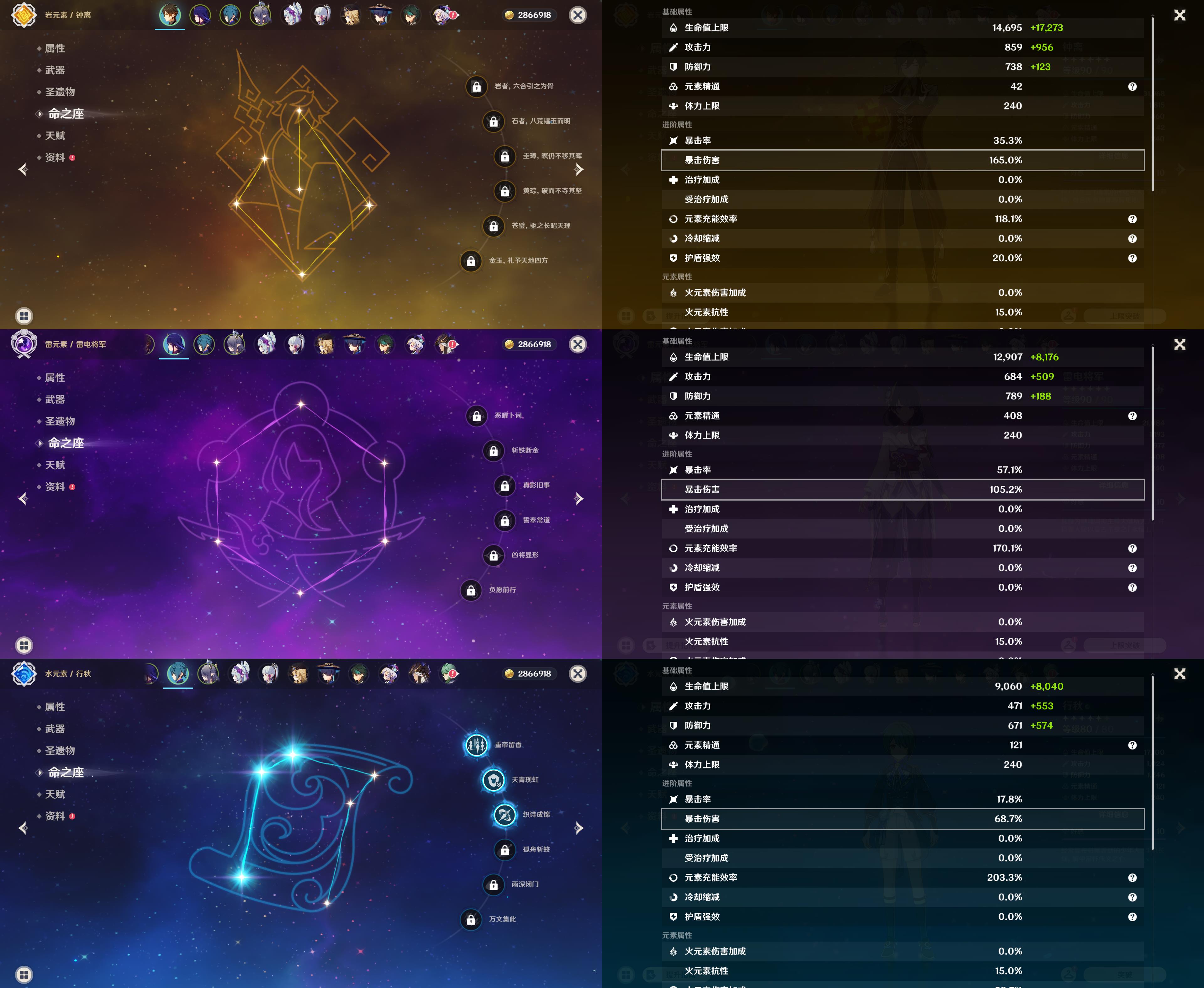 56级/26黄/女主/19个五星角色/4个五星武器/钟离/雷电将军