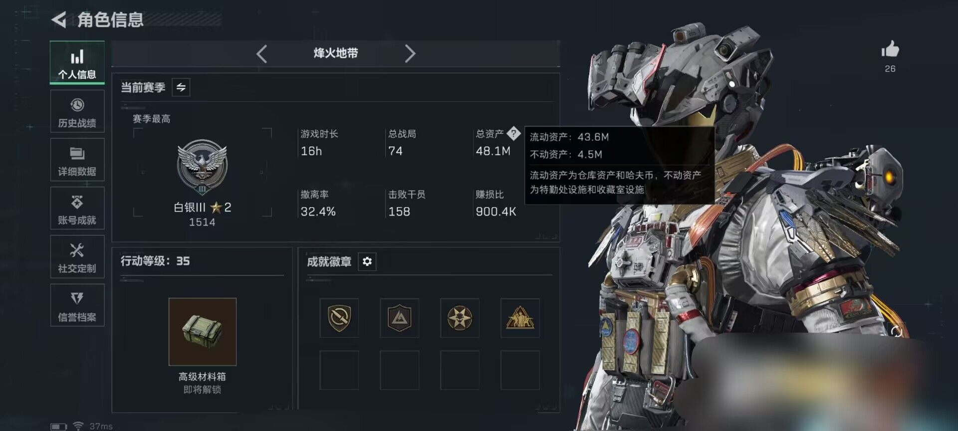 总资产(M):48M/哈夫币(K):3411K/哈夫币(K